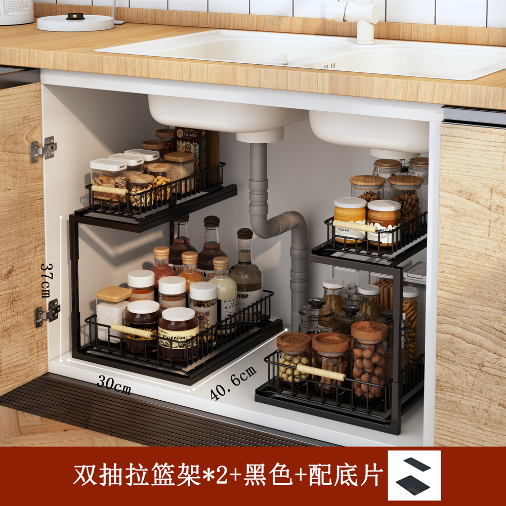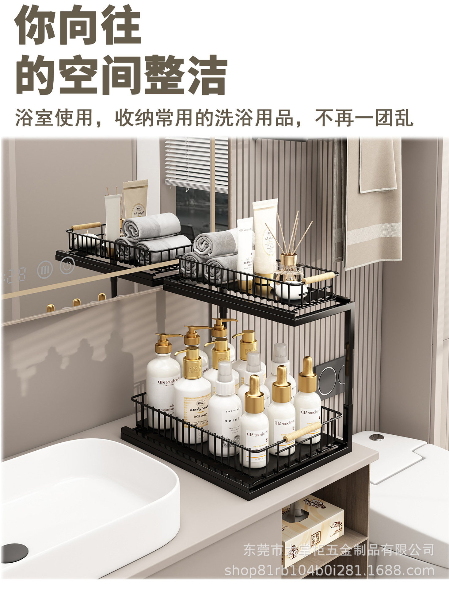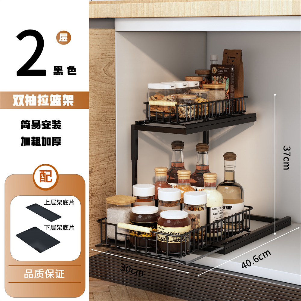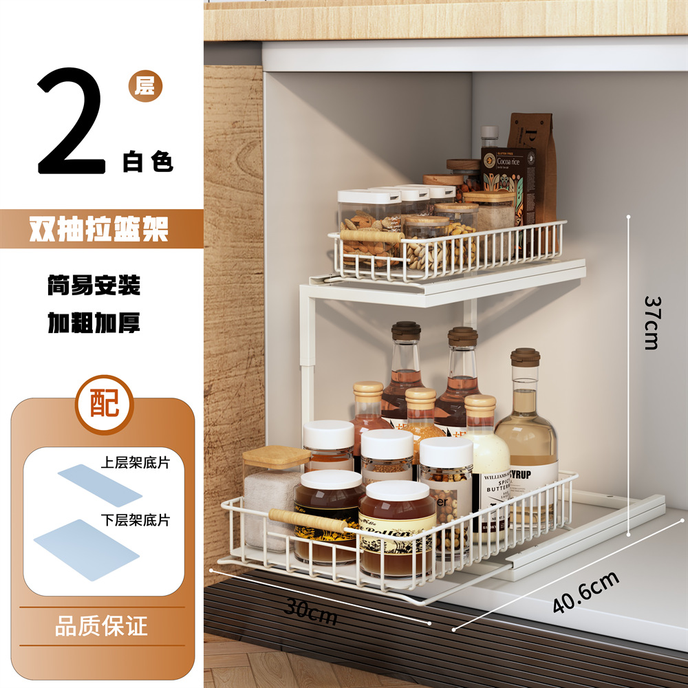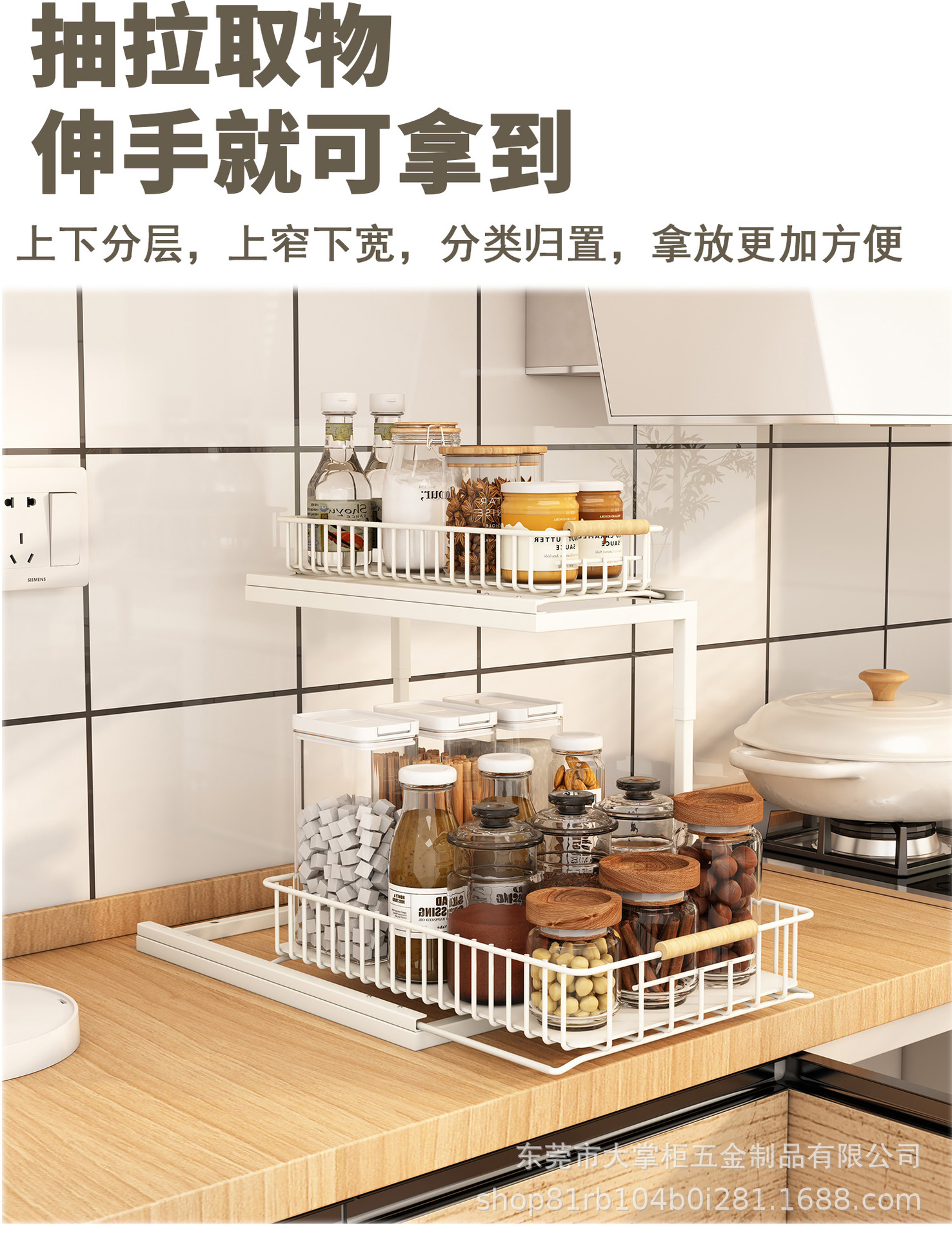 厨房用品下水槽置物架多功能调料收纳篮抽拉架浴室双层整理抽屉