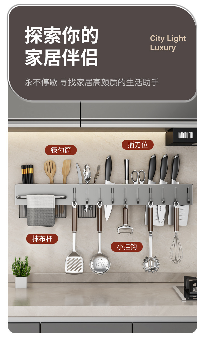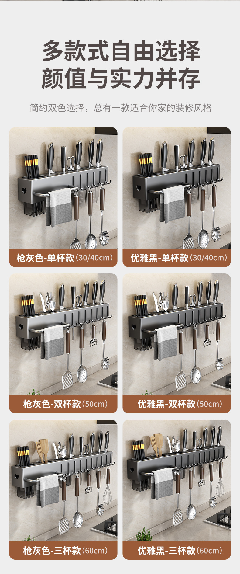 免打孔厨房置物架多功能菜刀架筷子刀架一体刀具收纳架家用壁挂式