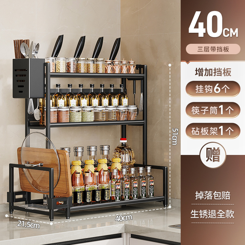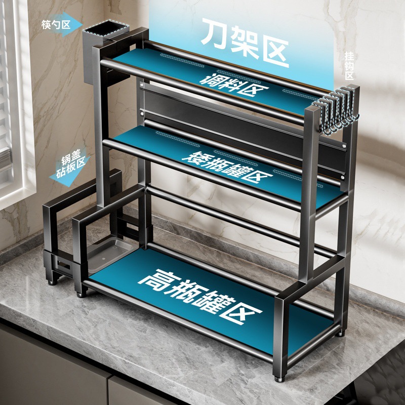 厨房置物架落地多功能调料刀架调味用品家用不锈钢多层收纳架子