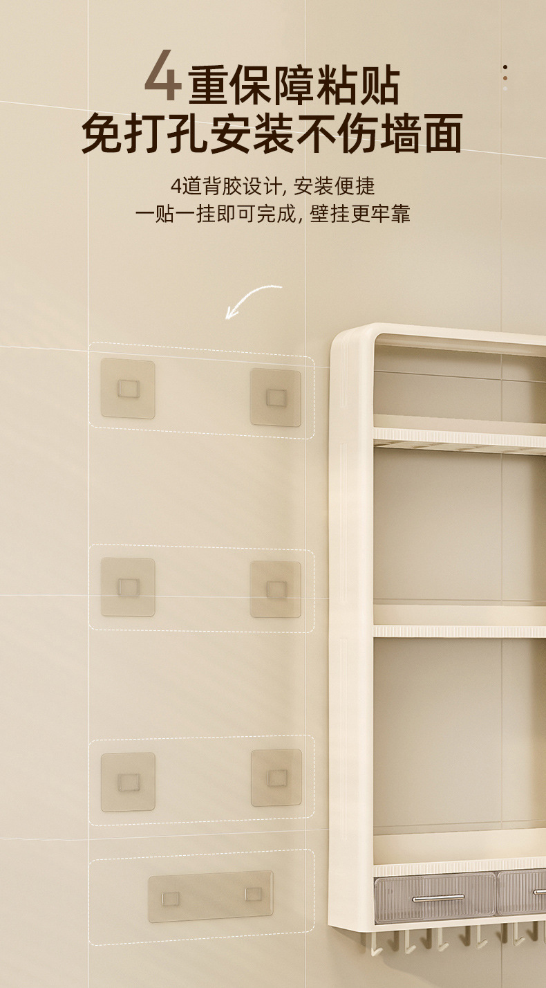 厨房置物架壁挂式免打孔收纳架子放杂物挂墙上多功能调味品整理架
