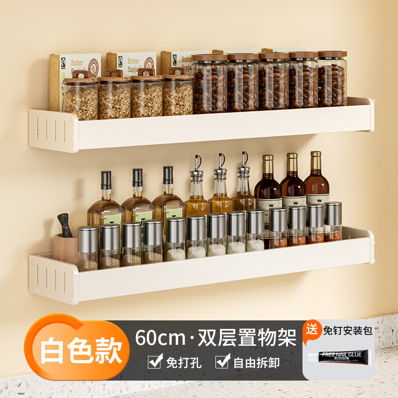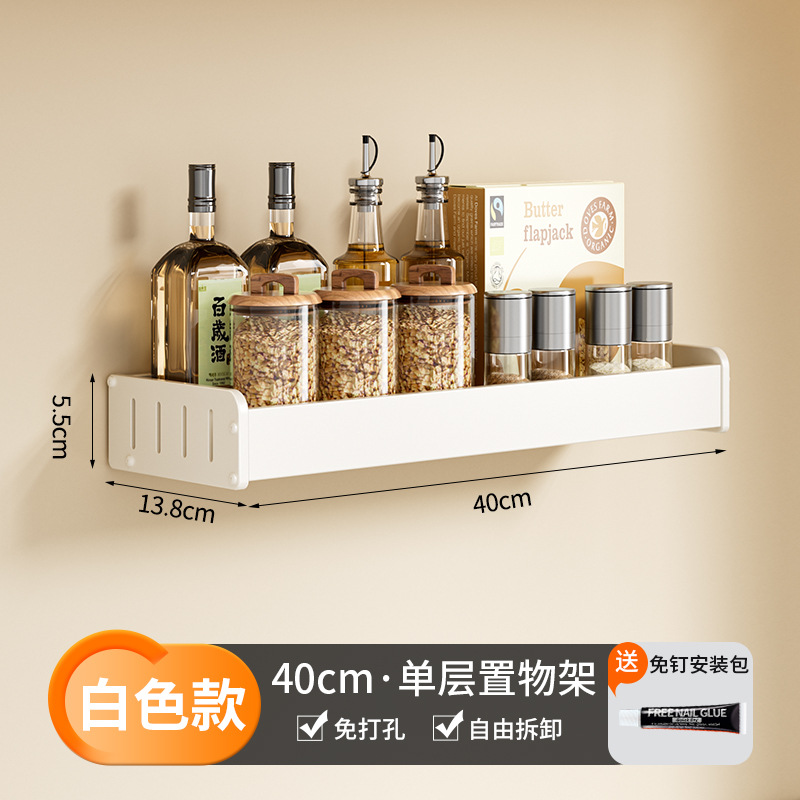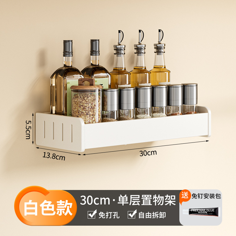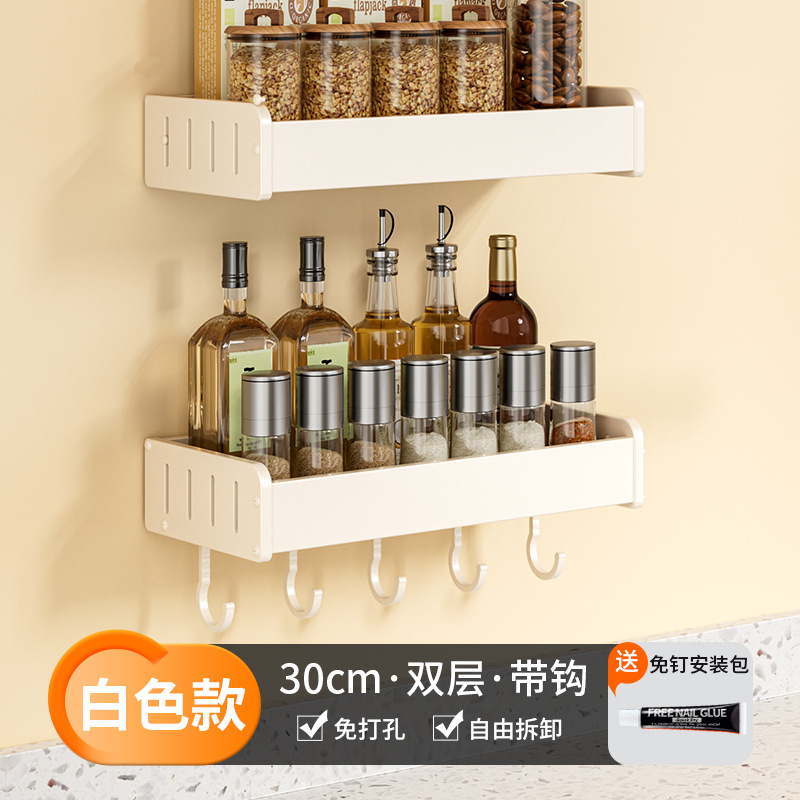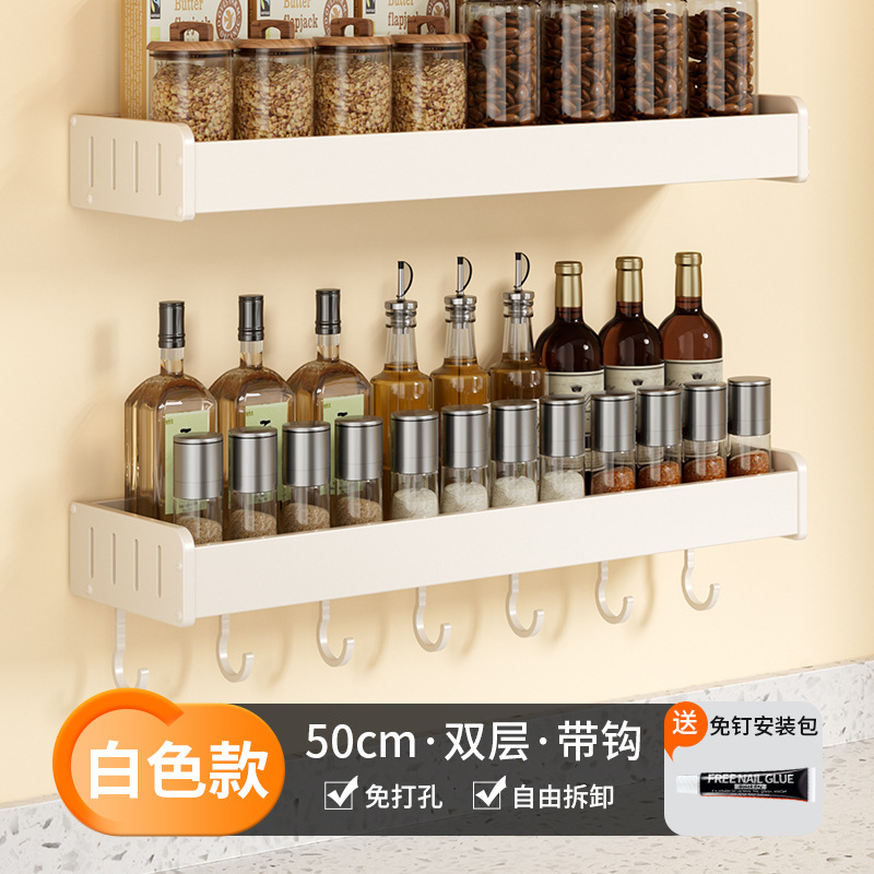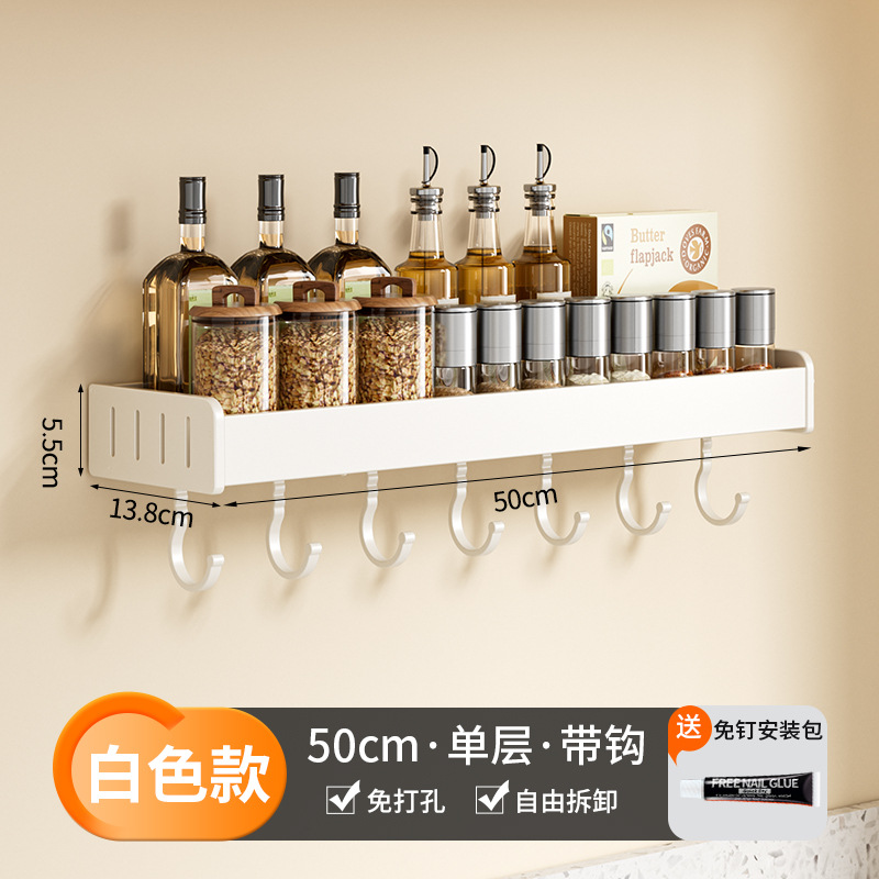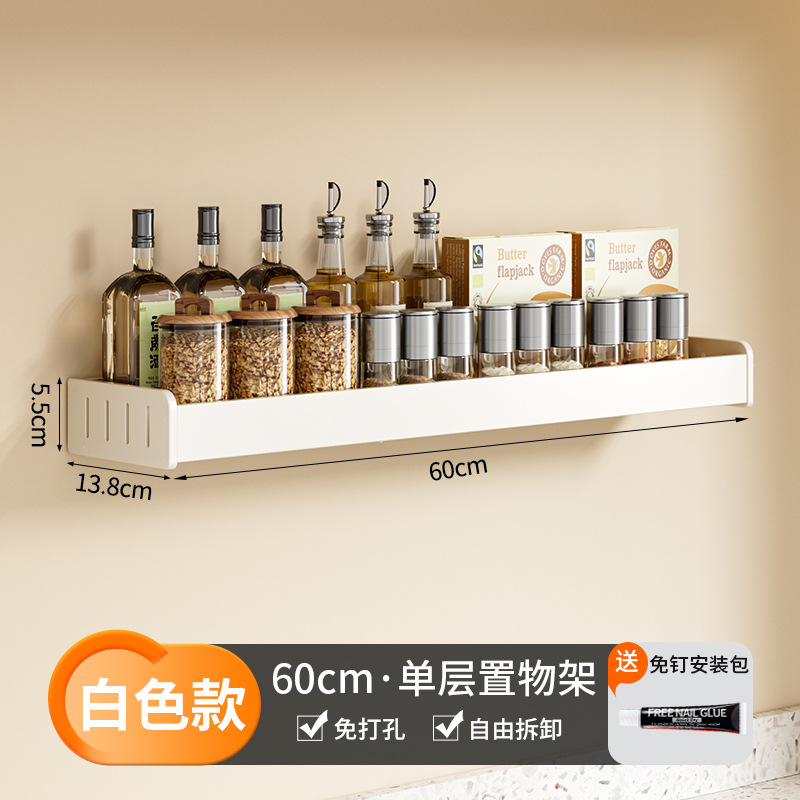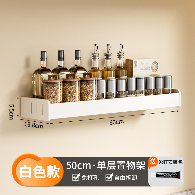 科乐白色厨房置物架免打孔壁挂式调味料用品家用多功能整理收纳架
