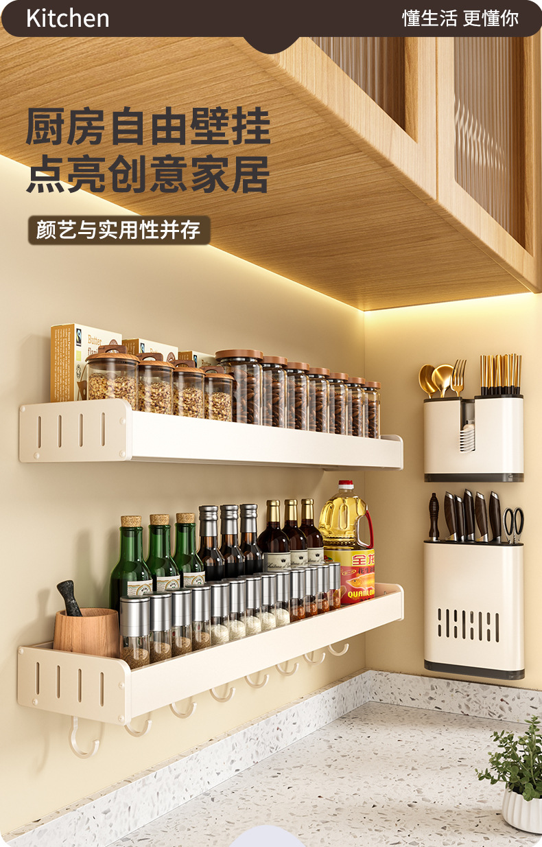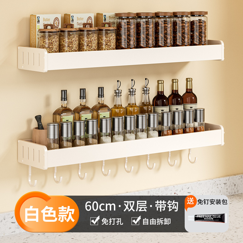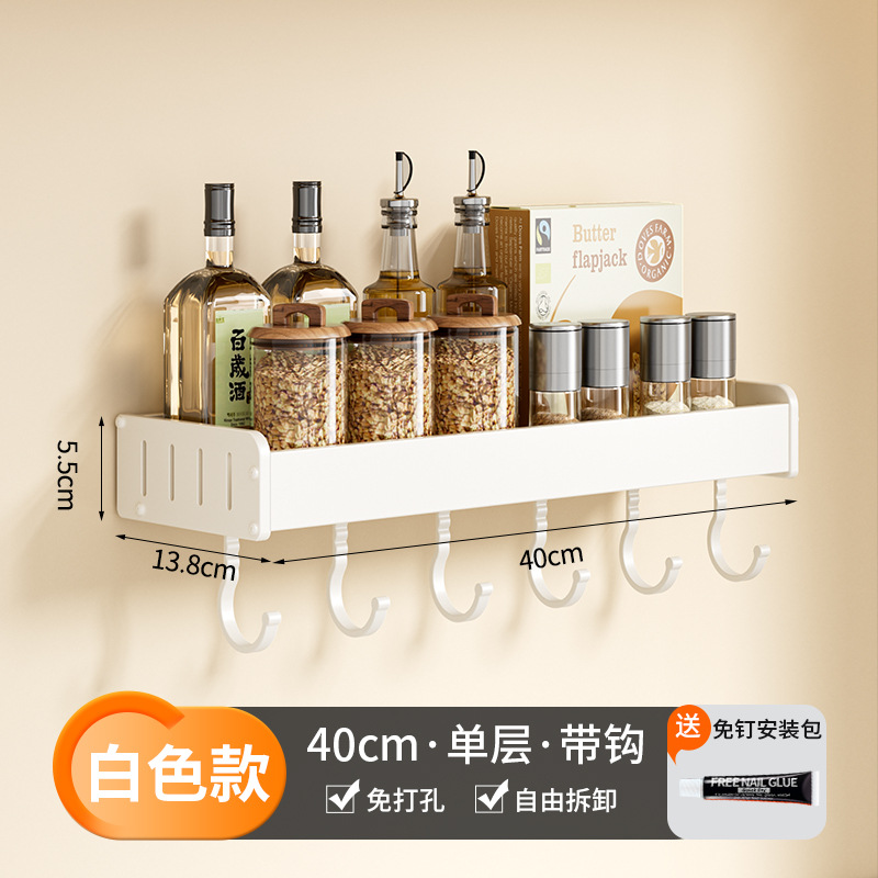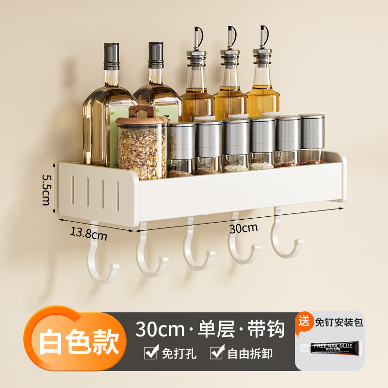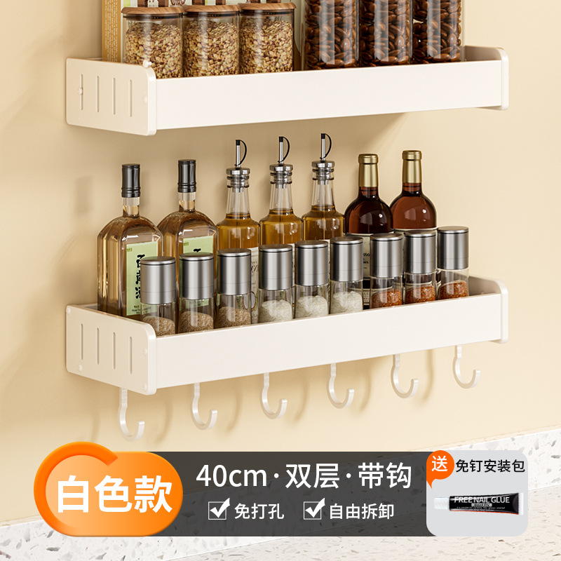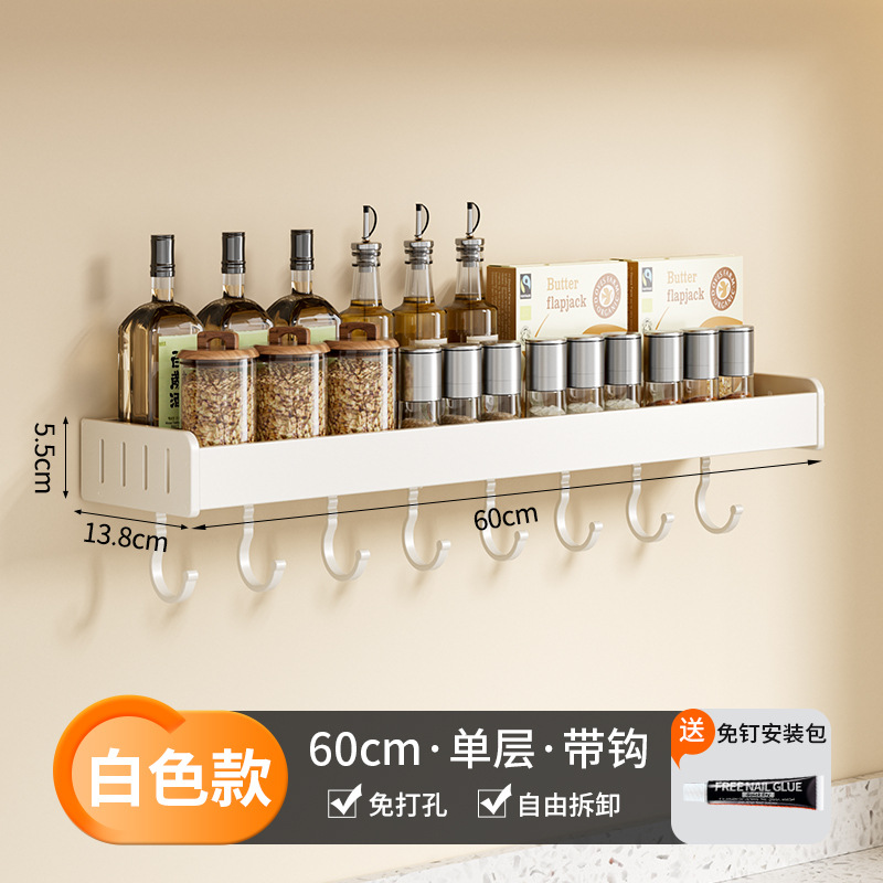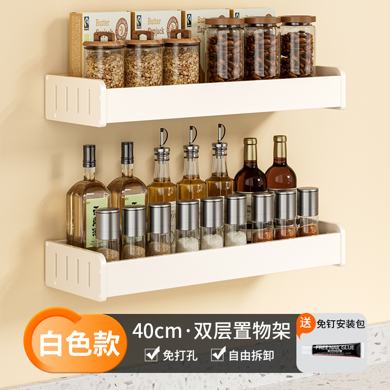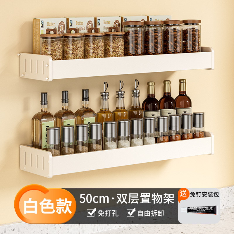 科乐白色厨房置物架免打孔壁挂式调味料用品家用多功能整理收纳架