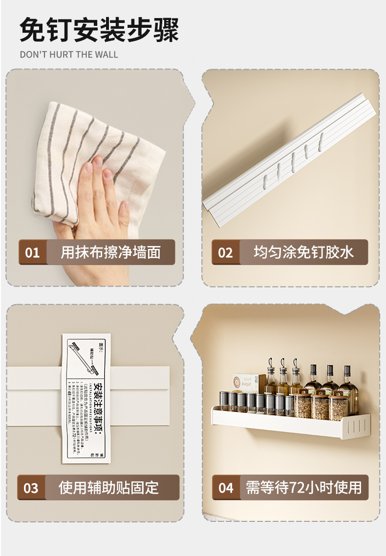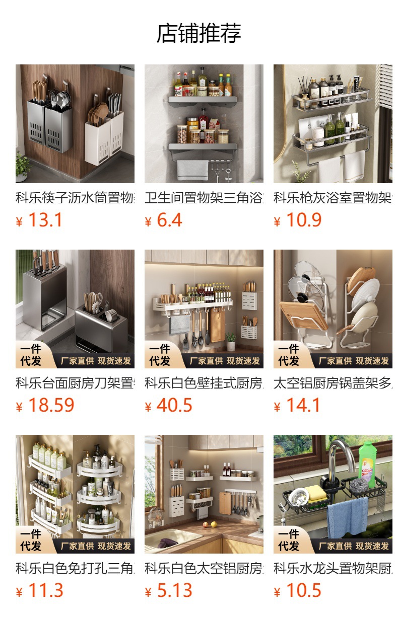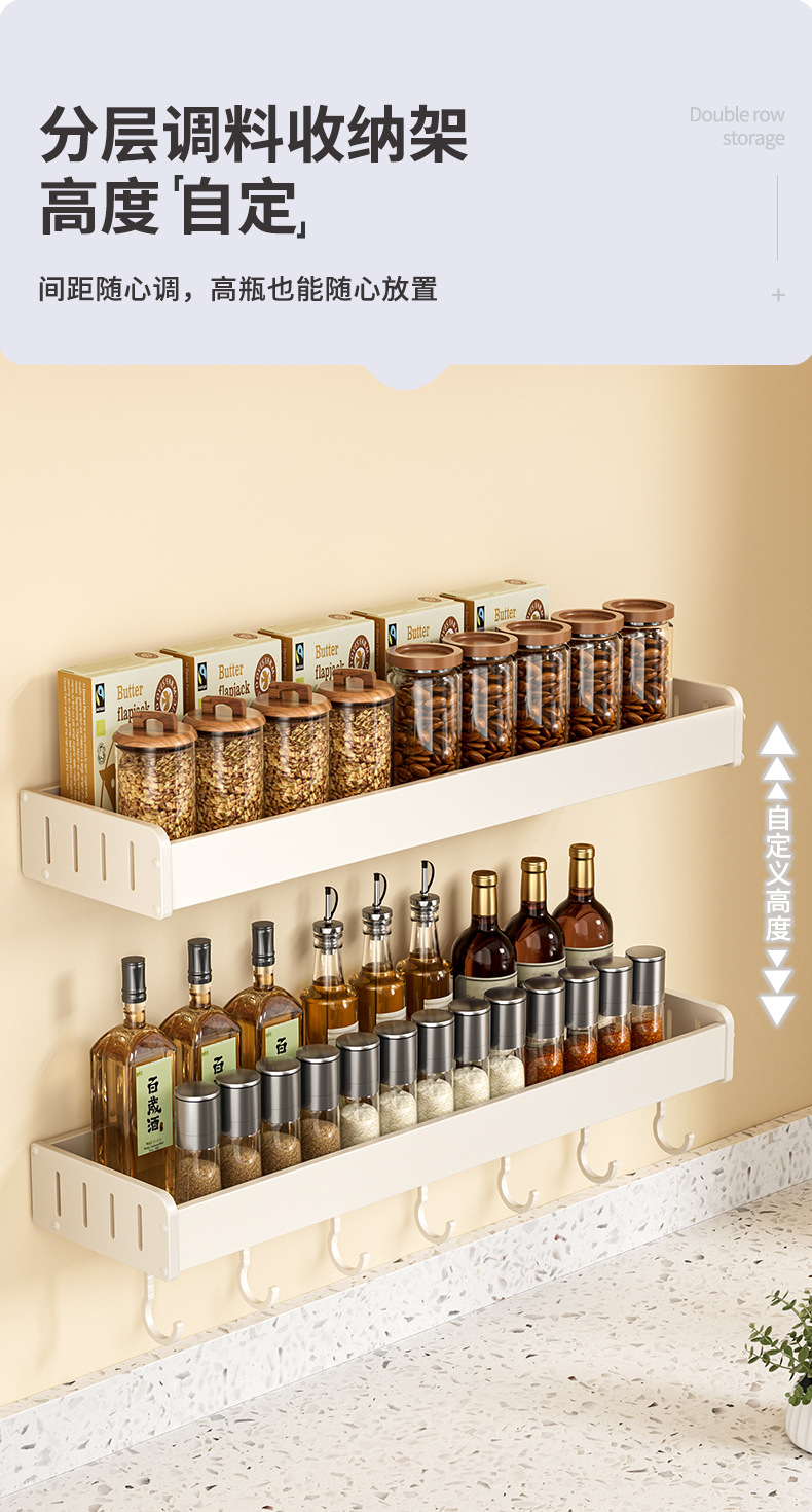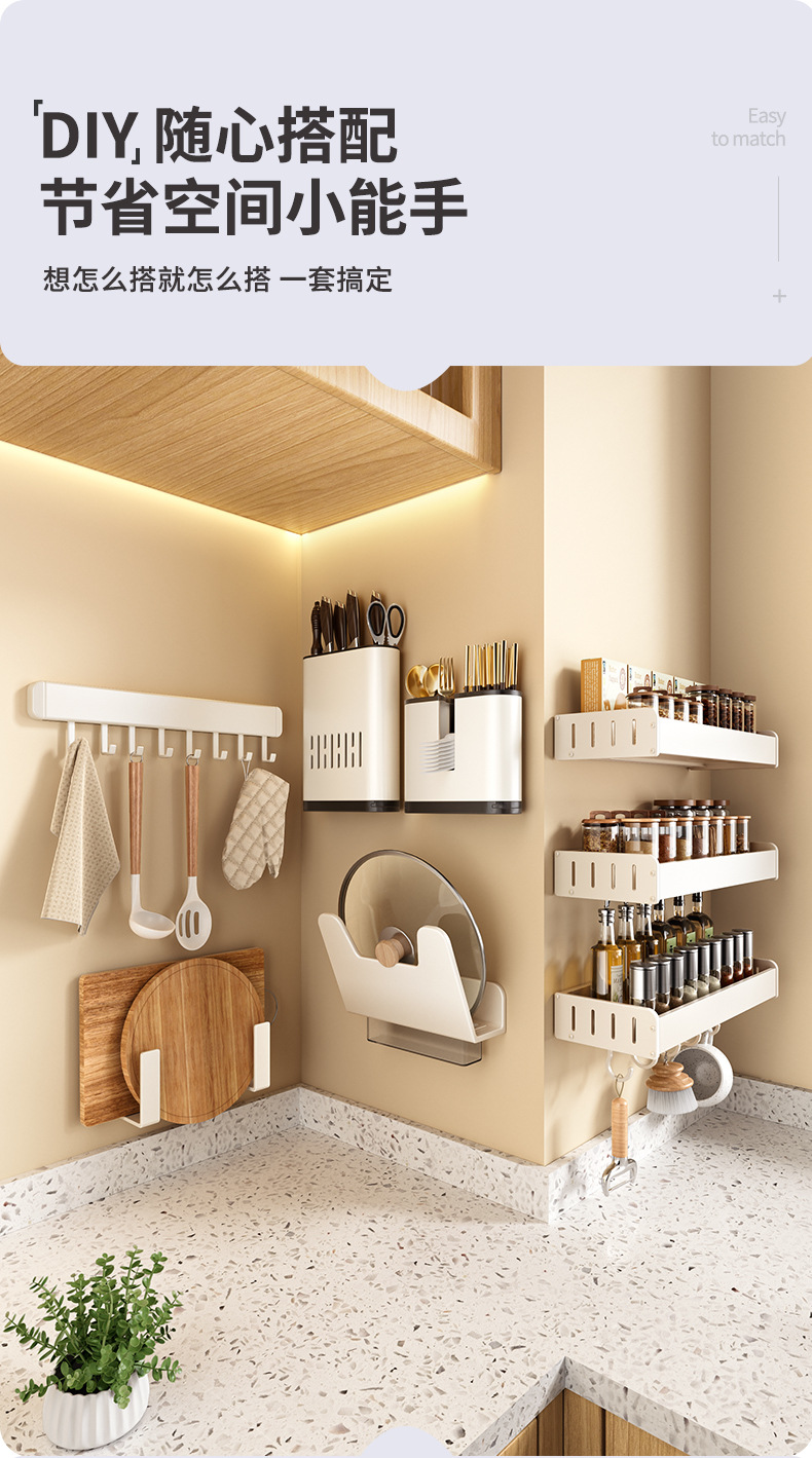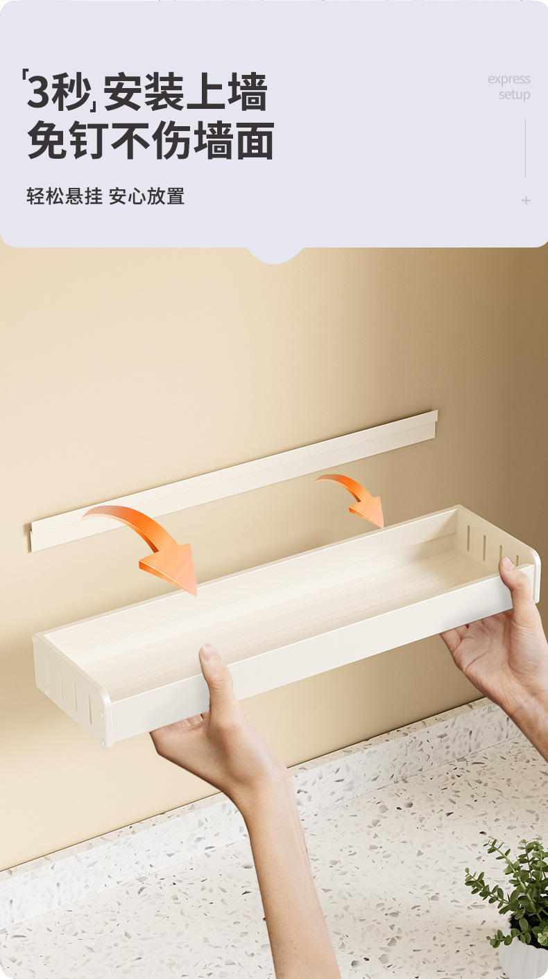 科乐白色厨房置物架免打孔壁挂式调味料用品家用多功能整理收纳架