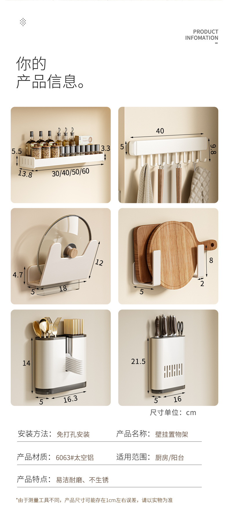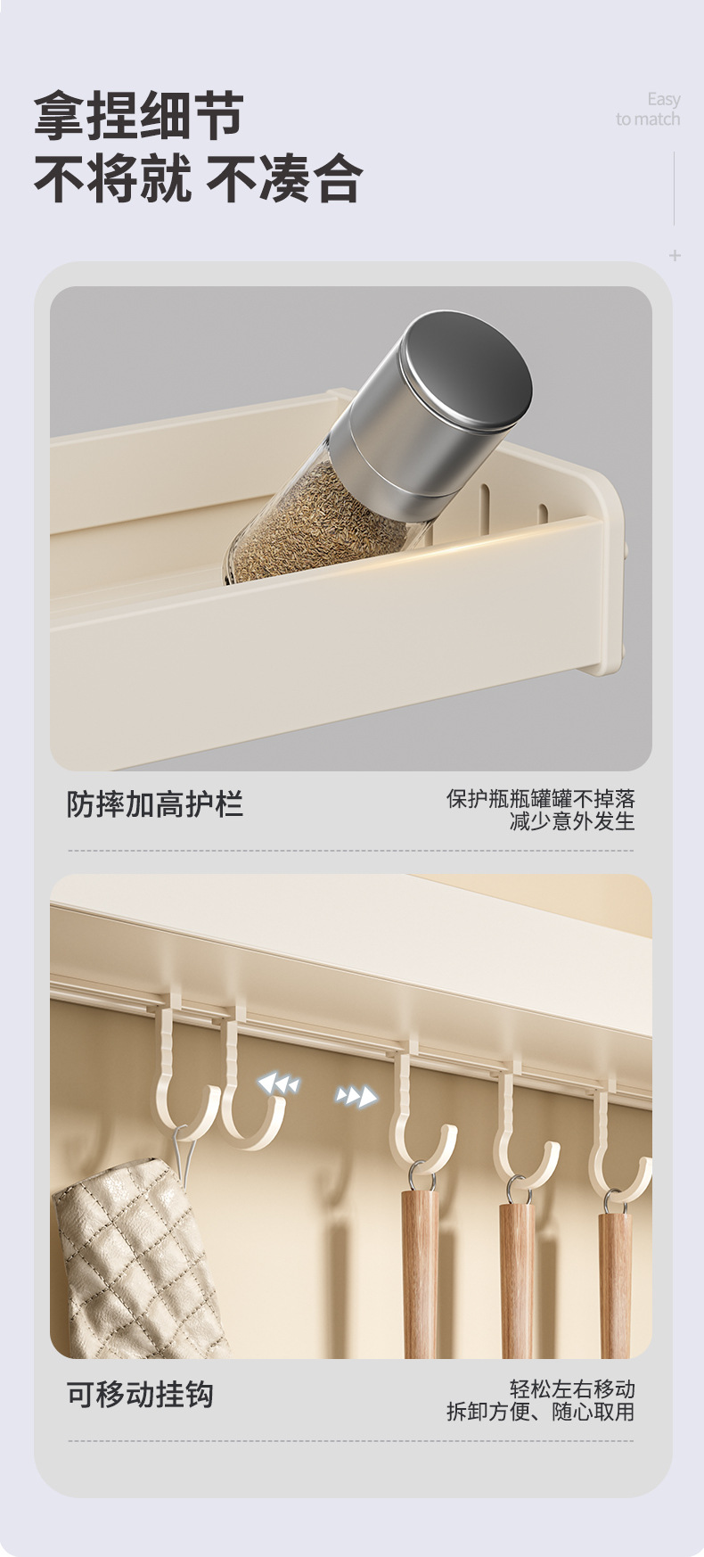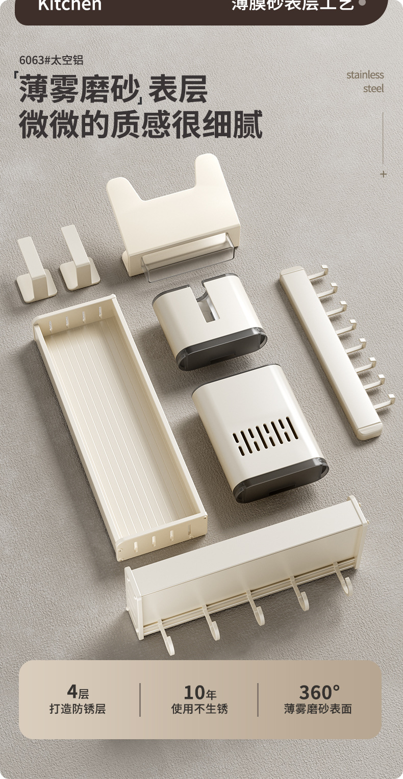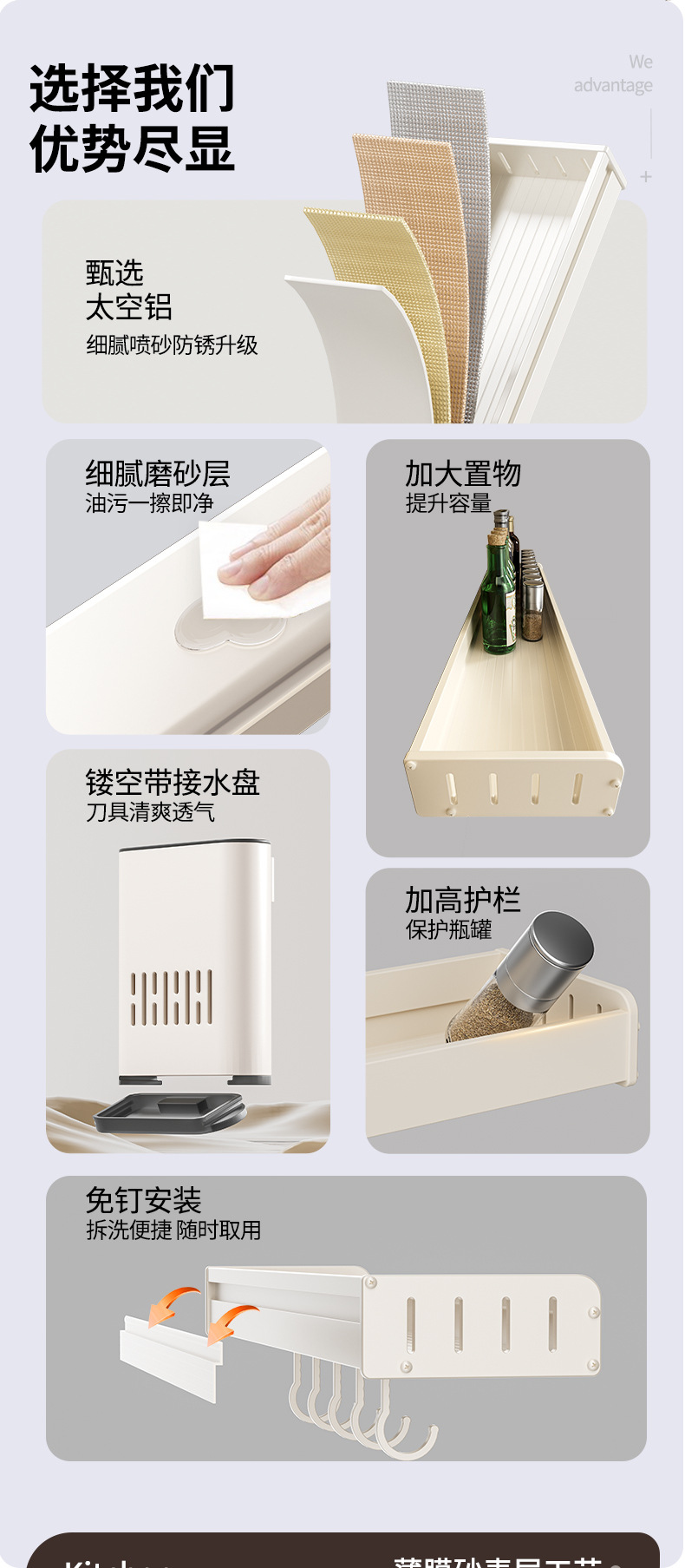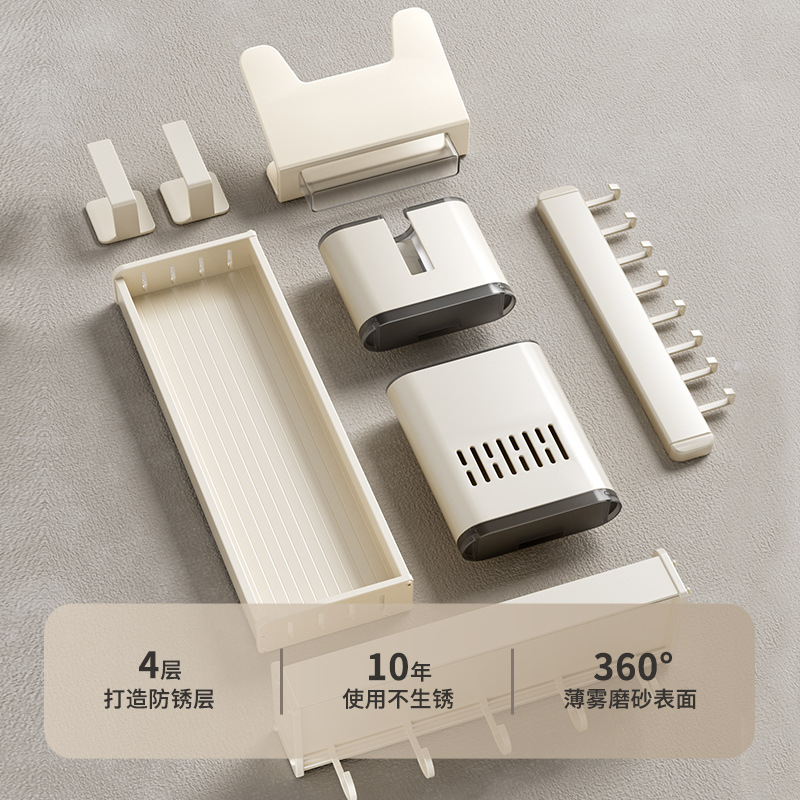 科乐白色厨房置物架免打孔壁挂式调味料用品家用多功能整理收纳架