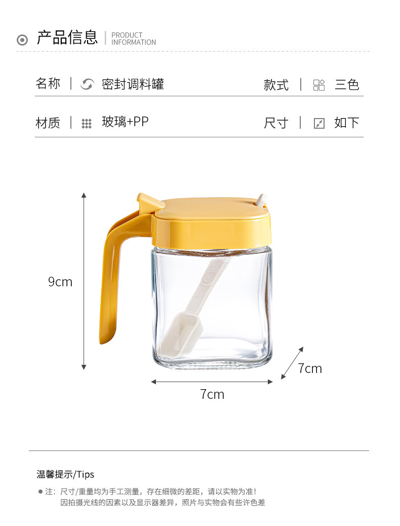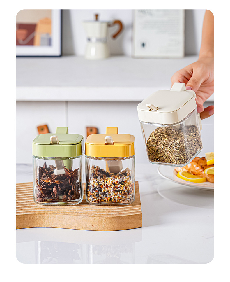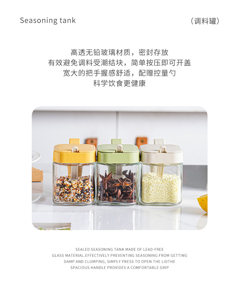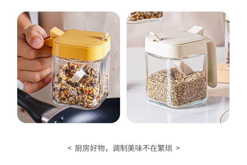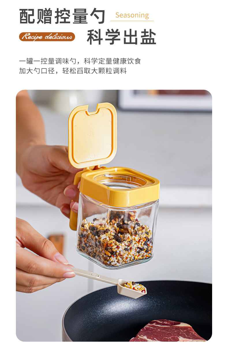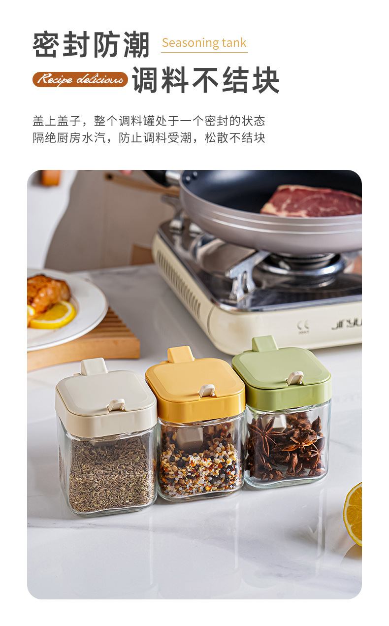 调料罐厨房带勺调味品一组三个方形翻盖盐罐子玻璃调料收纳调味盒