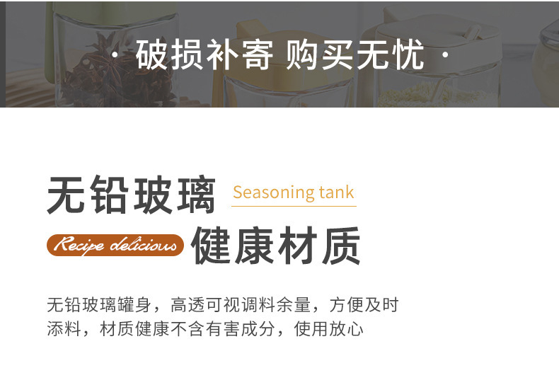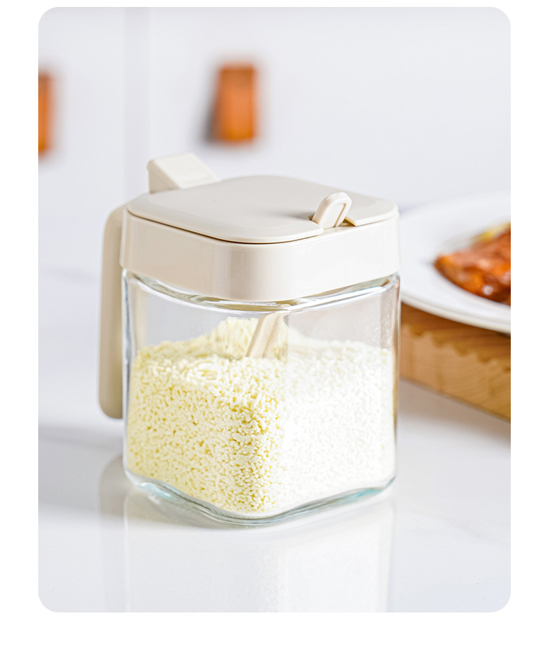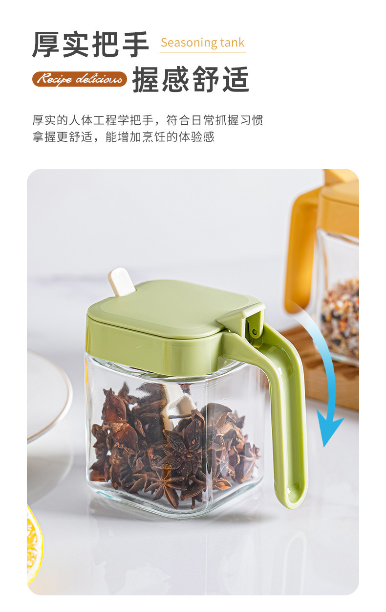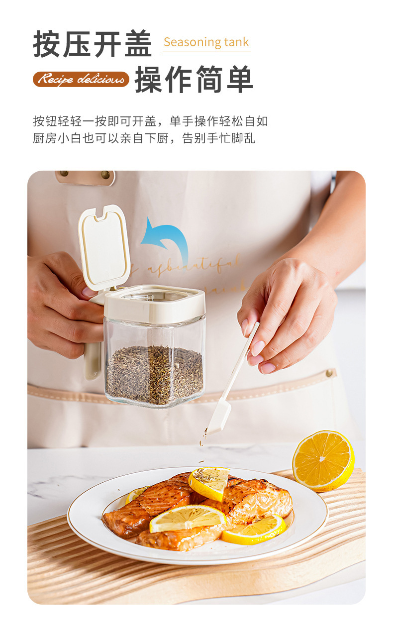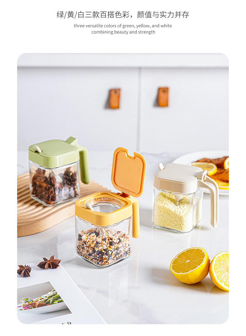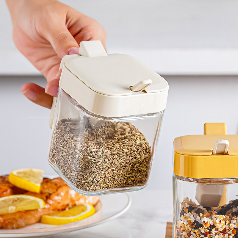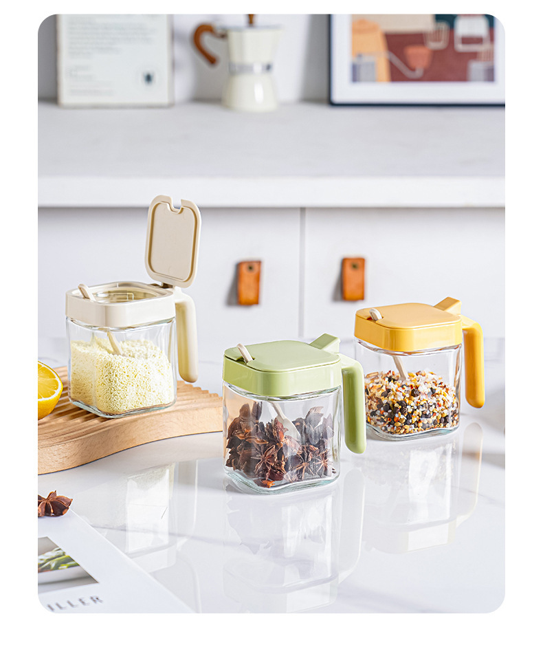 调料罐厨房带勺调味品一组三个方形翻盖盐罐子玻璃调料收纳调味盒