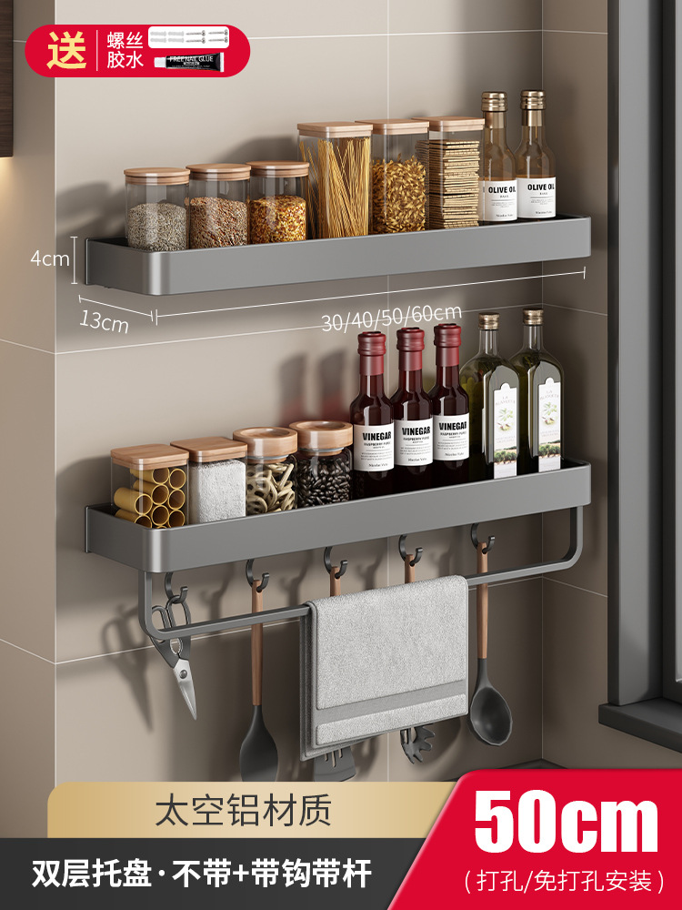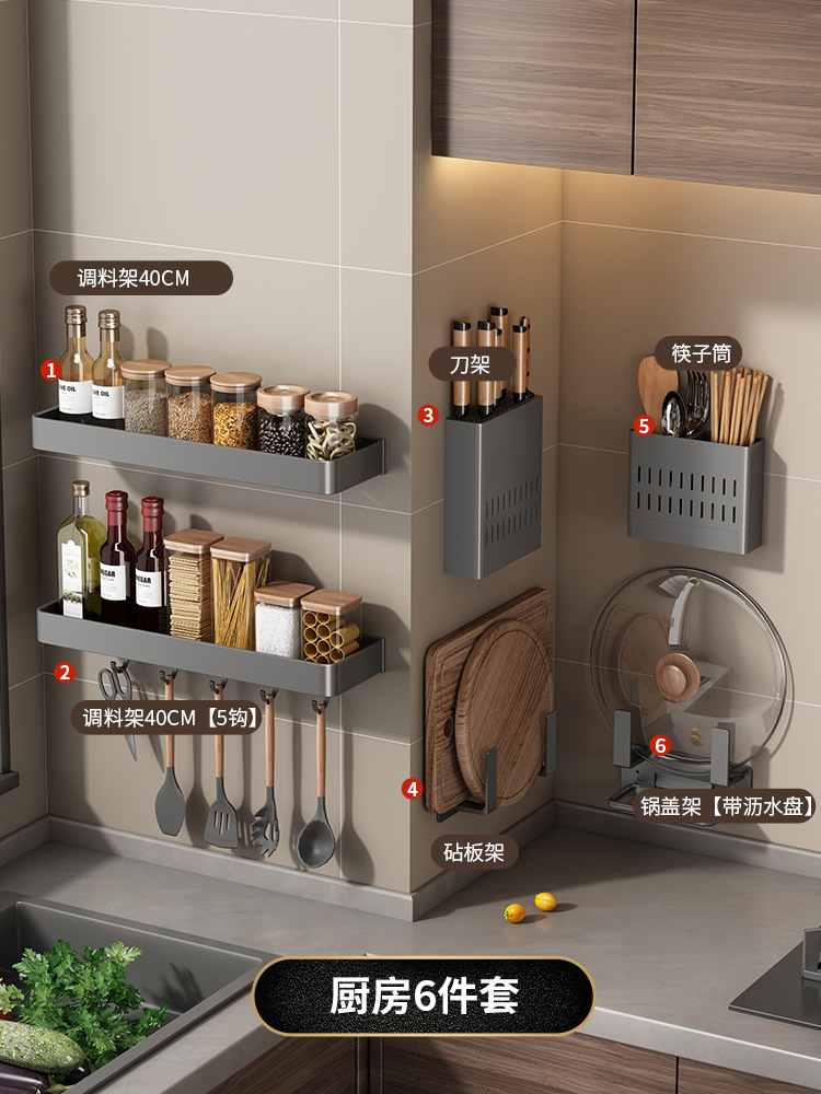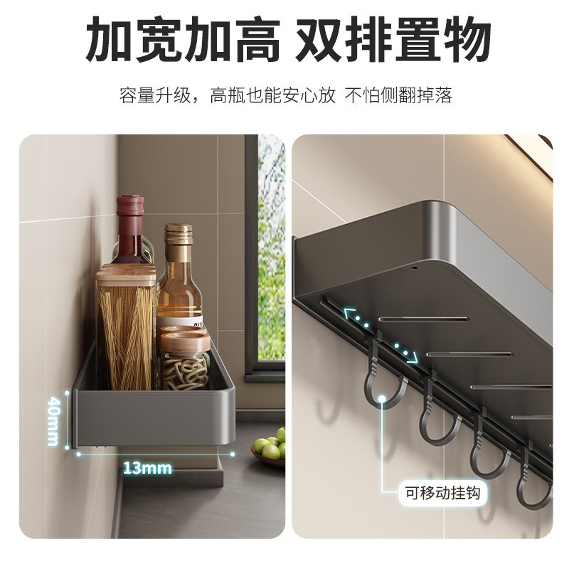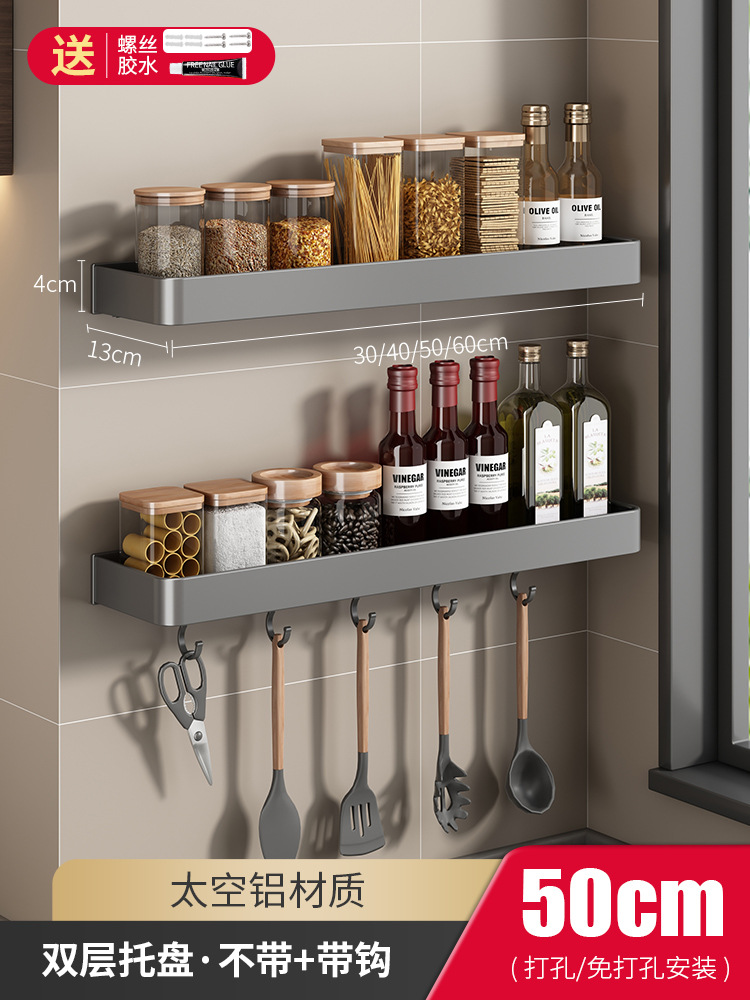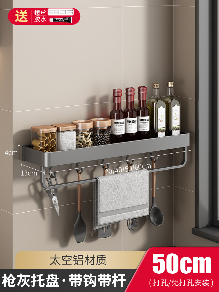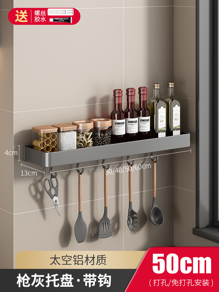 枪灰厨房置物架免打孔调味料架壁挂刀架家用用品大全多功能收纳架