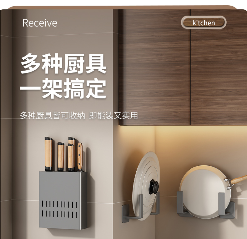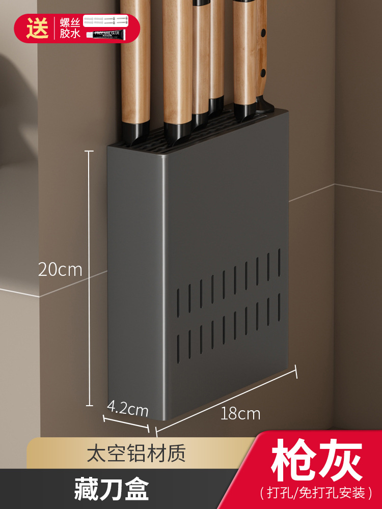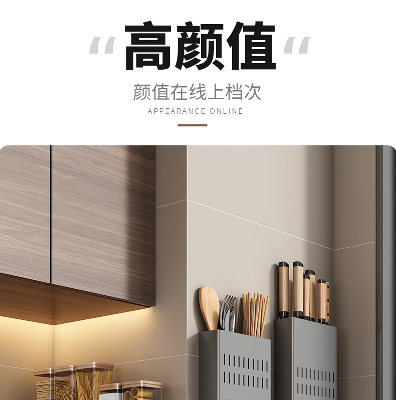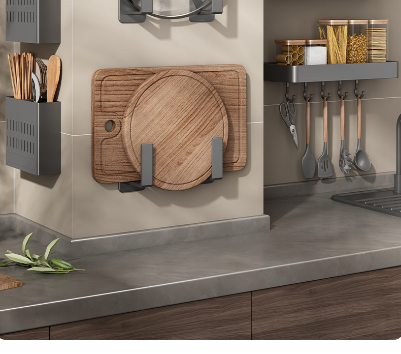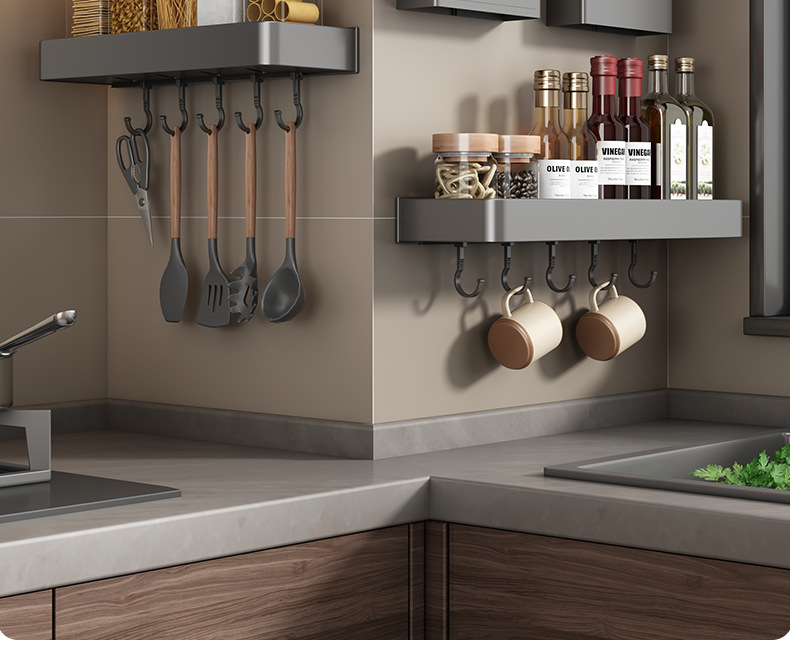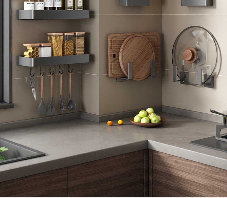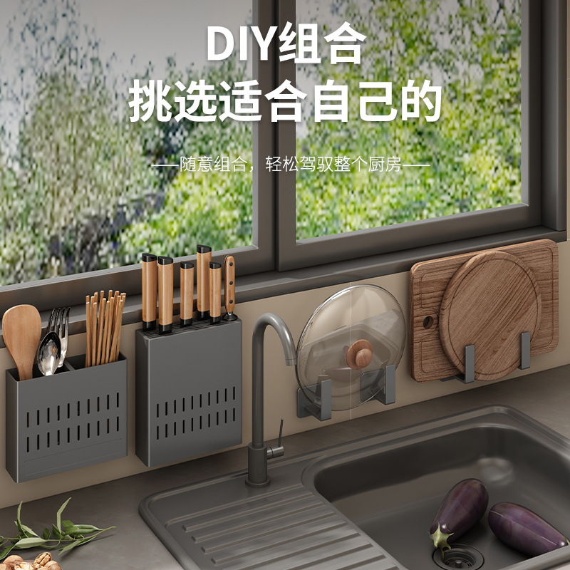 枪灰厨房置物架免打孔调味料架壁挂刀架家用用品大全多功能收纳架