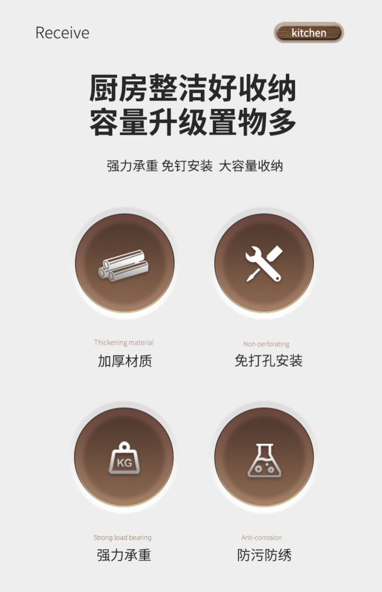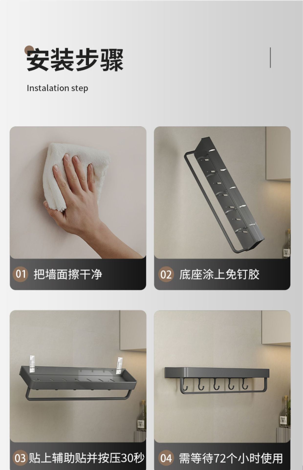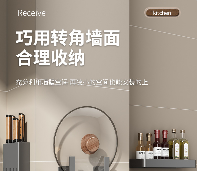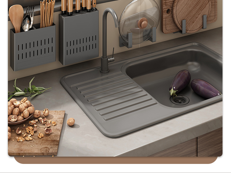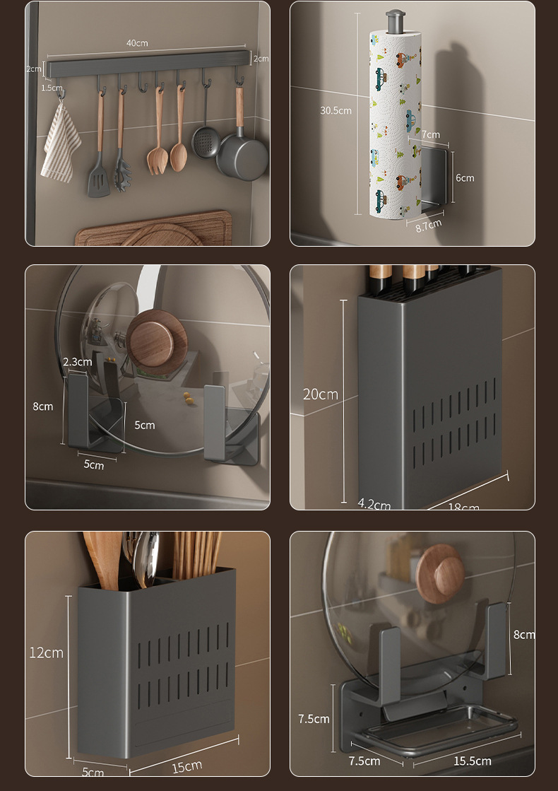 枪灰厨房置物架免打孔调味料架壁挂刀架家用用品大全多功能收纳架
