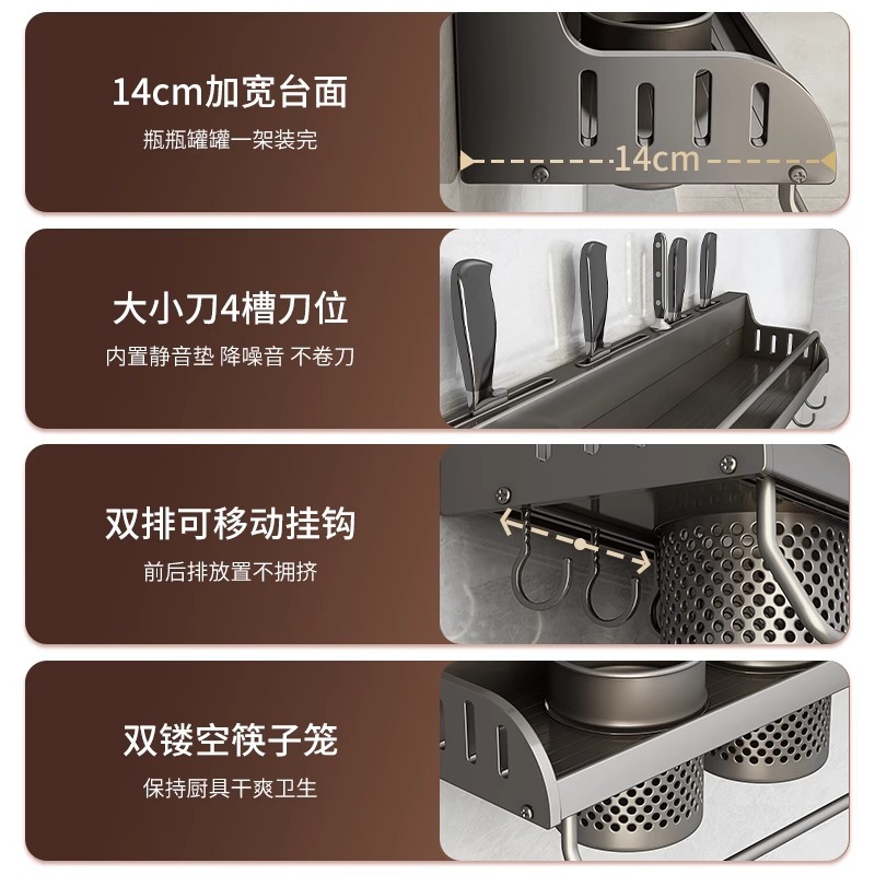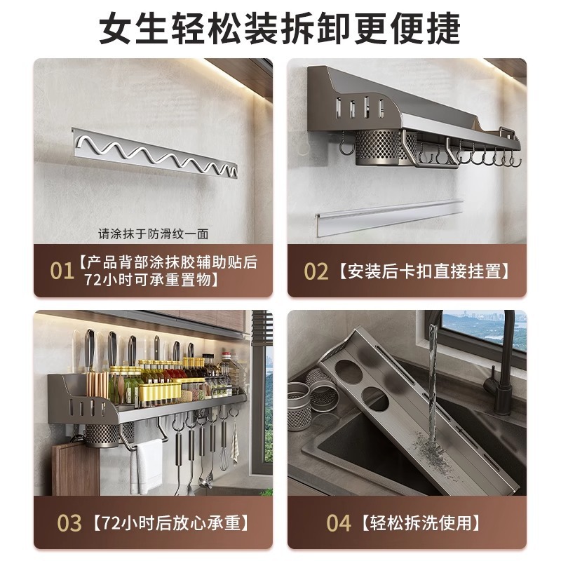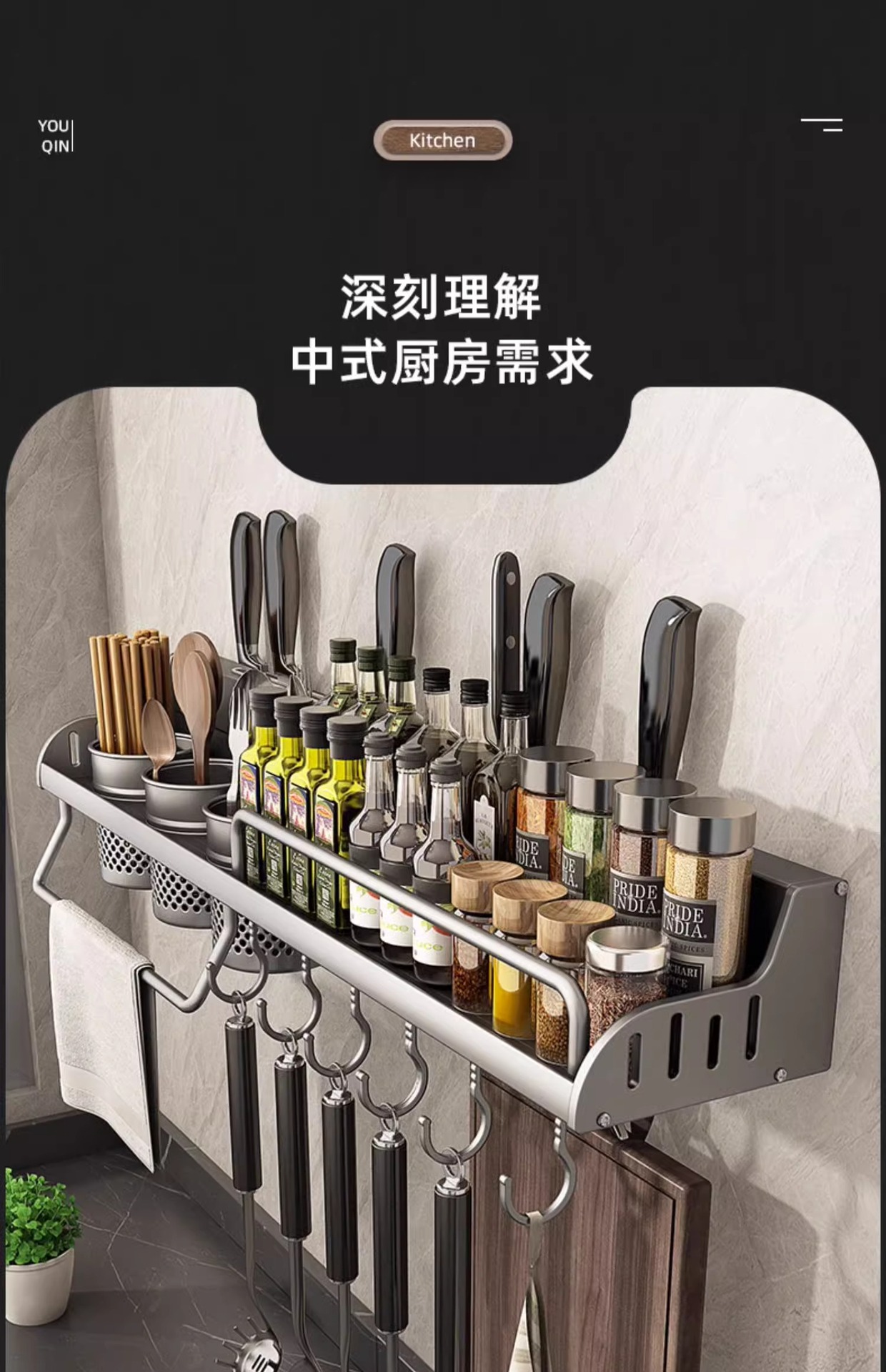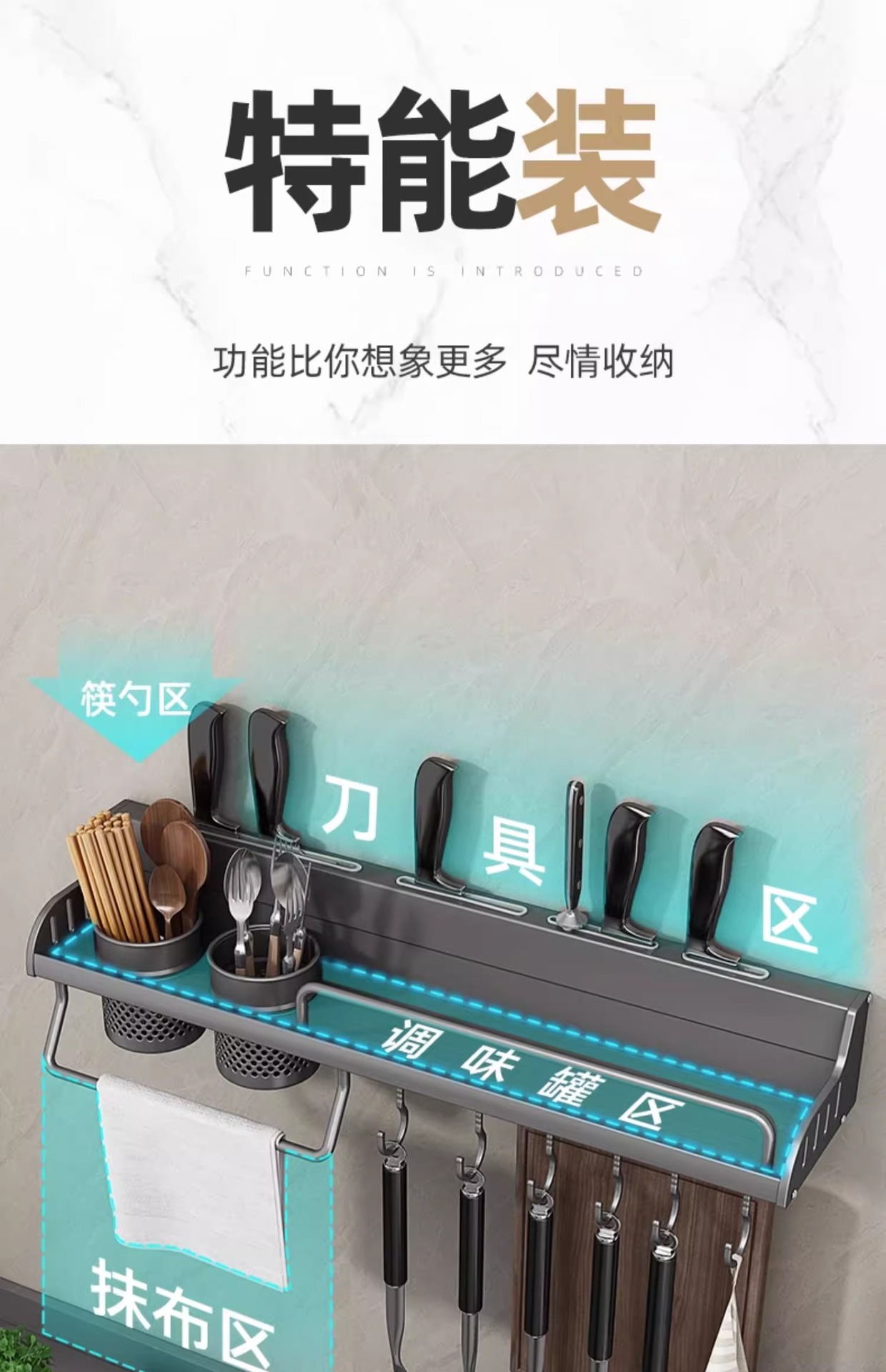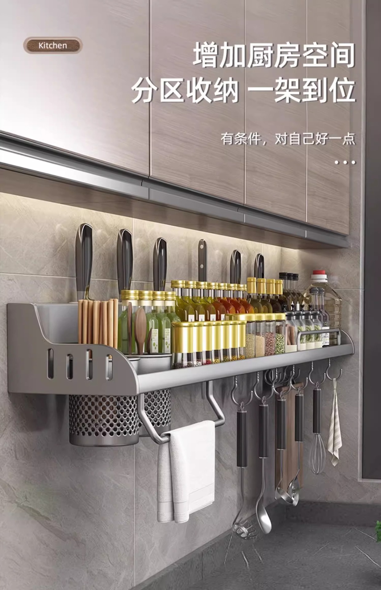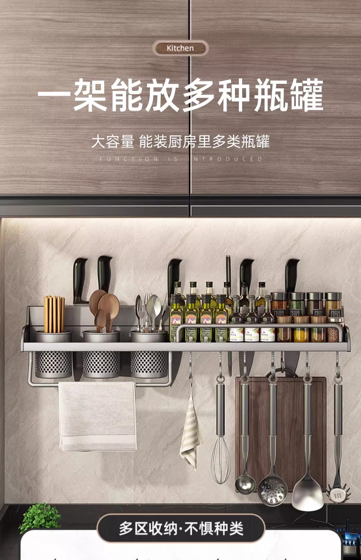 厂家供应厨房置物架免打孔多功能家用壁挂式调味料筷子刀架用品