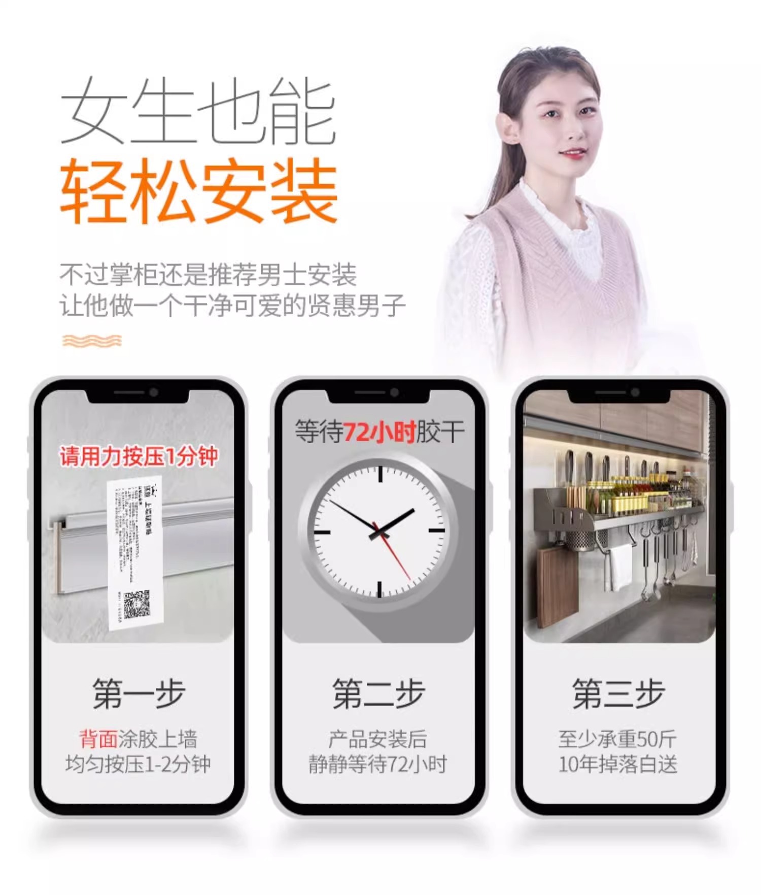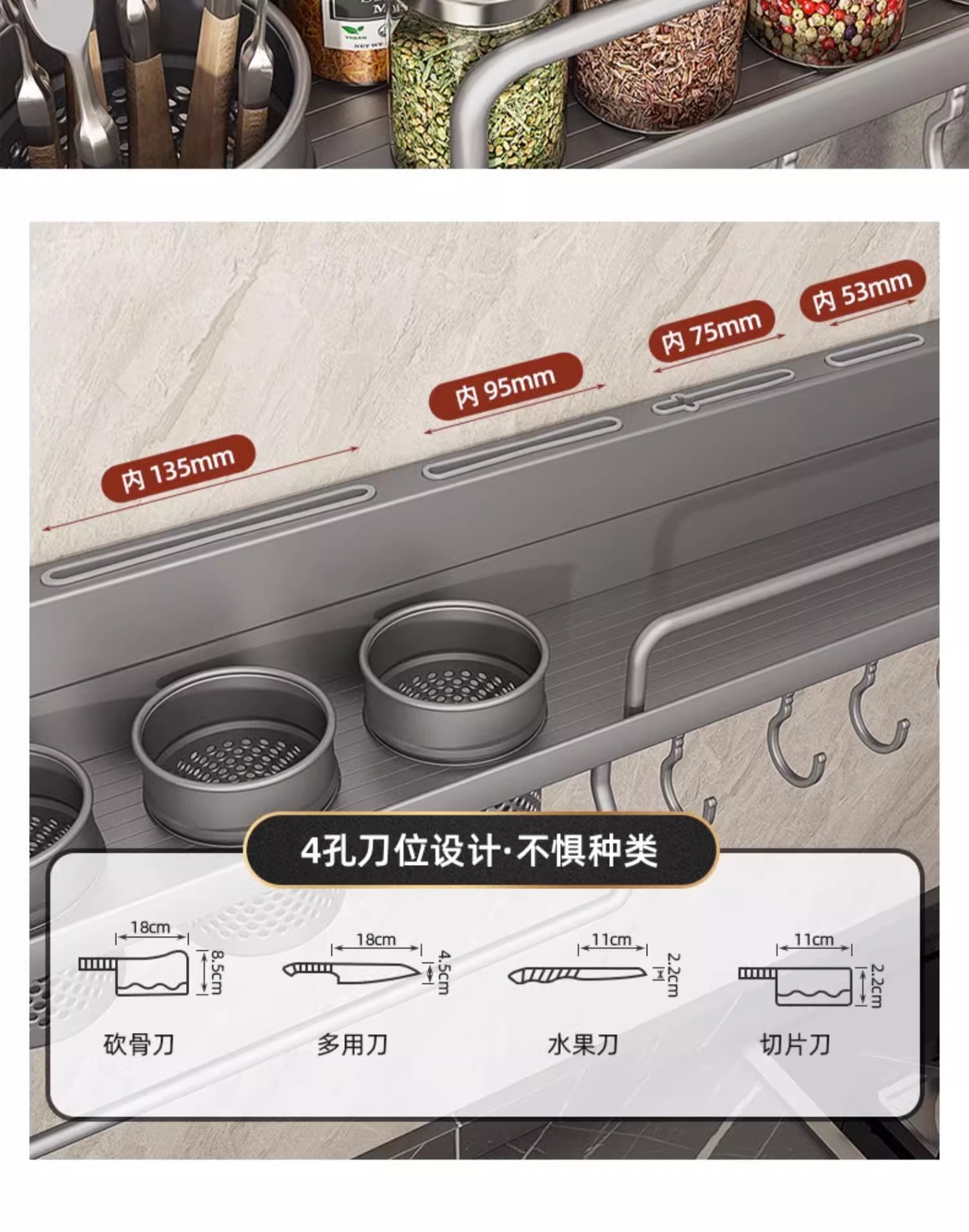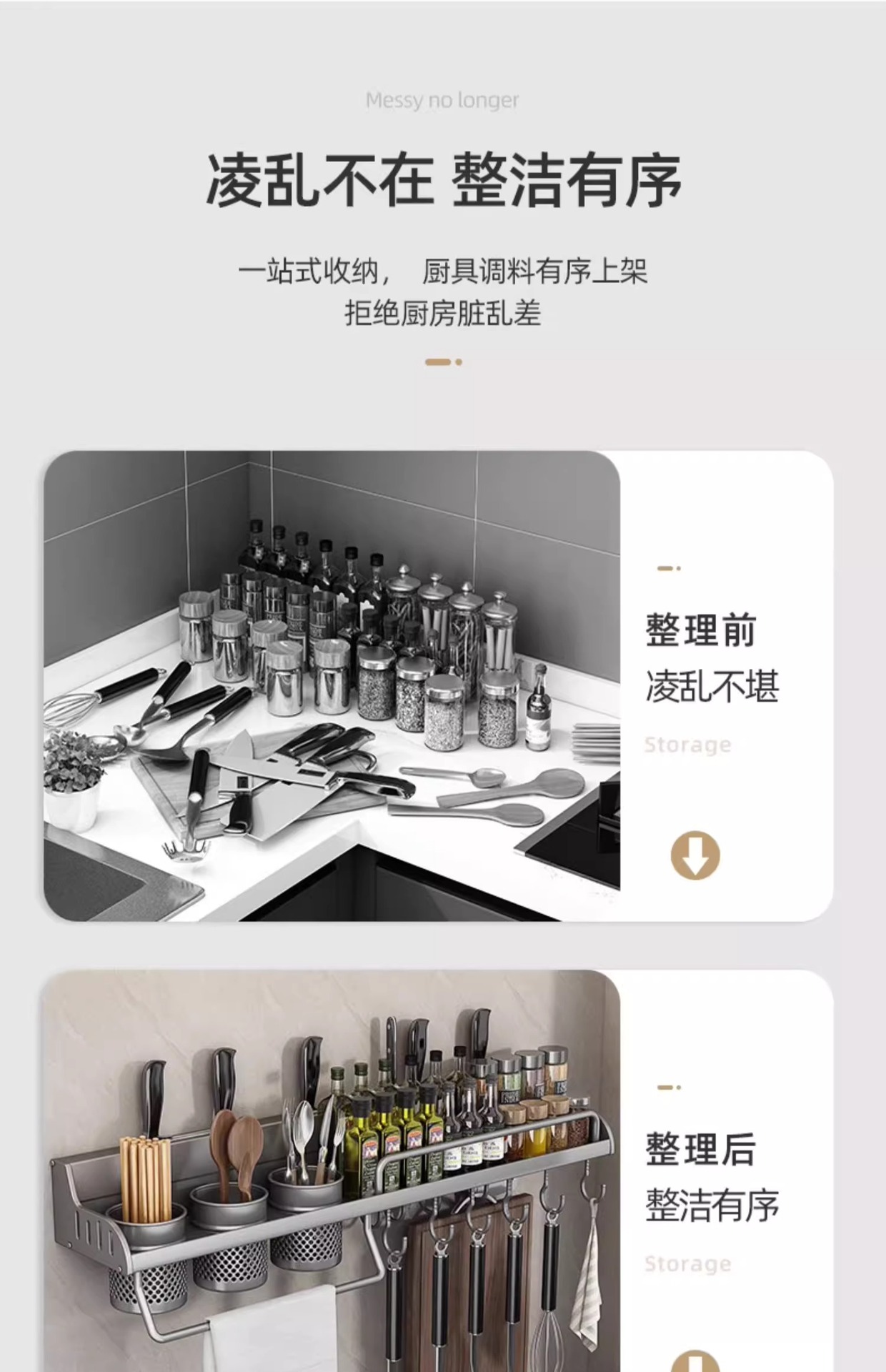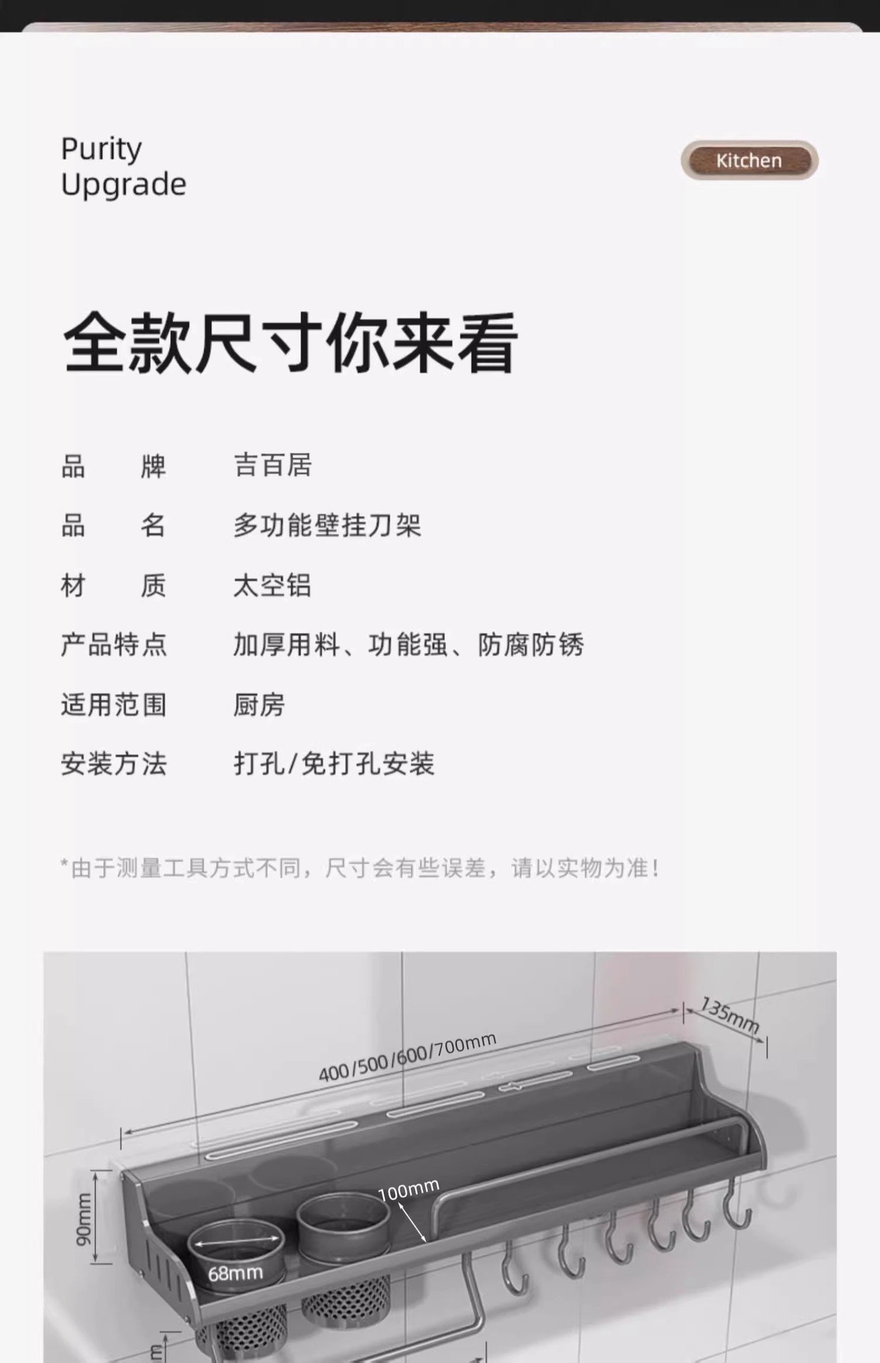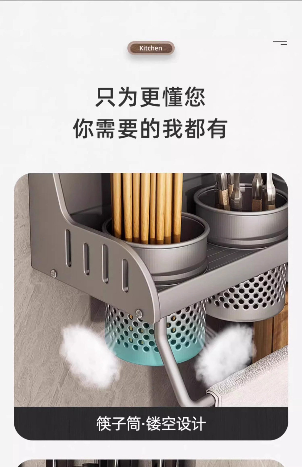 厂家供应厨房置物架免打孔多功能家用壁挂式调味料筷子刀架用品