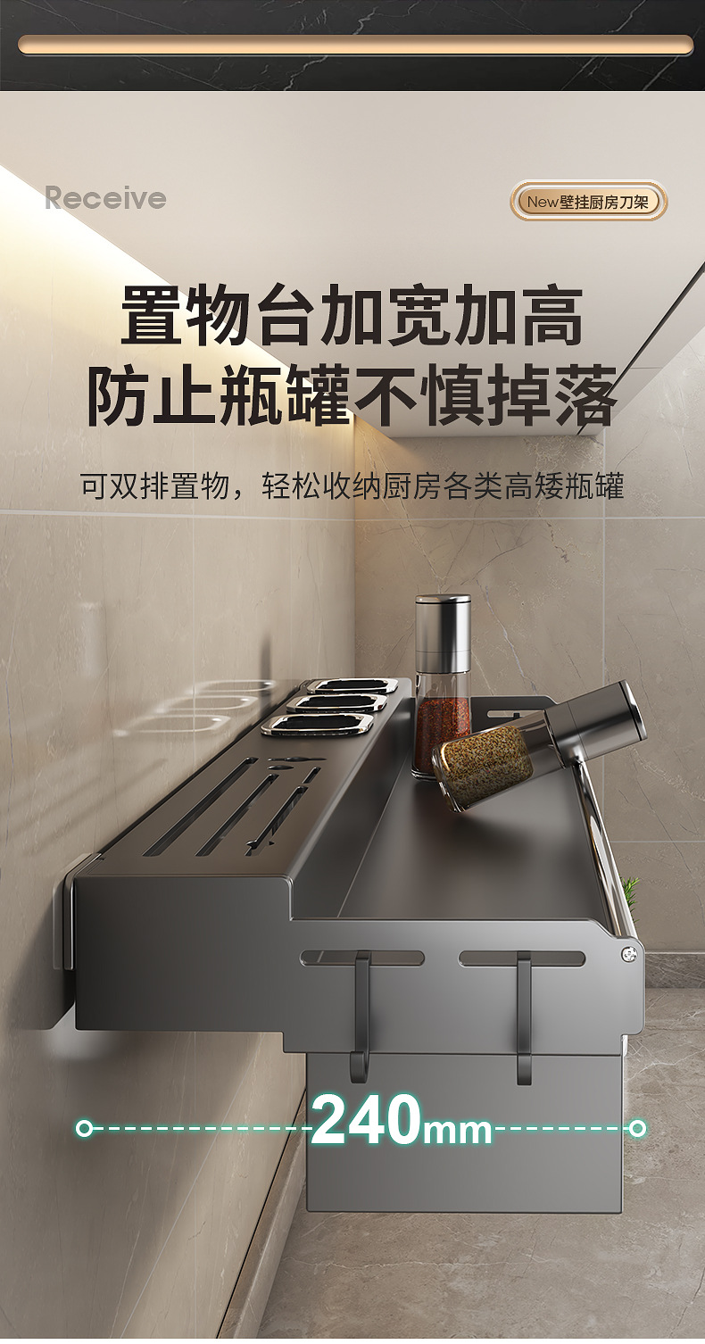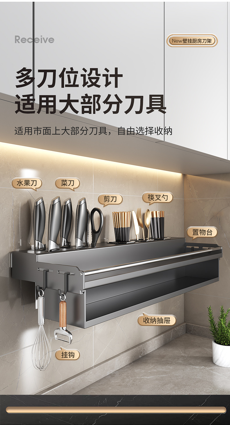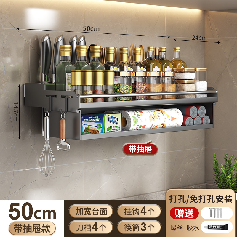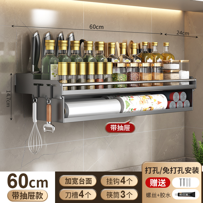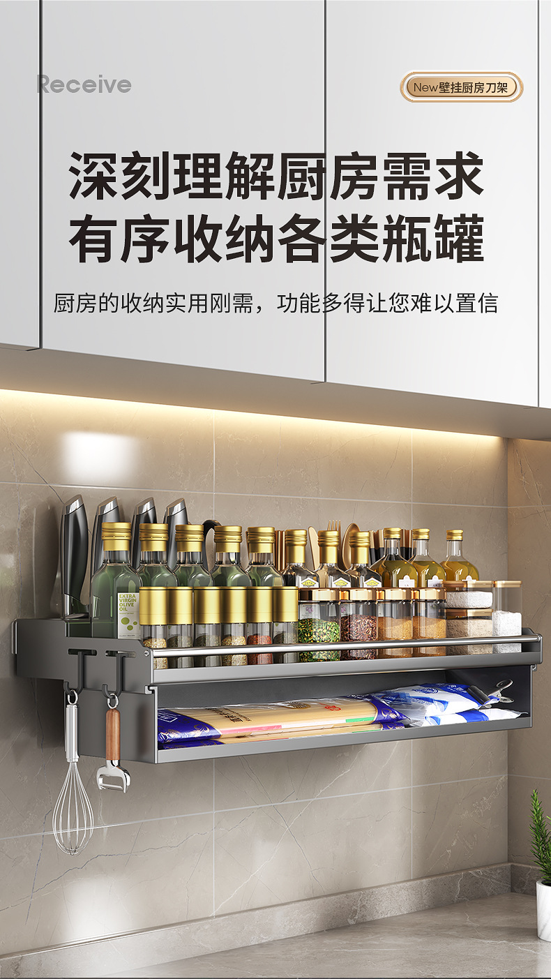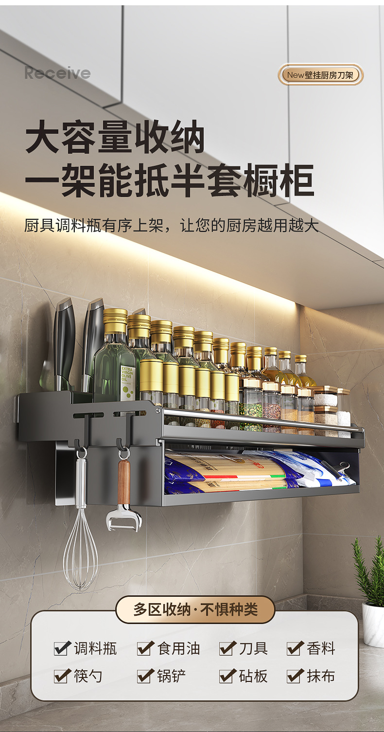 厨房置物架免打孔多功能刀架筷子壁挂式家用调味料用品大收纳架