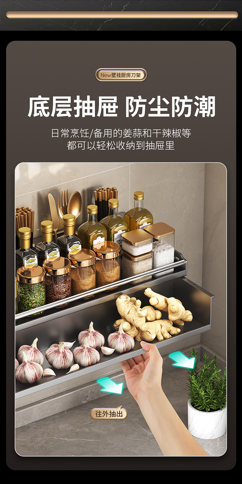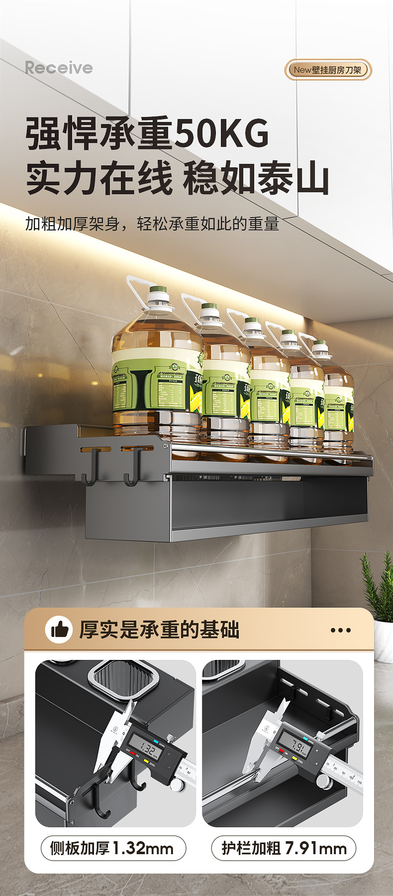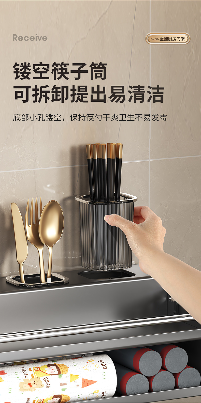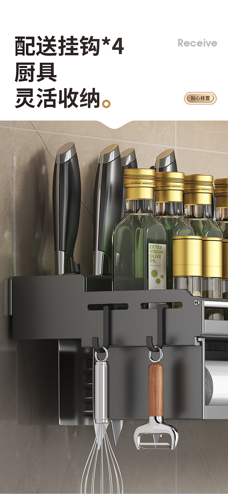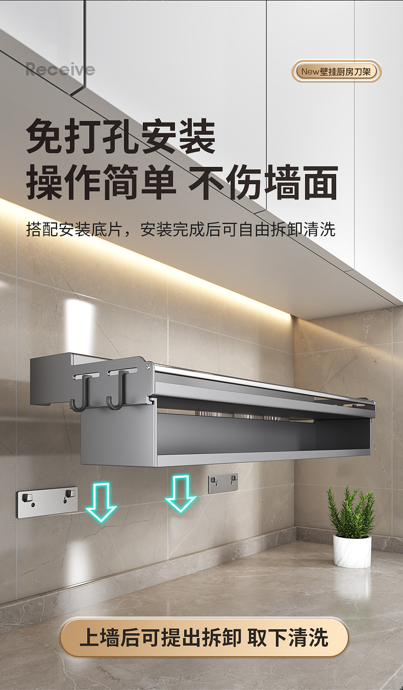 厨房置物架免打孔多功能刀架筷子壁挂式家用调味料用品大收纳架