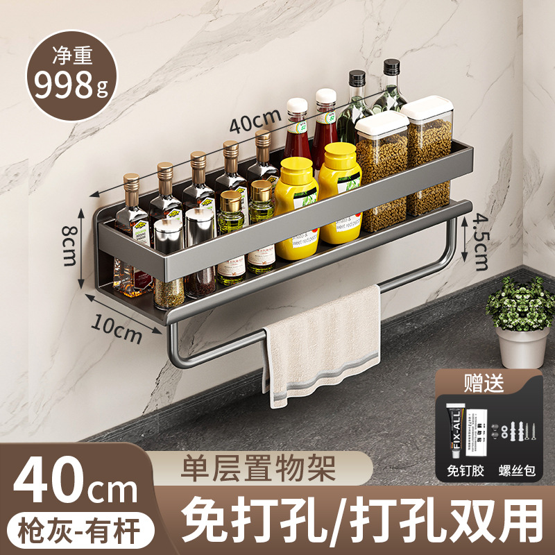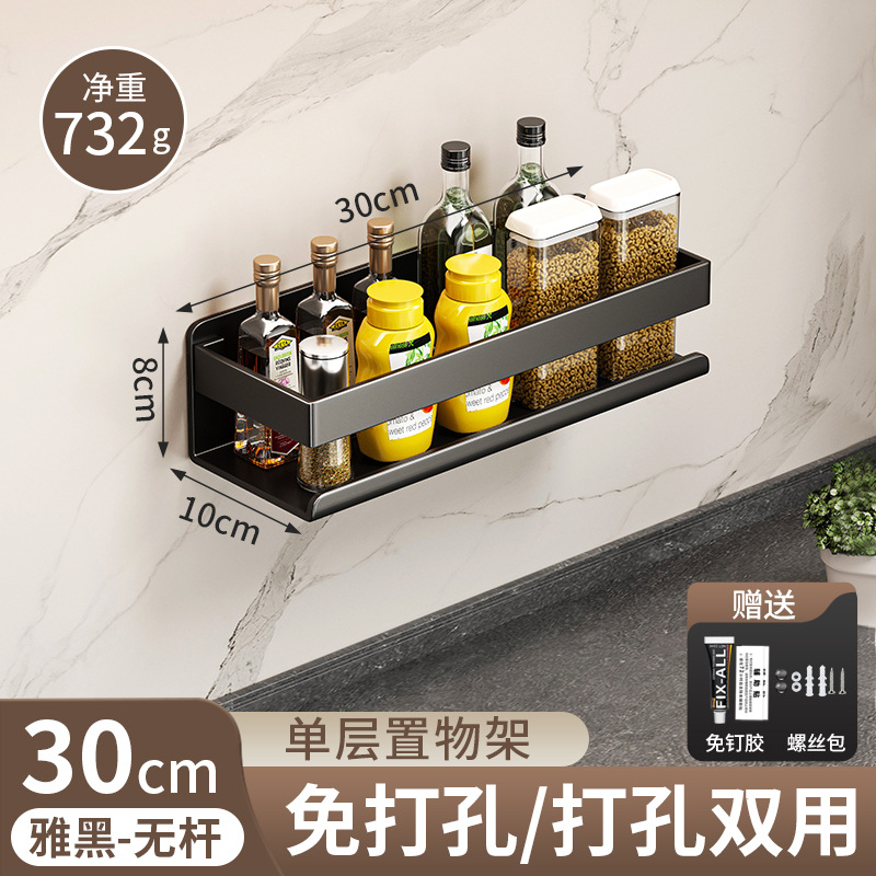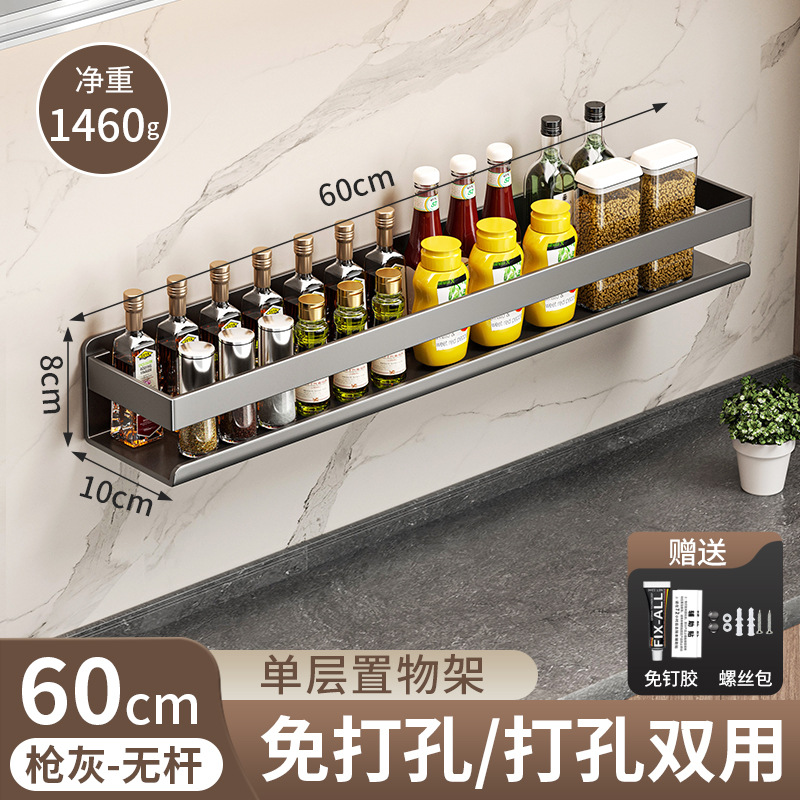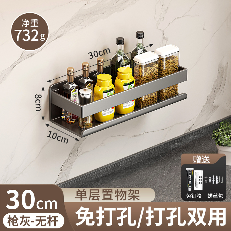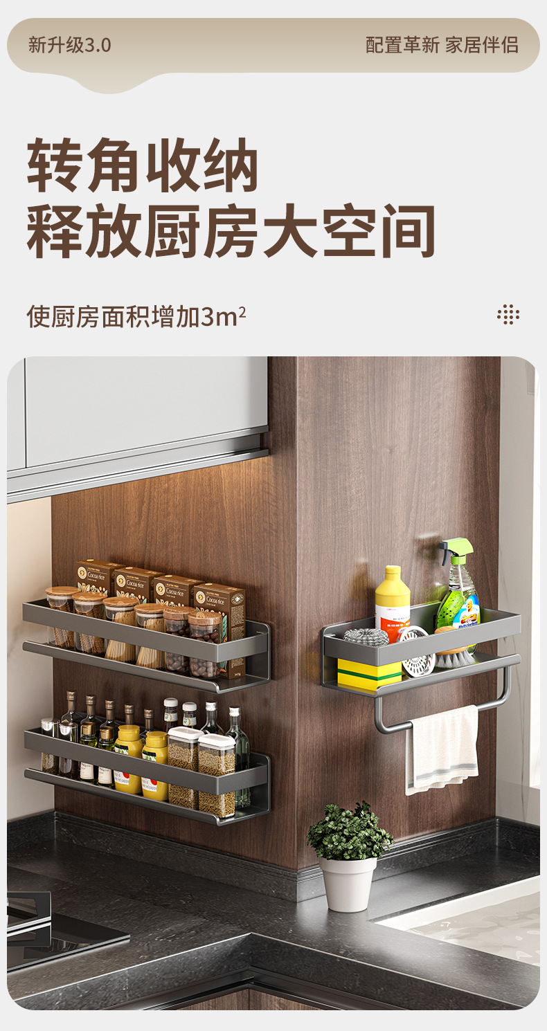 枪灰厨房置物架免打孔调味料架壁挂角架家用用品大全多功能收纳架