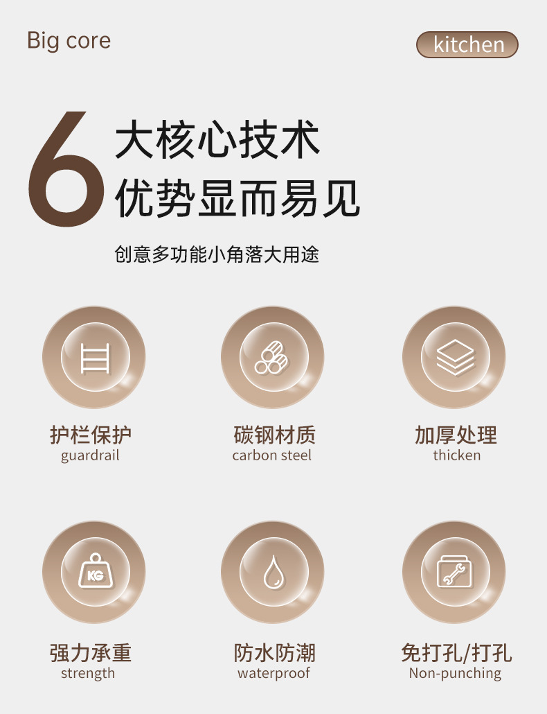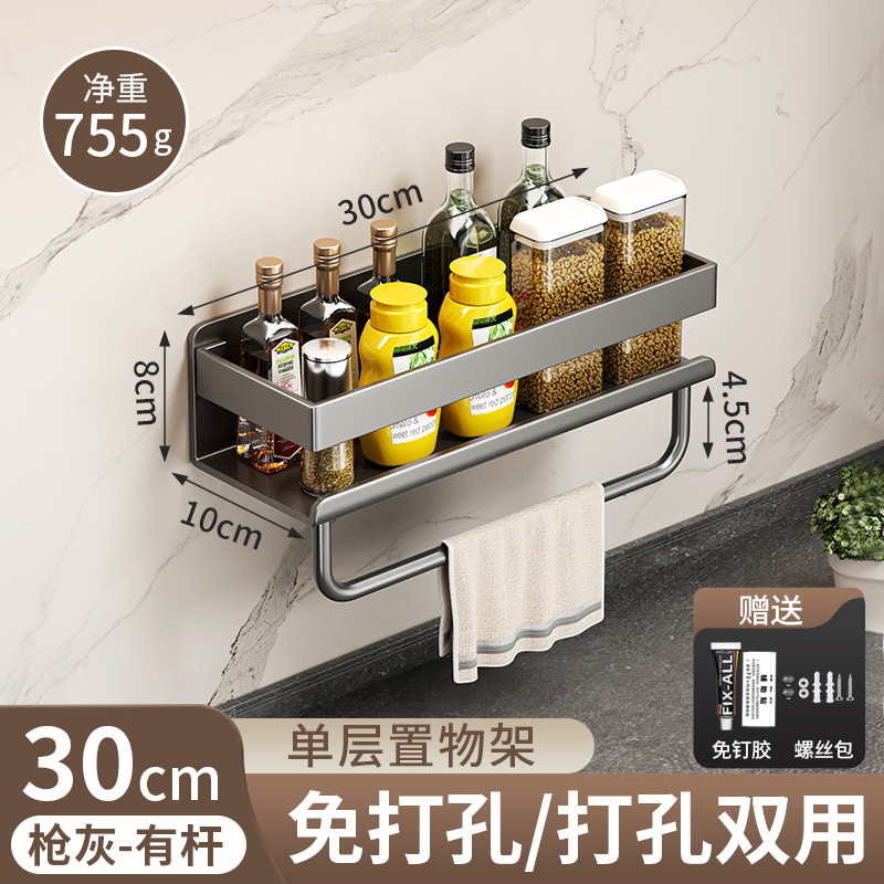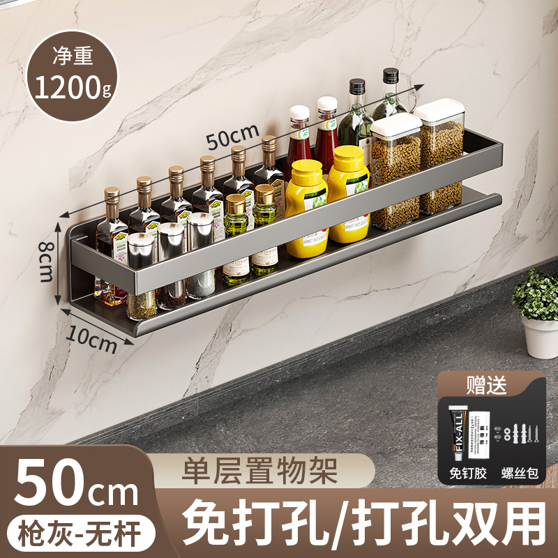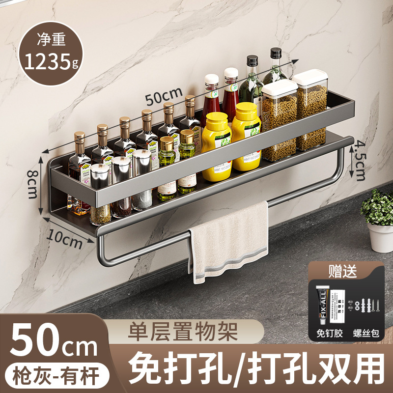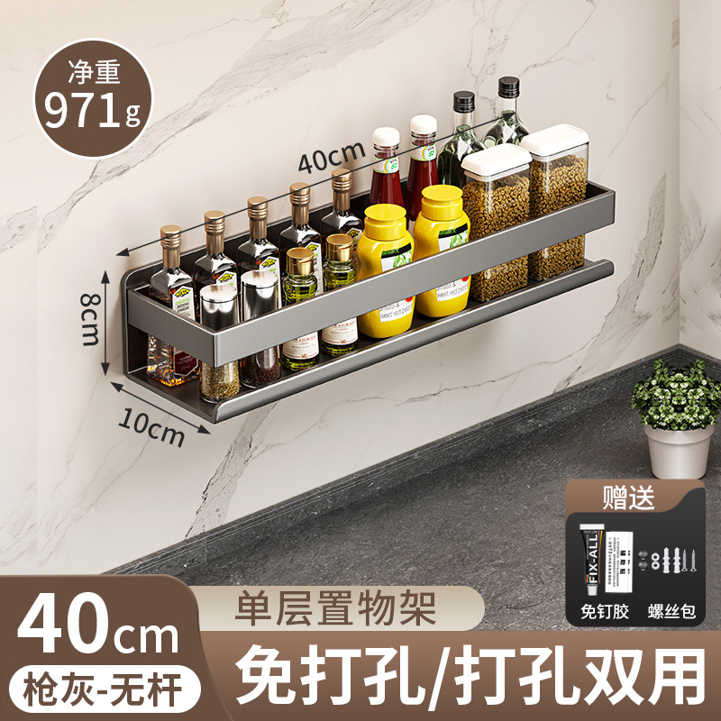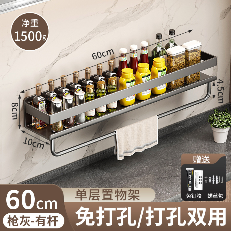 枪灰厨房置物架免打孔调味料架壁挂角架家用用品大全多功能收纳架