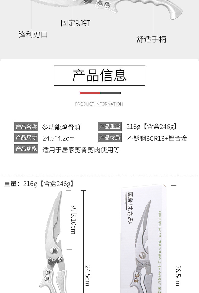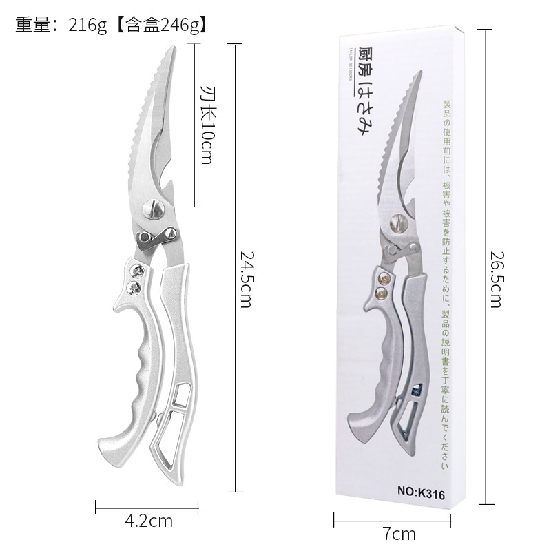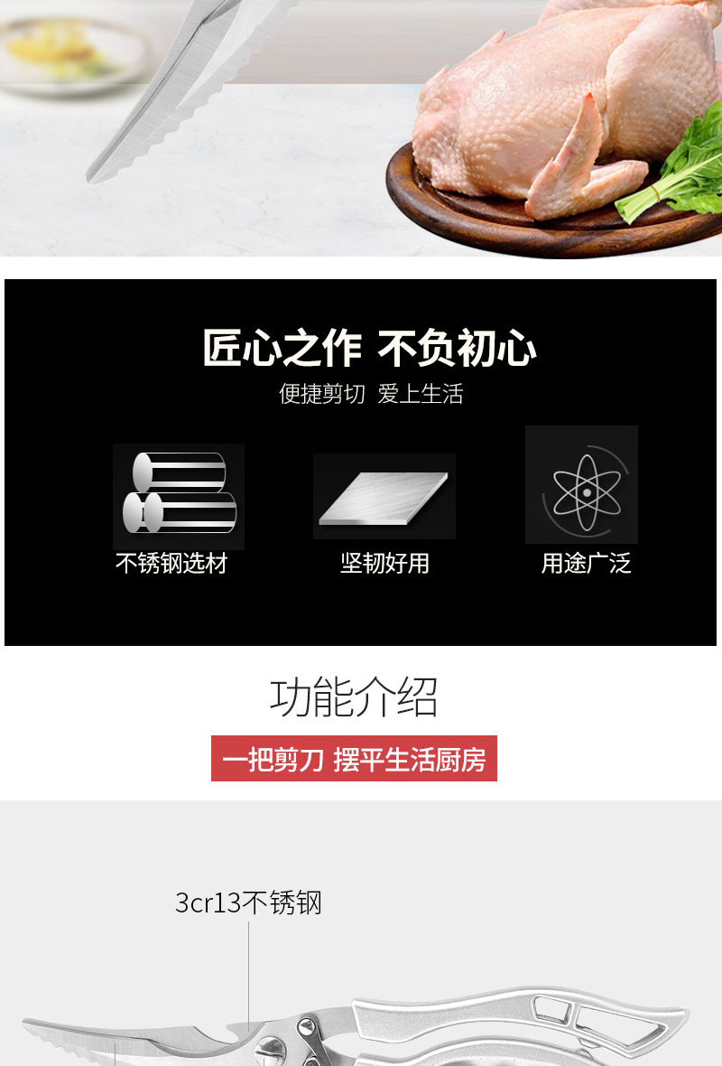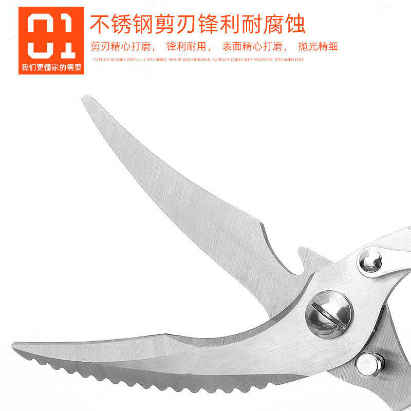 自动回弹多功能厨房剪刀 不锈钢家用鸡骨剪食物烤肉烧烤鱼骨剪