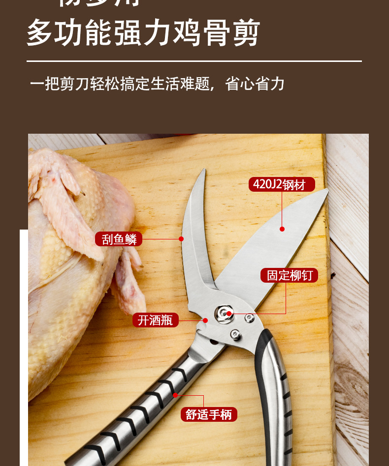阳江刀剪具不锈钢厨房剪刀去骨神器家用多功能拆卸鸡骨剪烤肉剪子