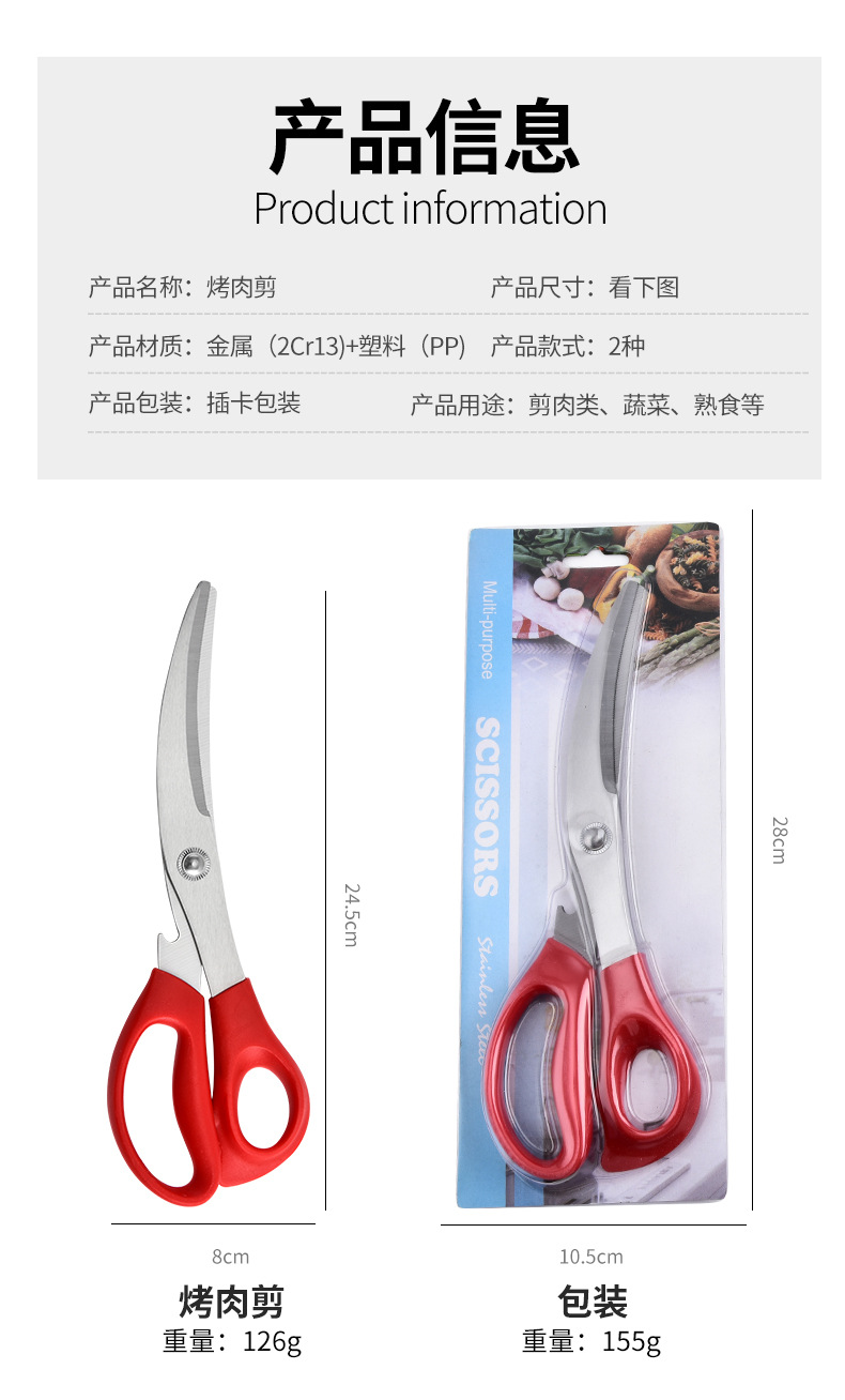 不锈钢家用厨房剪刀 多功能韩式烤肉烧烤剪刀 辅食料理食物剪刀
