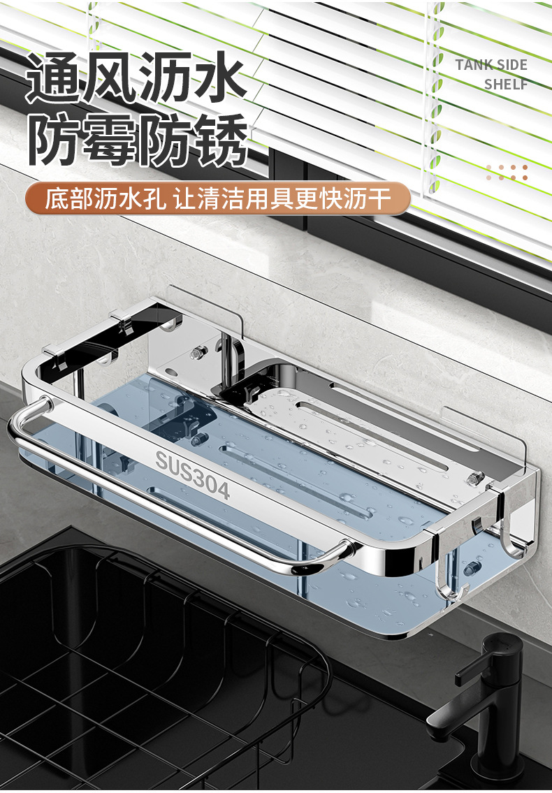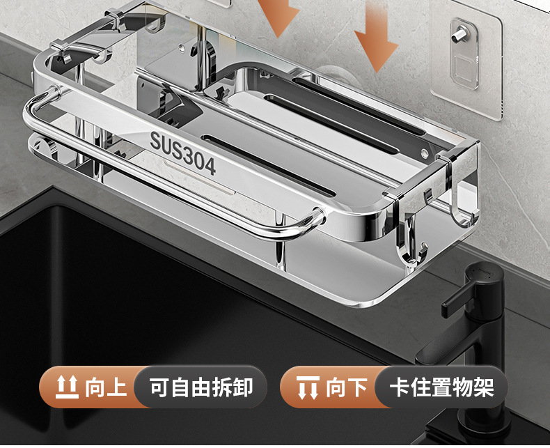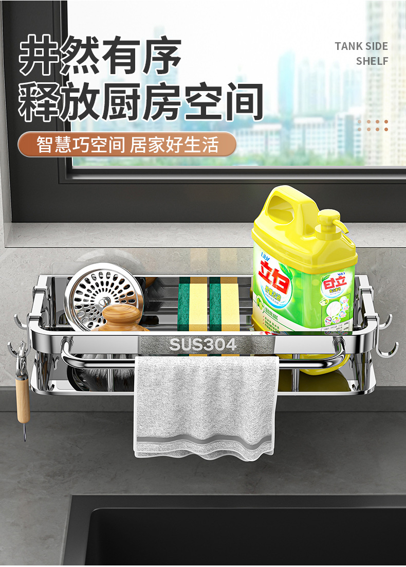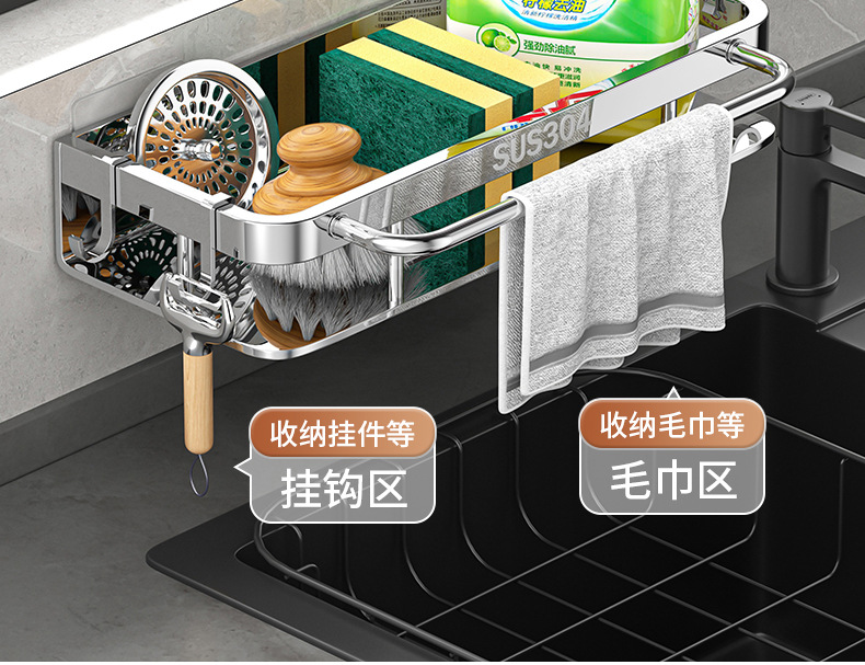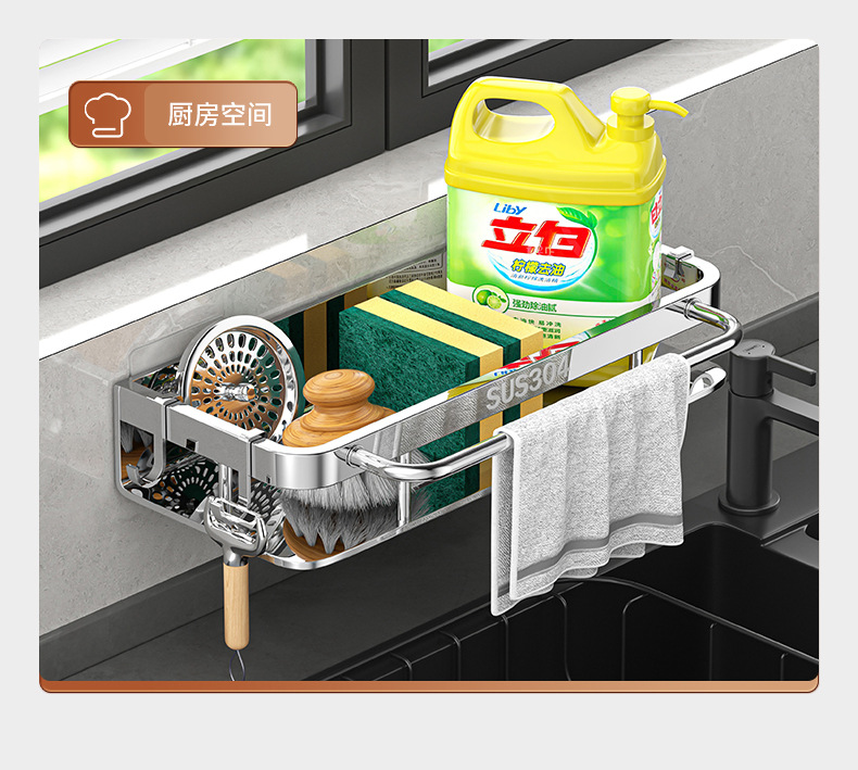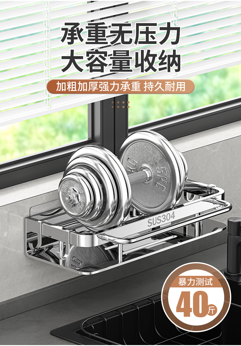 不锈钢厨房收纳架免打孔置物架壁挂抹布海绵架子家用沥水水槽神器