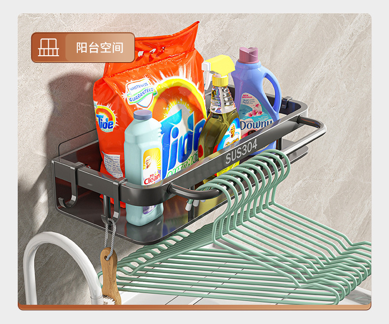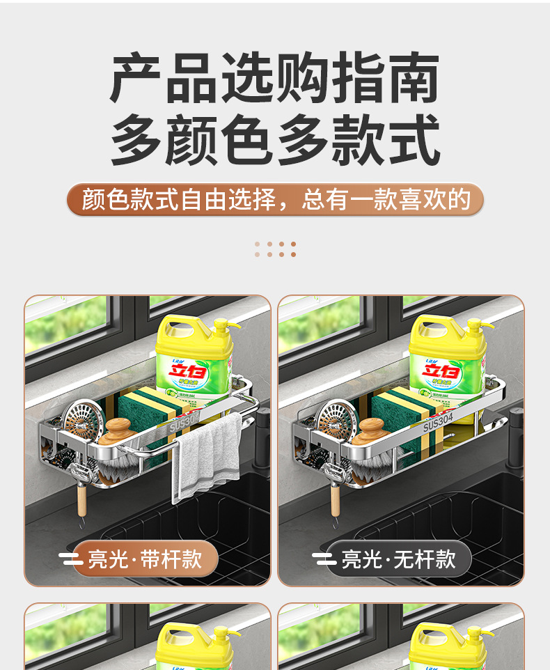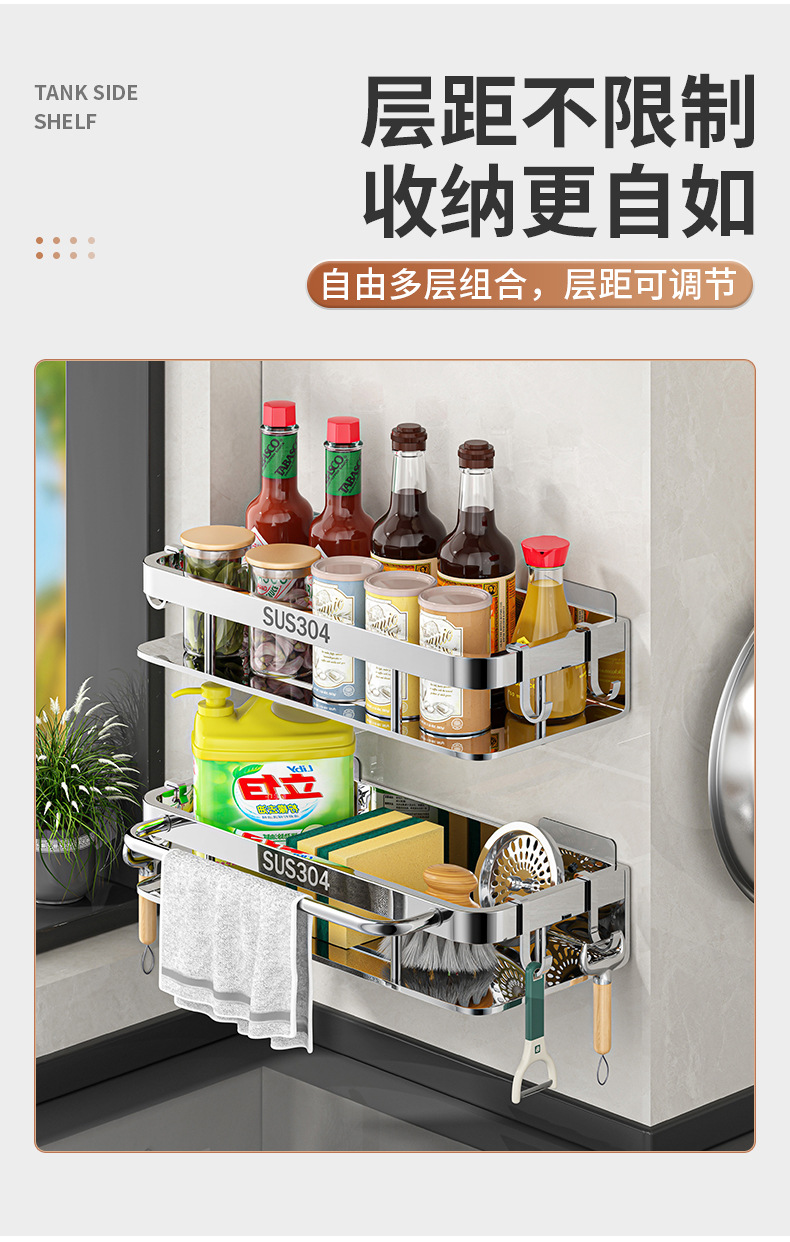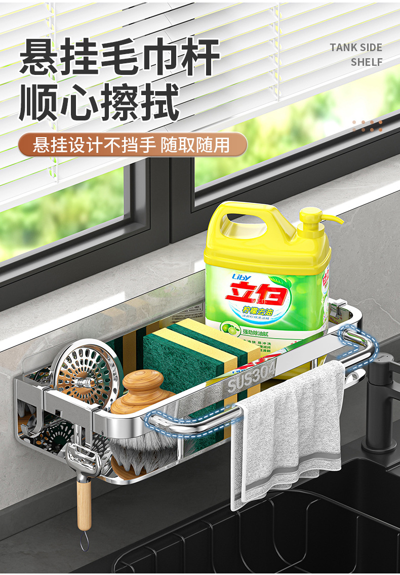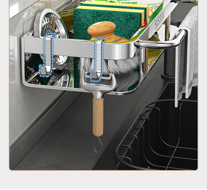 不锈钢厨房收纳架免打孔置物架壁挂抹布海绵架子家用沥水水槽神器