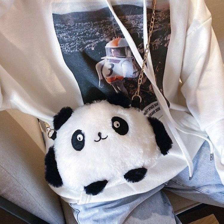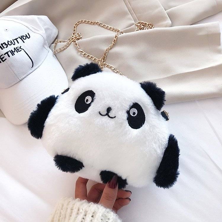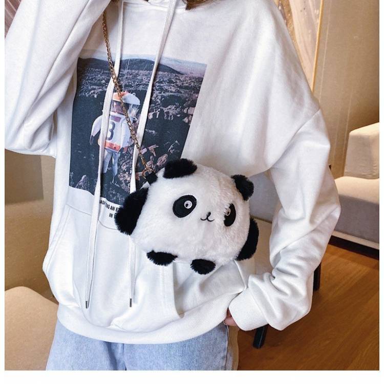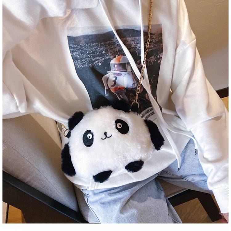 网红丑萌熊猫毛绒包包韩版卡通可爱女包 日系个性公仔单肩斜挎包