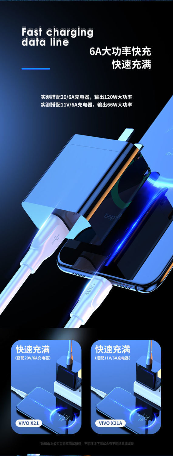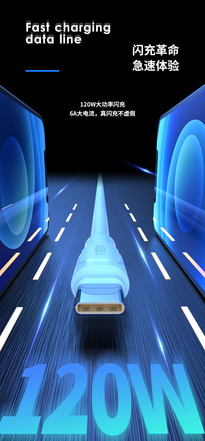 120W神龙数据线加粗OD6.0快充数据线type-c适用于华为苹果充电线