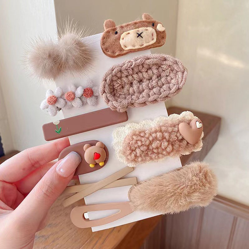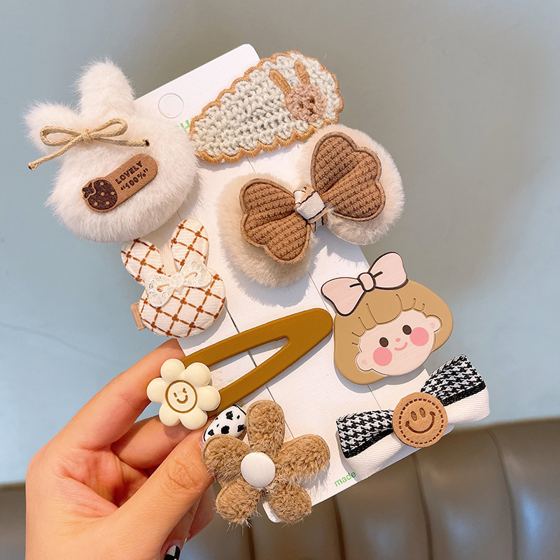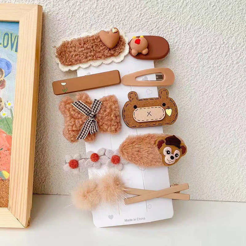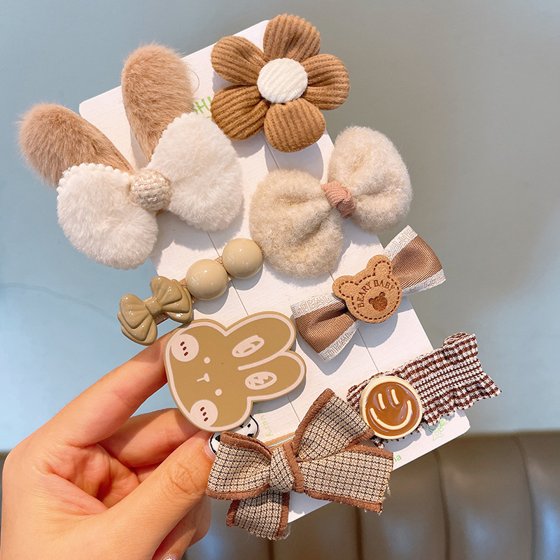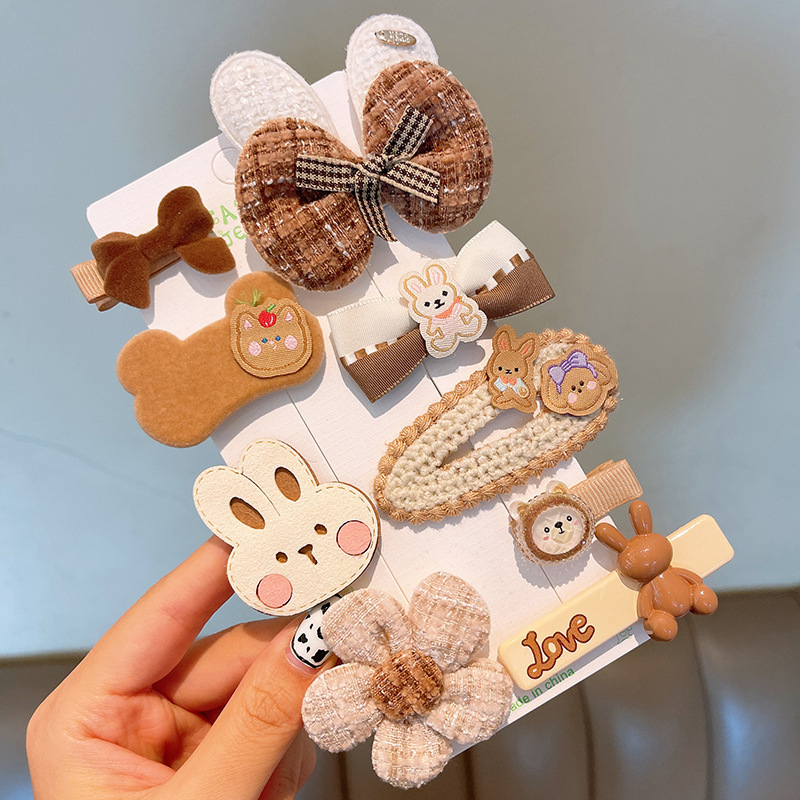 韩国网红儿童发夹匠心毛绒咖色女童发卡可爱宝宝头饰兔子小熊发饰