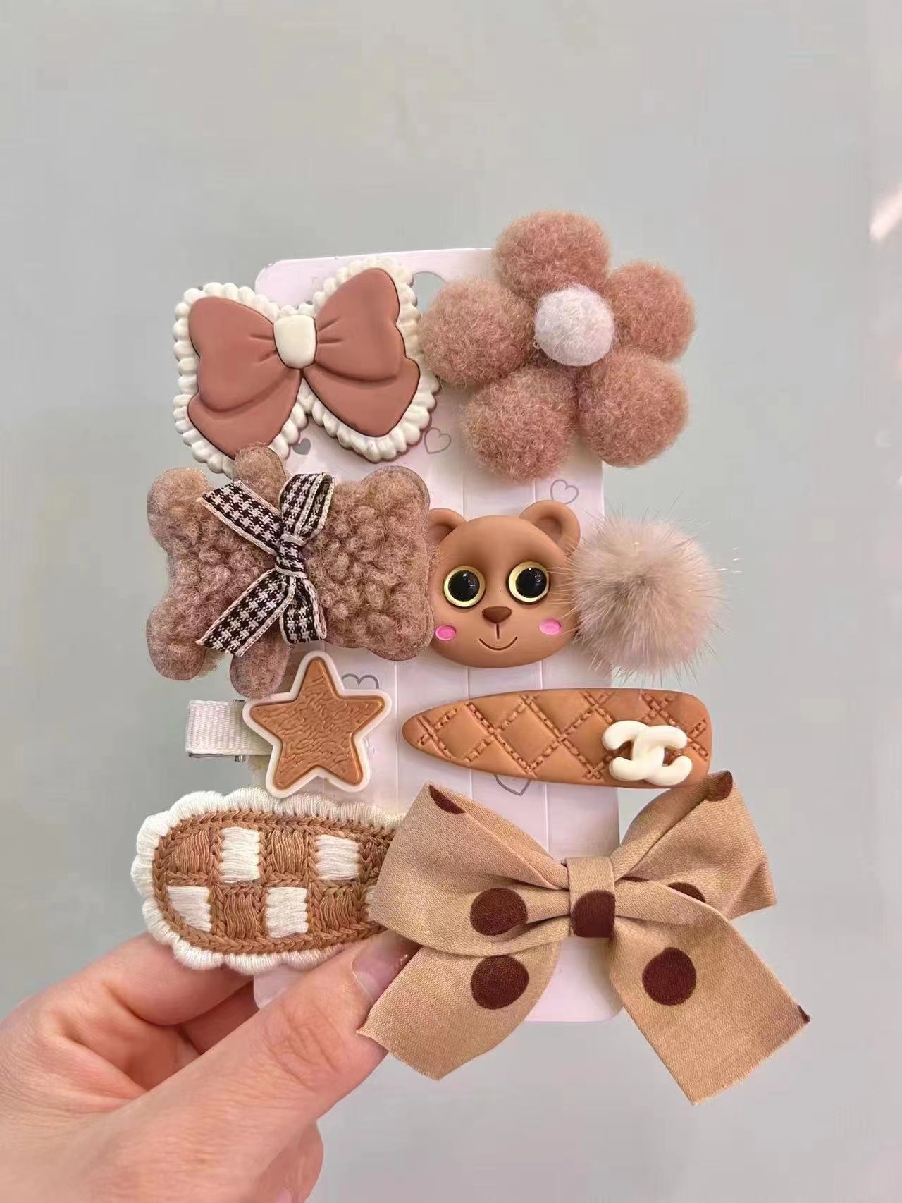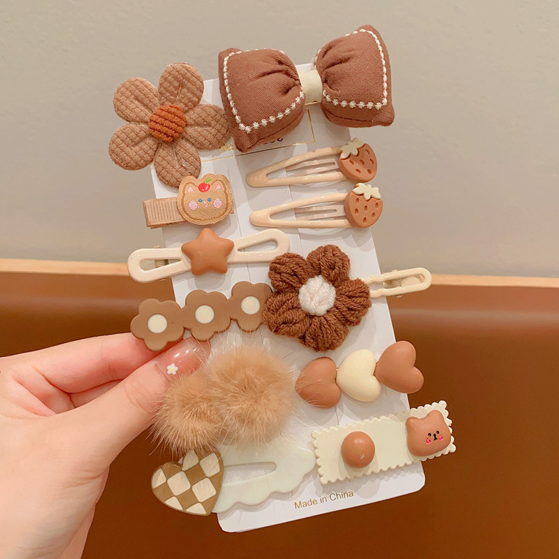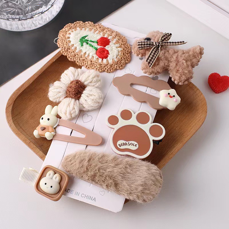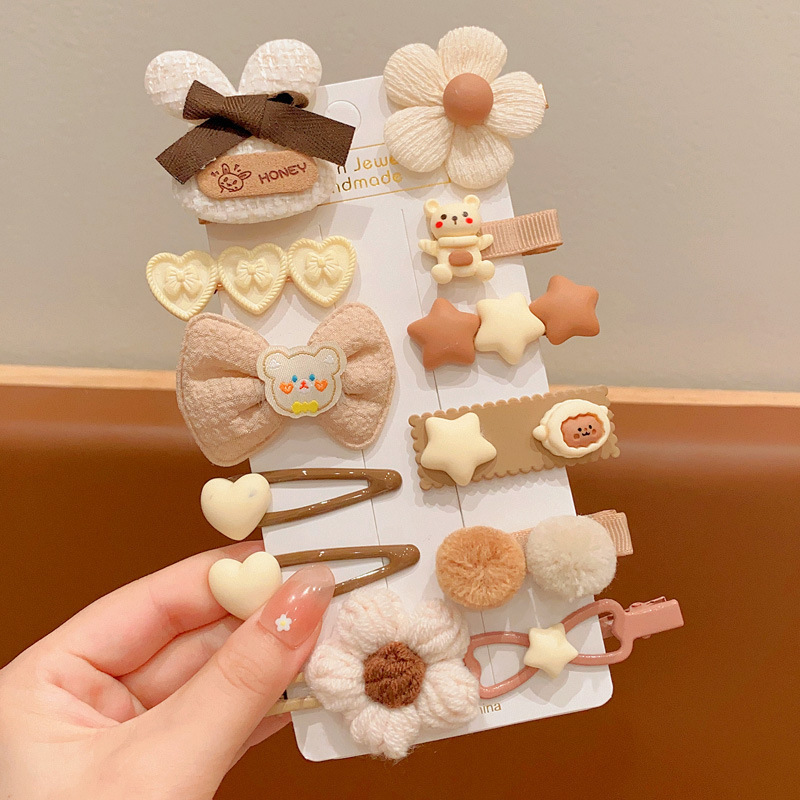 韩国网红儿童发夹匠心毛绒咖色女童发卡可爱宝宝头饰兔子小熊发饰