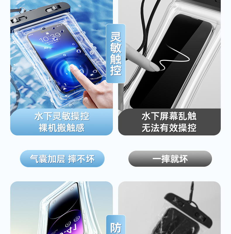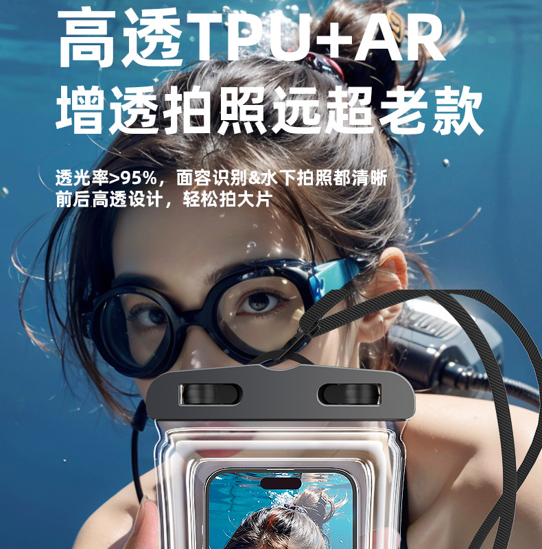 简约风可触屏游泳专用手机防水袋温泉透明密封袋挂绳挂脖游泳装备