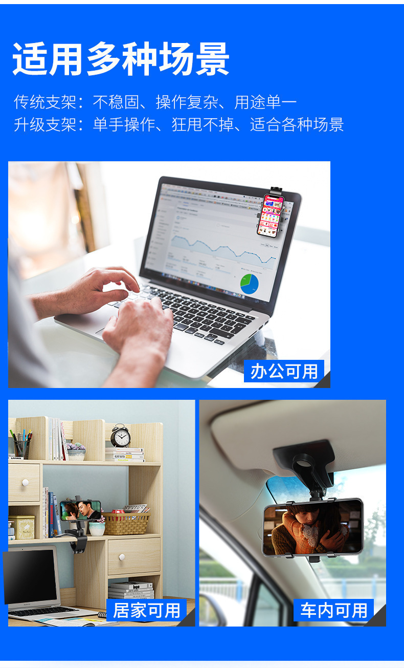 2023新款车载手机支架仪表盘固定夹子中控后视镜遮阳板多功能汽车