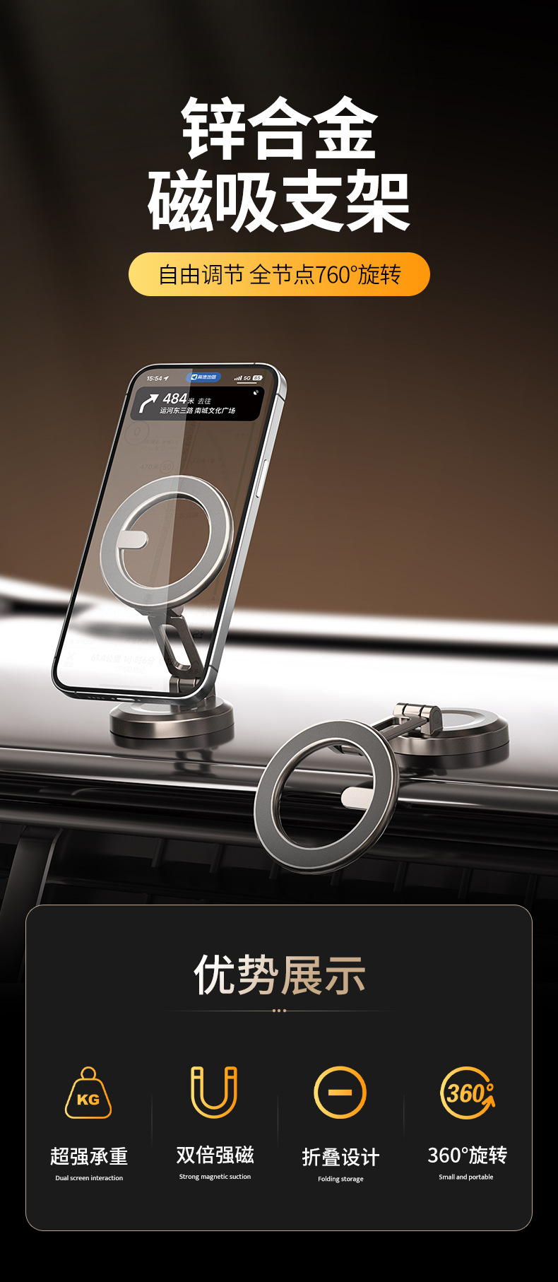 金属车载手机支架磁吸式折叠粘贴仪表台汽车用品magsafe车载支架