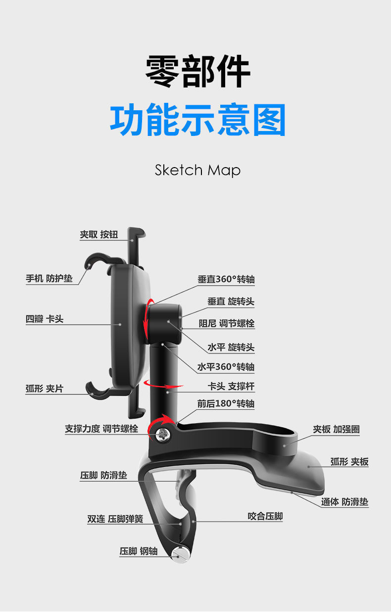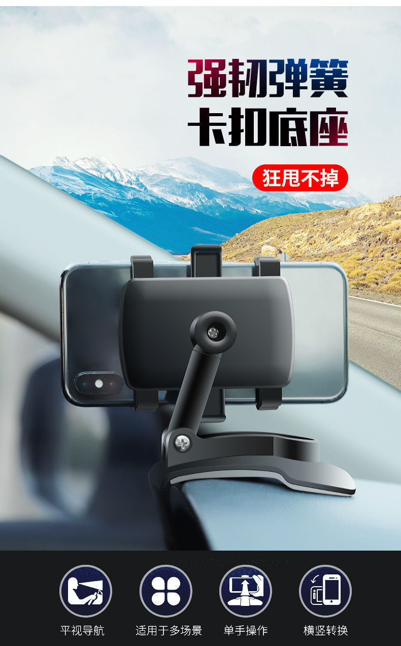 跨境车载手机支架汽车多功能旋转车内用仪表盘后视镜导航支架批发