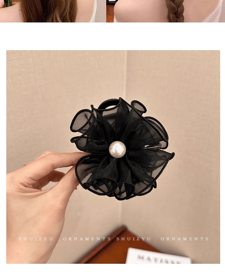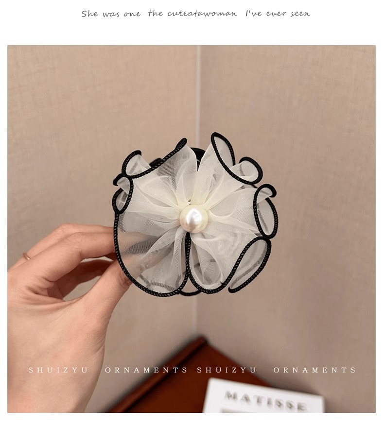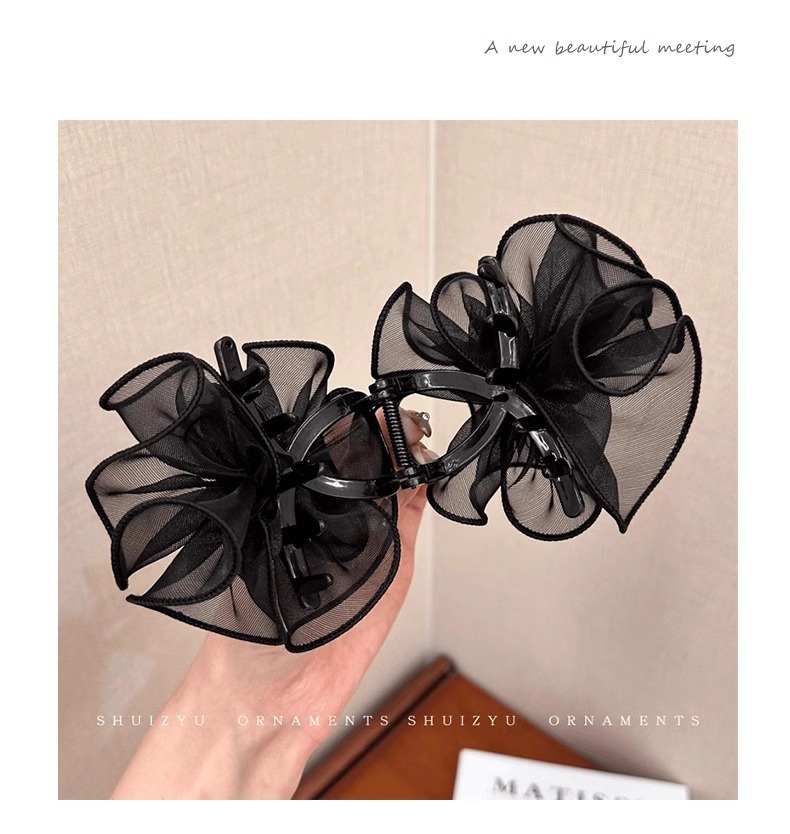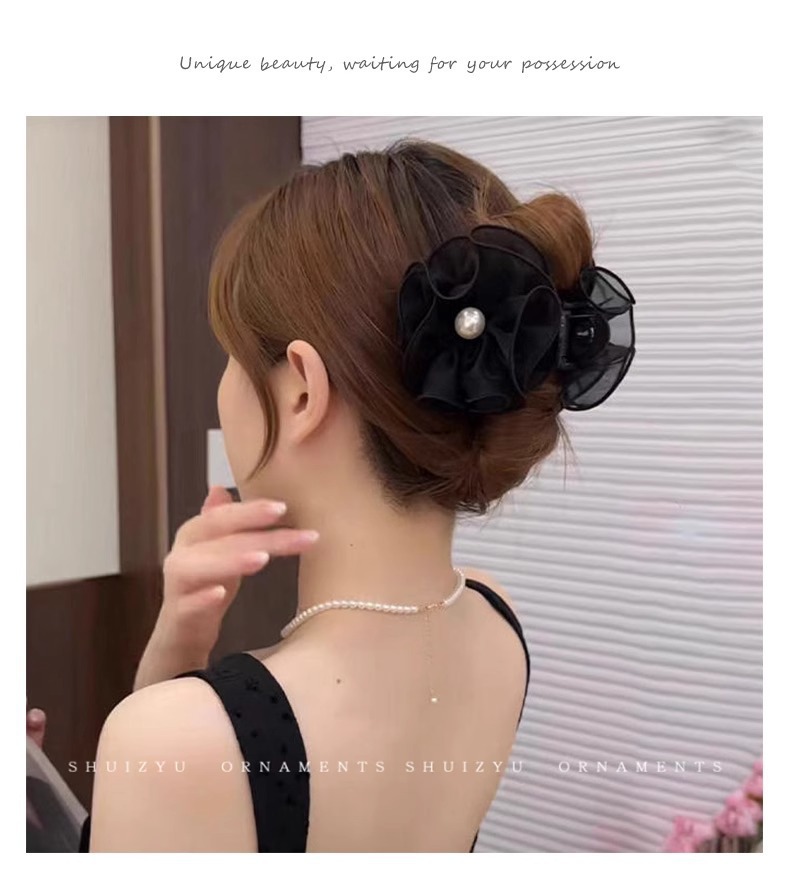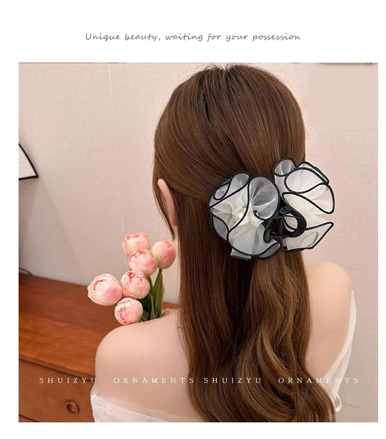 花苞头发抓夹女2024新款网纱发夹后脑勺鲨鱼夹高级感夹子头饰发卡