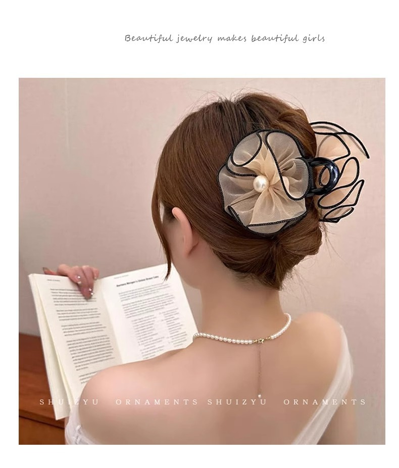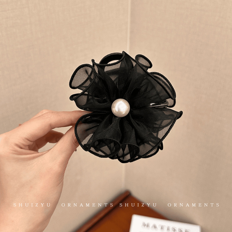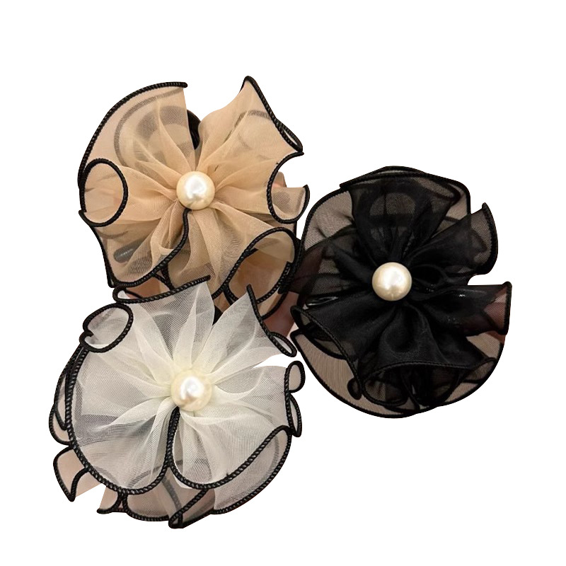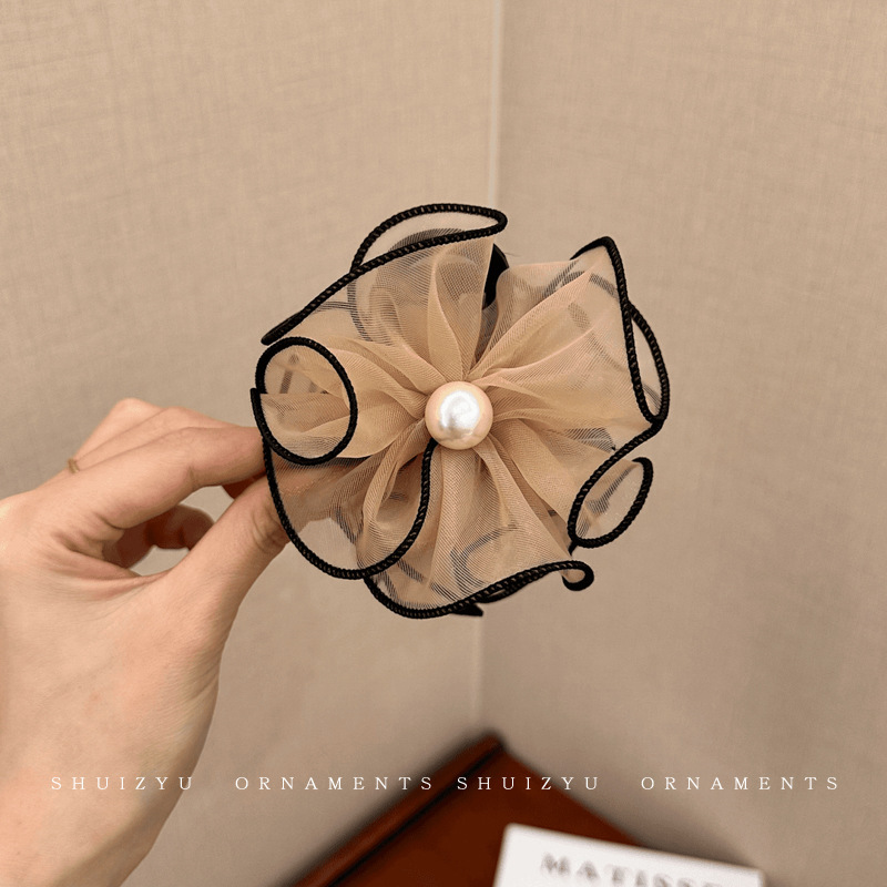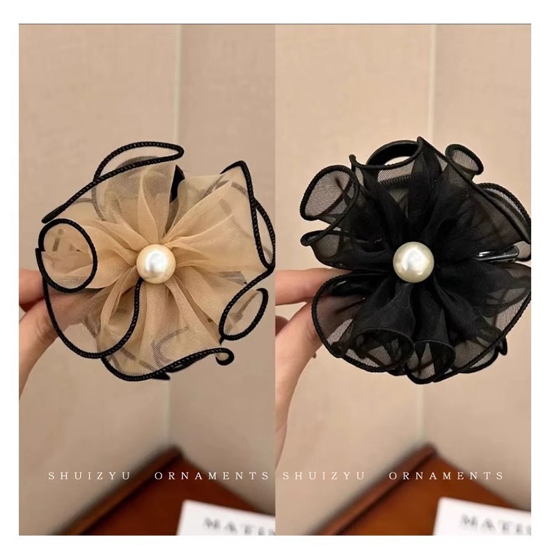 花苞头发抓夹女2024新款网纱发夹后脑勺鲨鱼夹高级感夹子头饰发卡