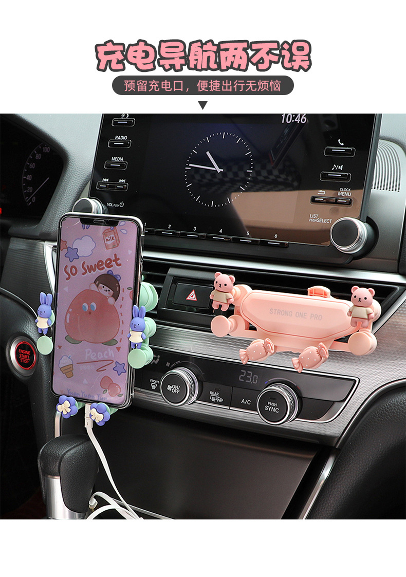 车载手机支架车内车用可爱卡通车上出风口手机导航固定支撑架用品