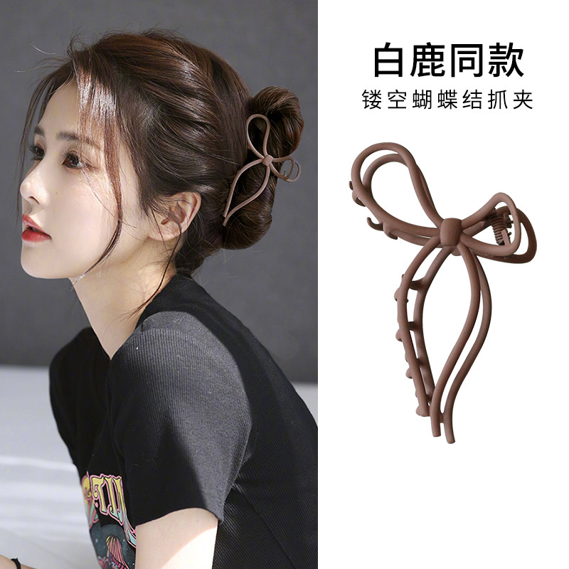 白鹿同款镂空蝴蝶结抓夹磨砂金属气质后脑勺鲨鱼夹子头饰发夹女夏
