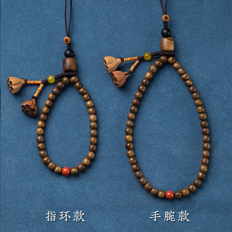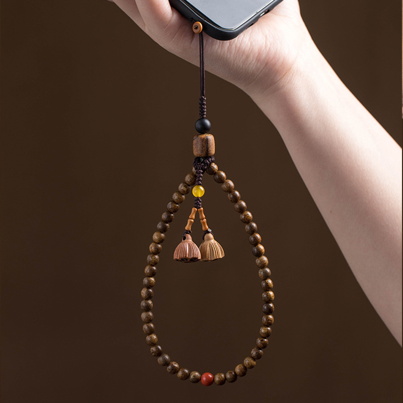 中国风复古加里曼丹沉香木手机挂链女款挂绳短款手腕挂件挂饰吊绳