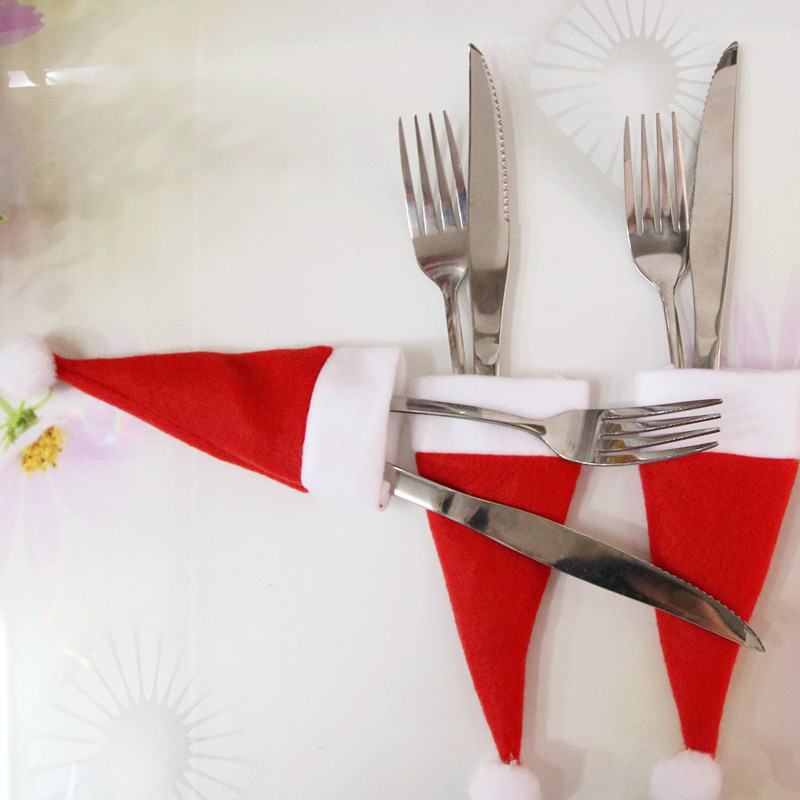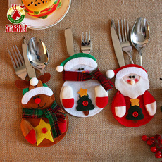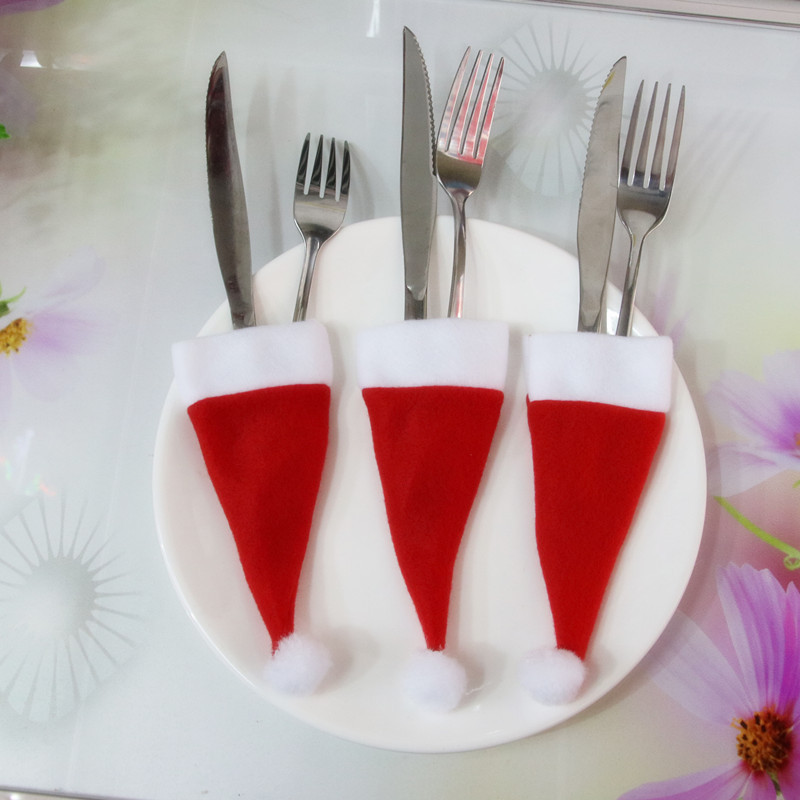 圣诞节装饰品 迷你圣诞帽新款拉绒帽刀叉套酒瓶装饰厂家现货批发