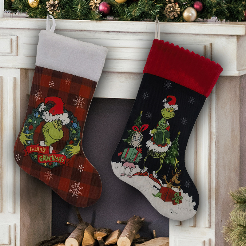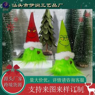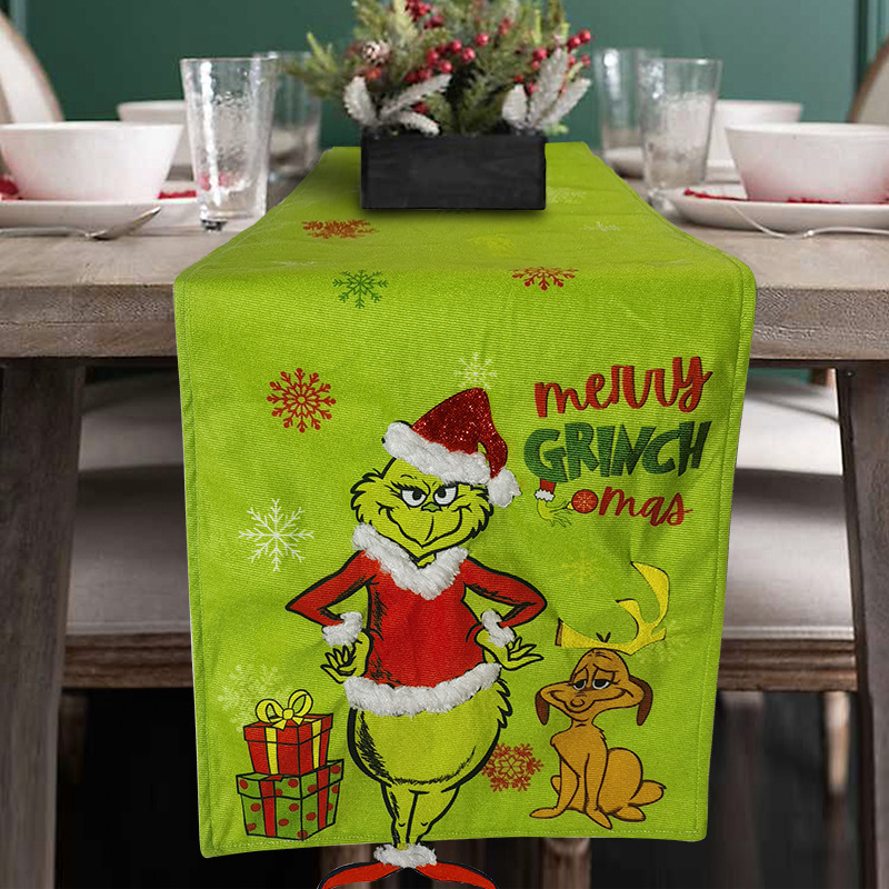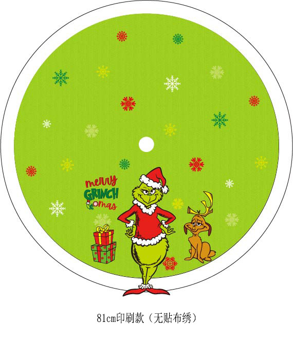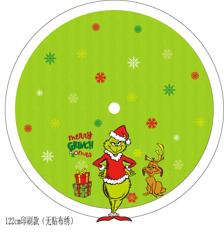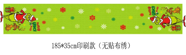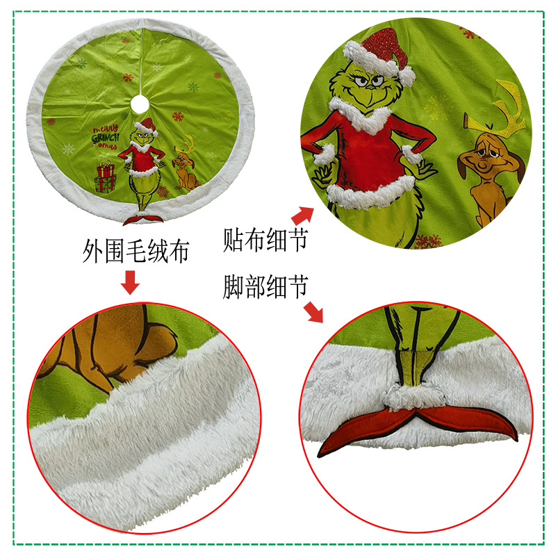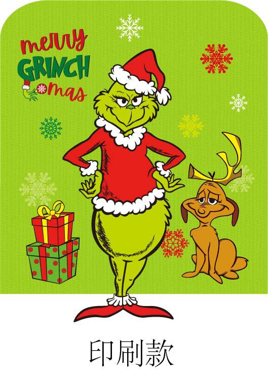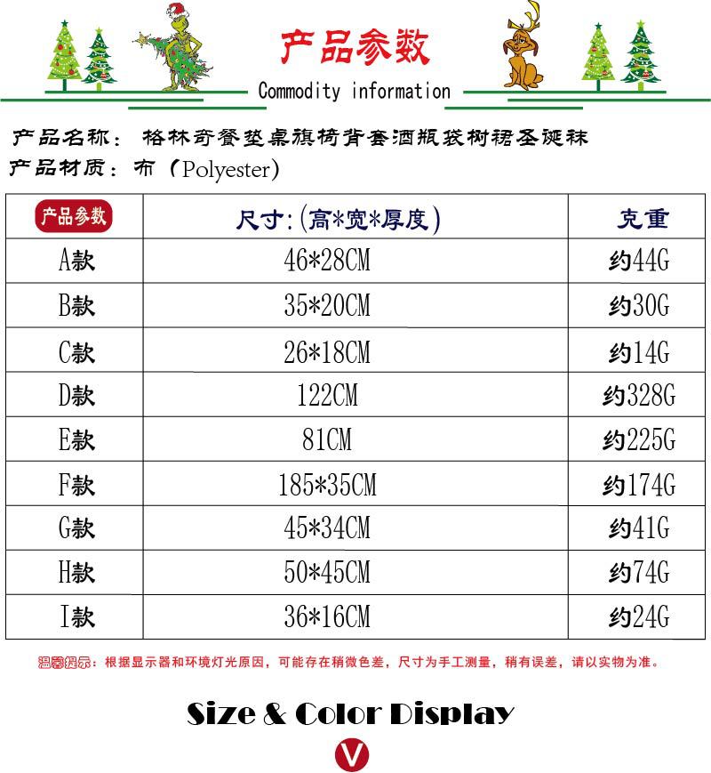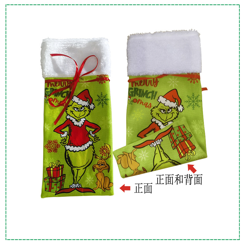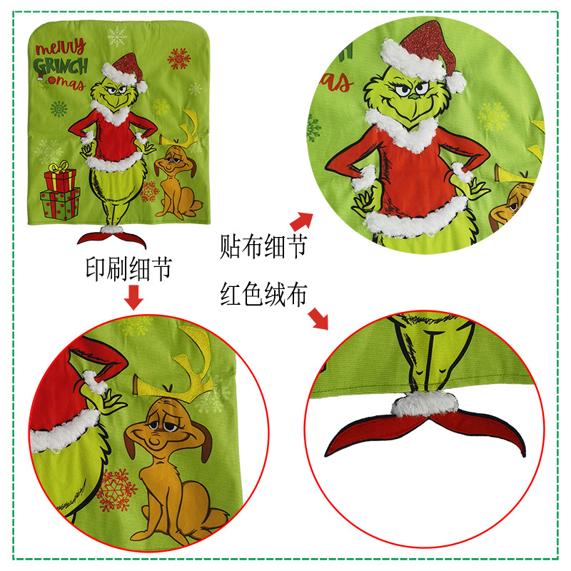 圣诞节装饰品印刷格林奇圣诞袜圣诞树裙绿毛怪桌旗椅套餐垫酒瓶套