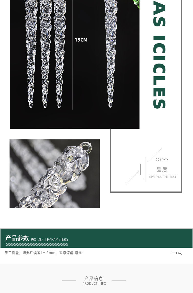 圣诞节庆用品透明冰条挂件冰柱创意仿真假冰棱饰品树挂饰配件15cm