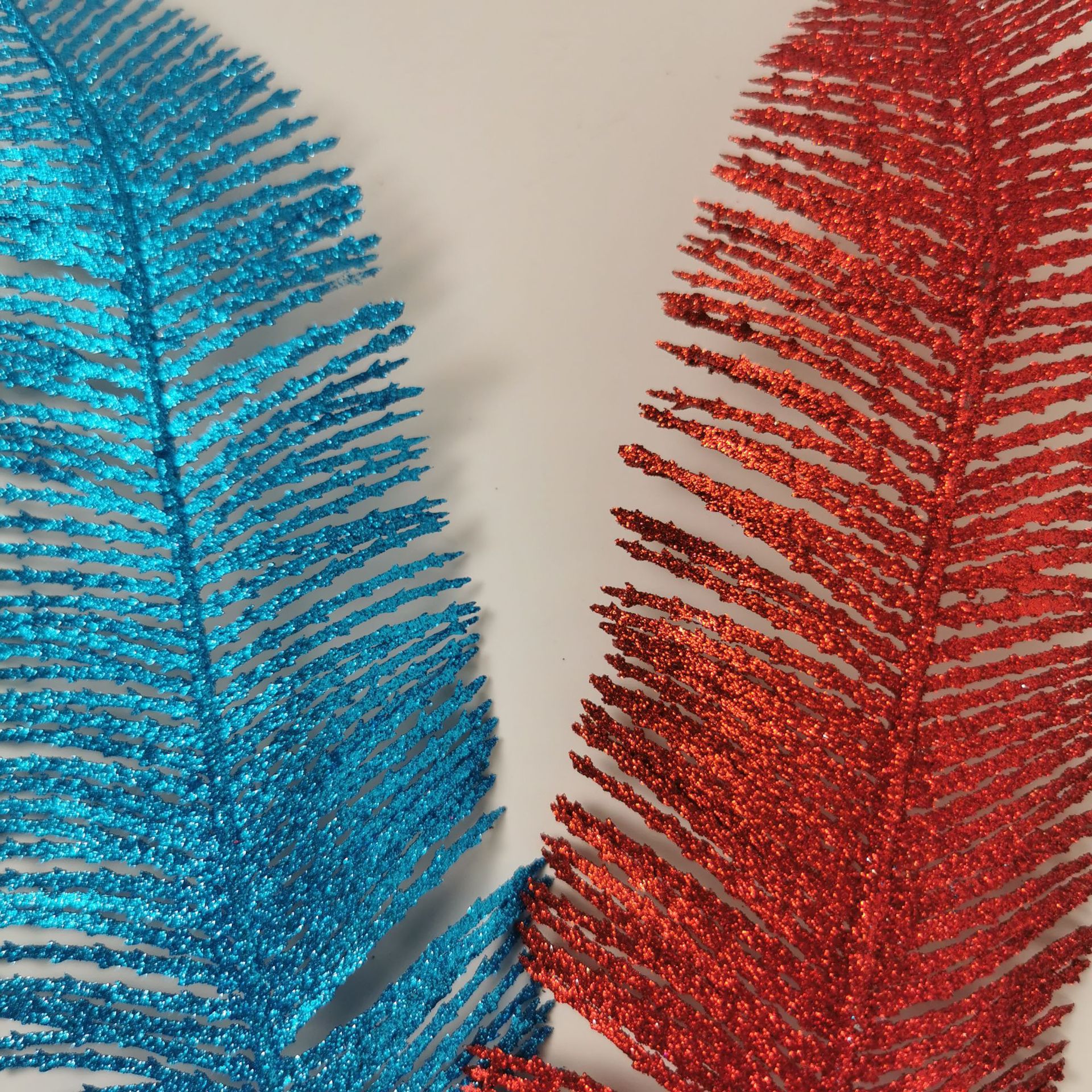 仿真花丝网树叶 圣诞节装饰品 金粉闪粉仿真植物圣诞羽毛花草叶片