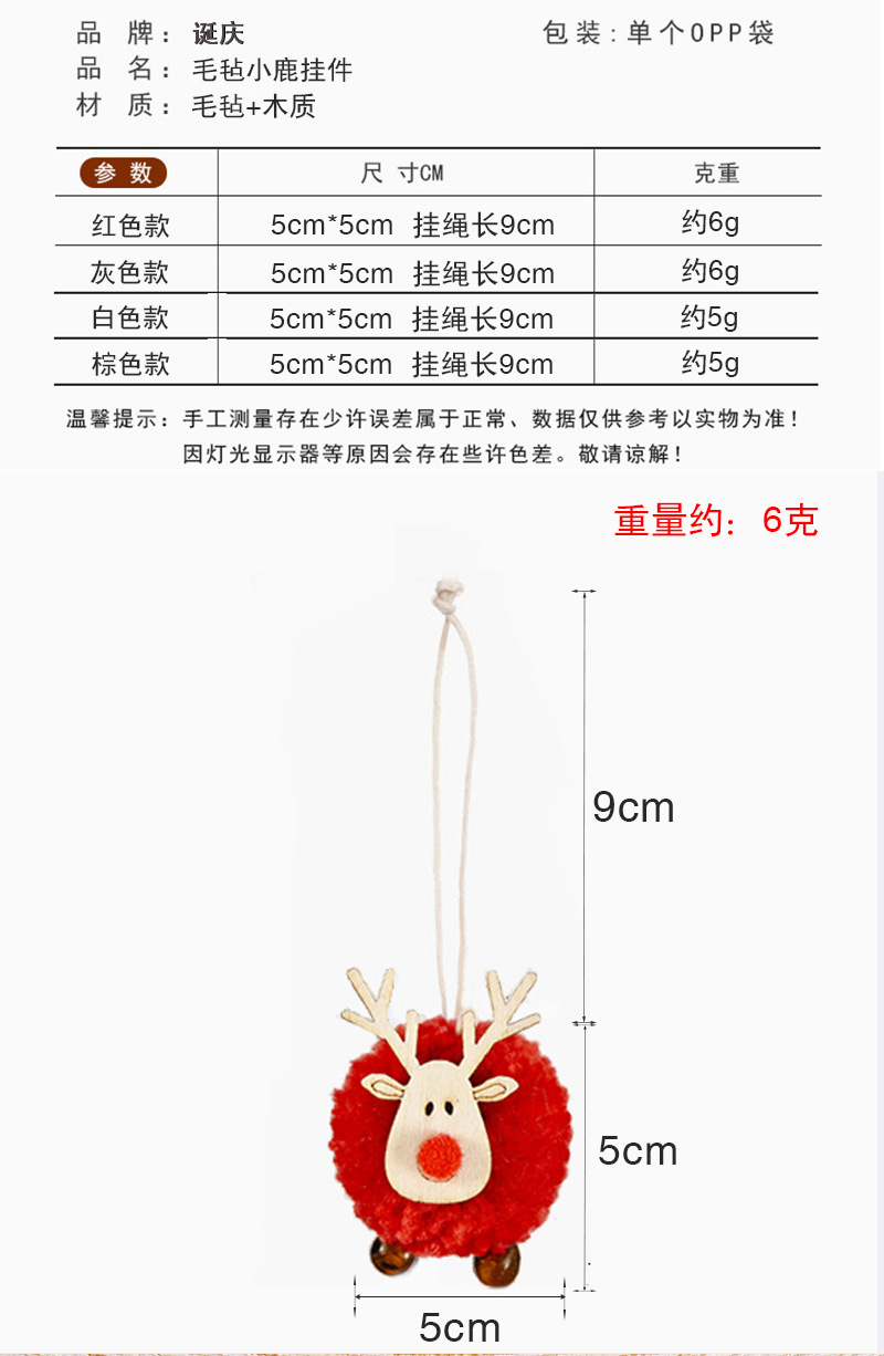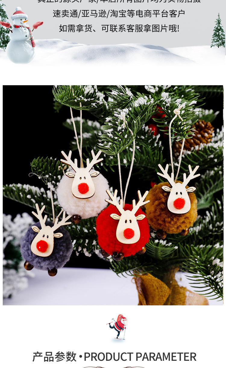 圣诞节庆装饰品 毛毡小鹿挂件 创意麋鹿羊羔绒球圣诞树吊件礼物