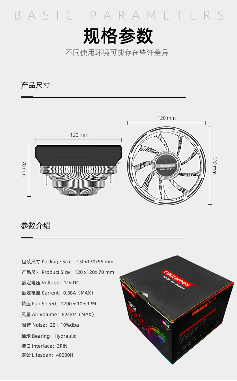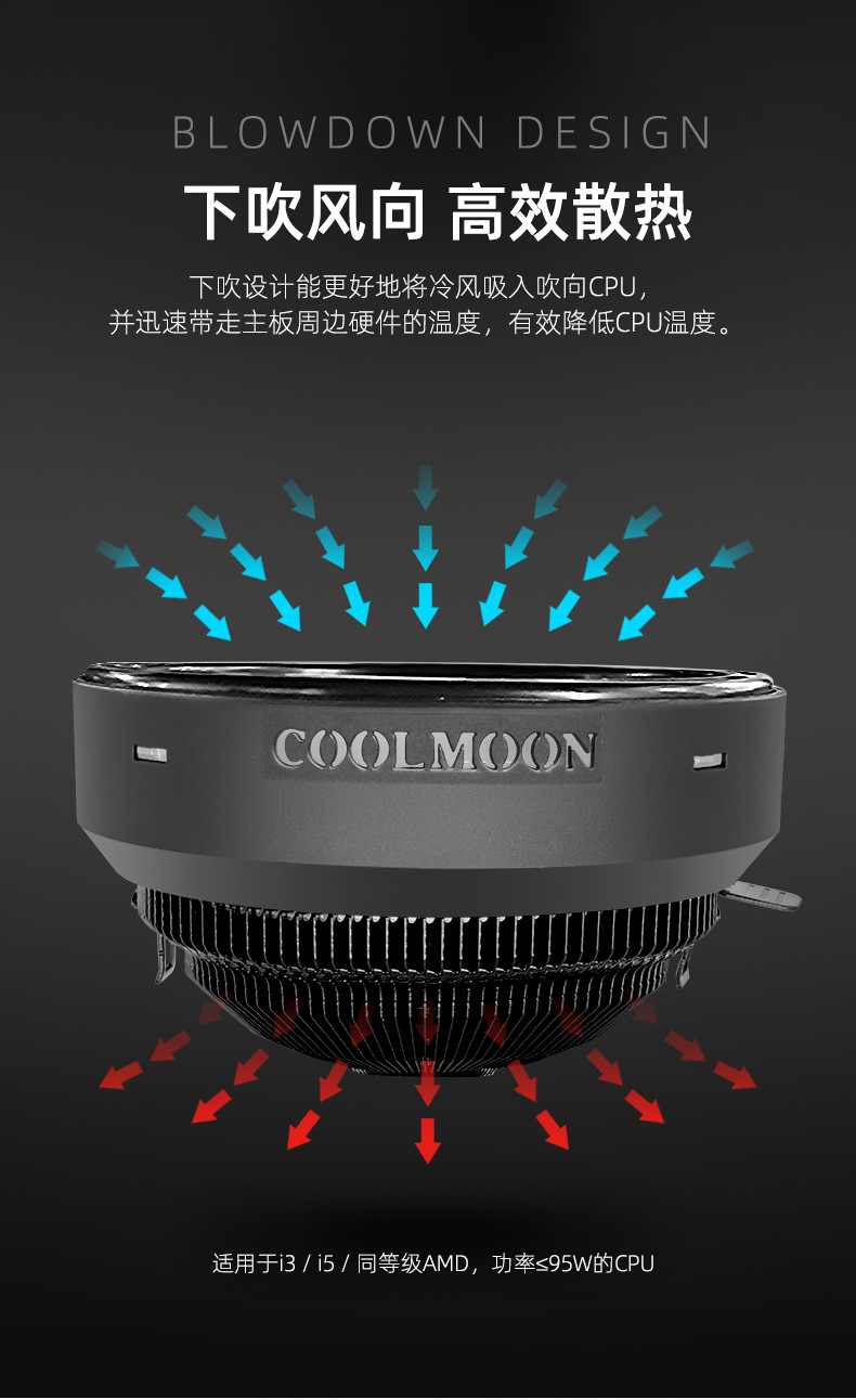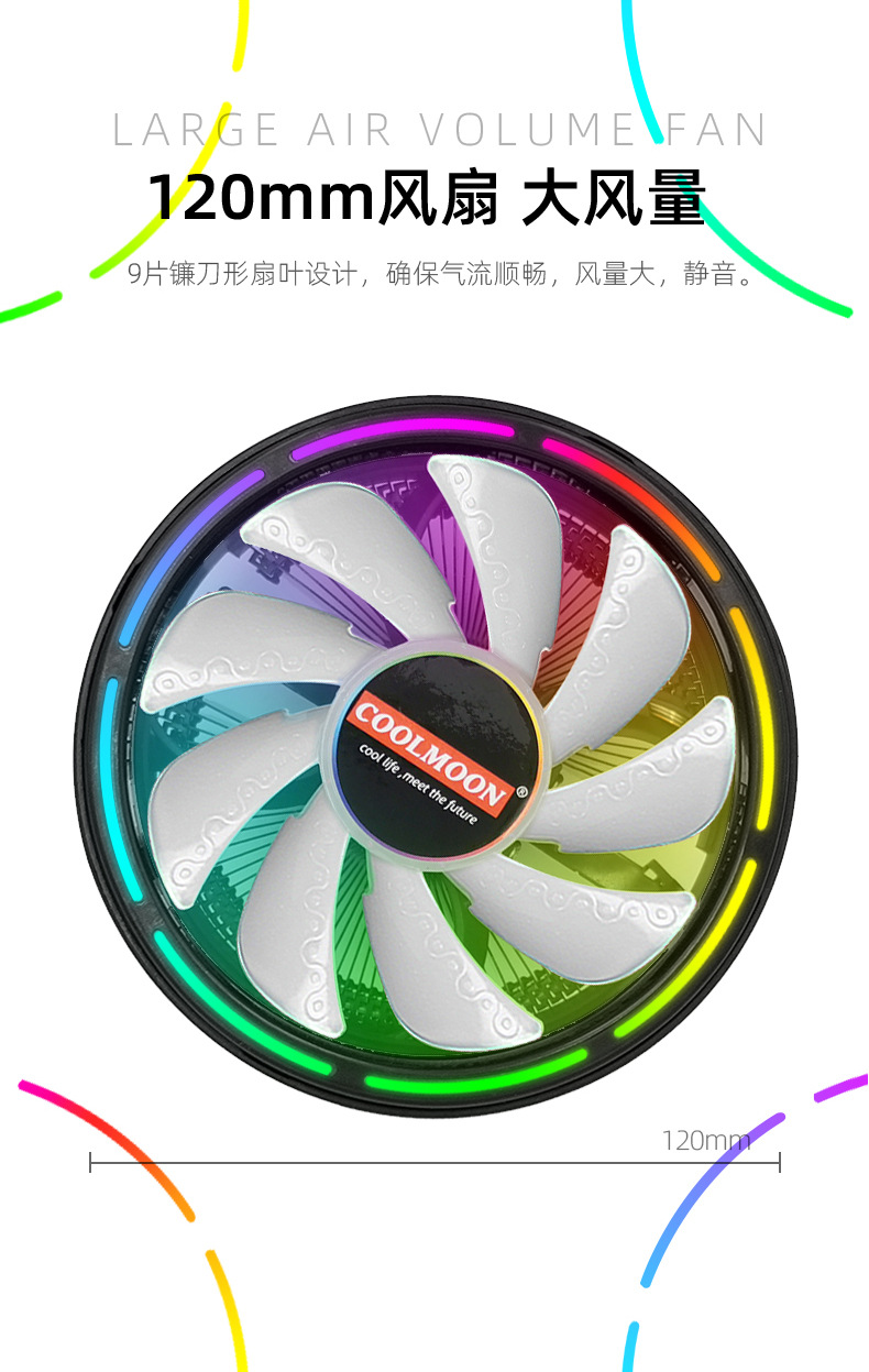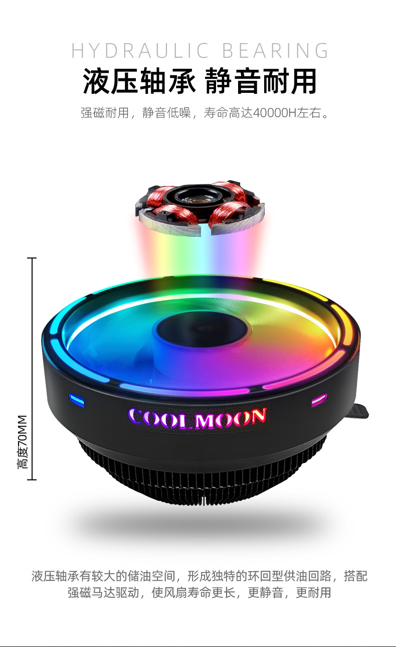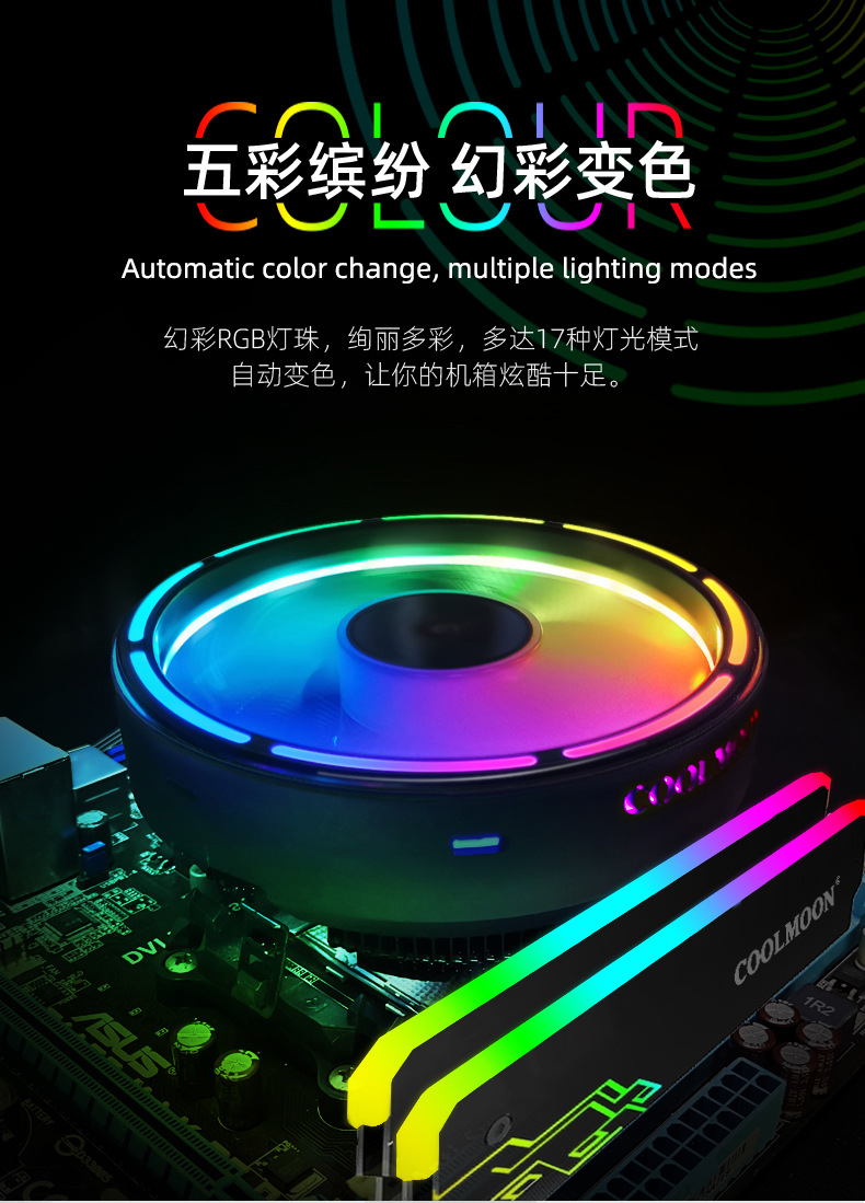 COOLMOON缤纷CPU散热器台式机电脑自动变色多平台静音散热CPU风扇