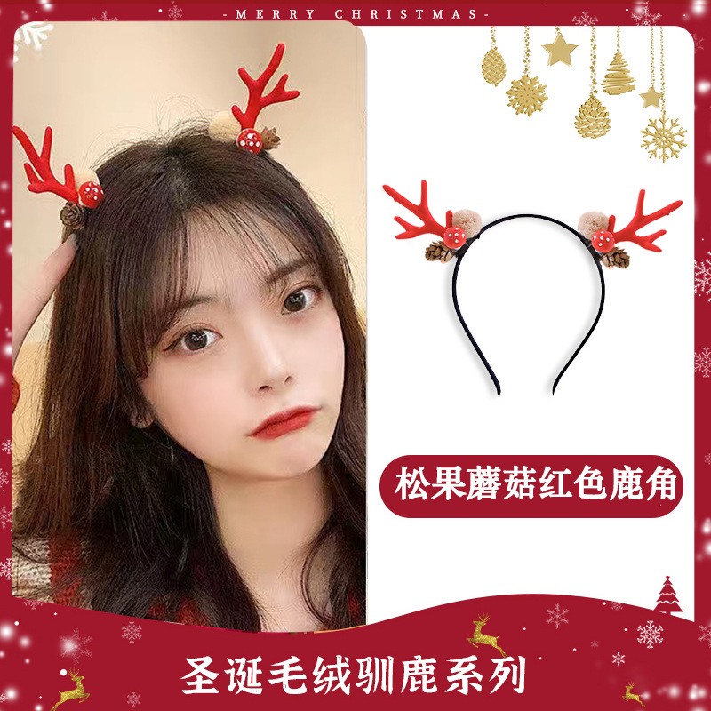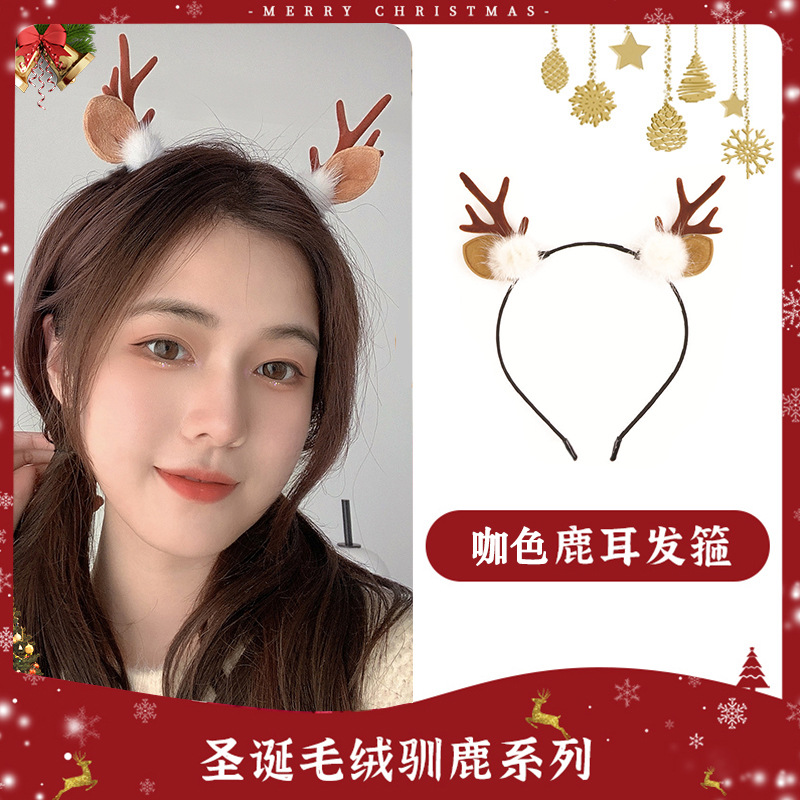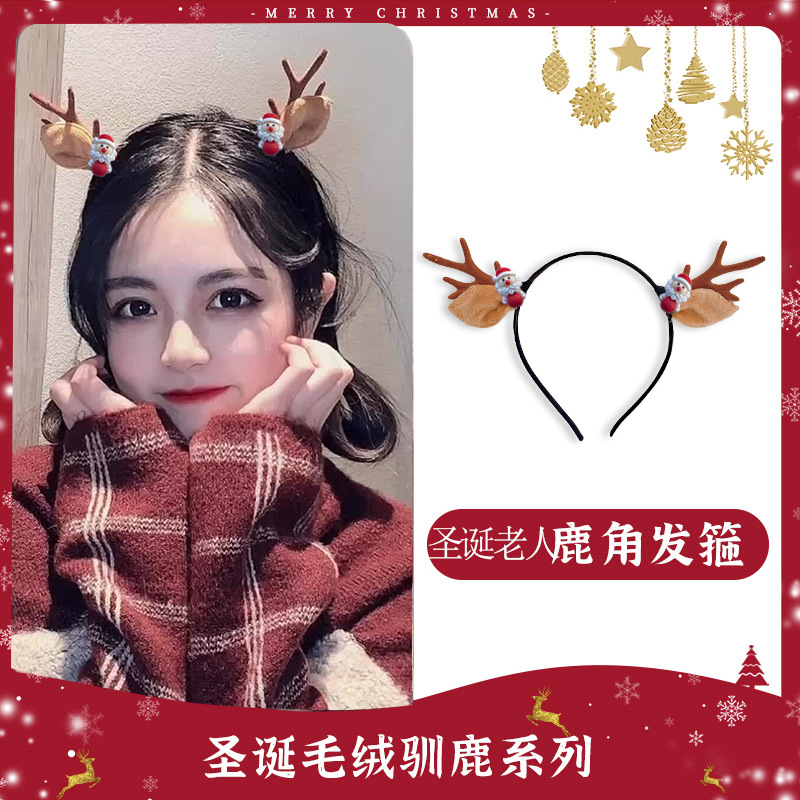 圣诞节发箍小鹿角头箍头饰女发卡麋鹿森系精灵超仙铃铛发饰装饰品
