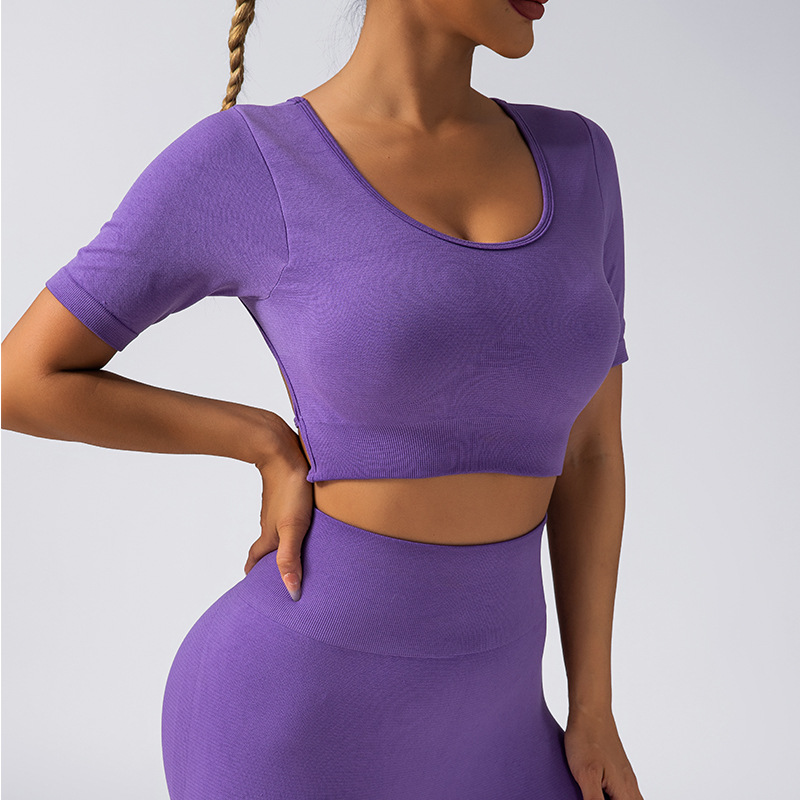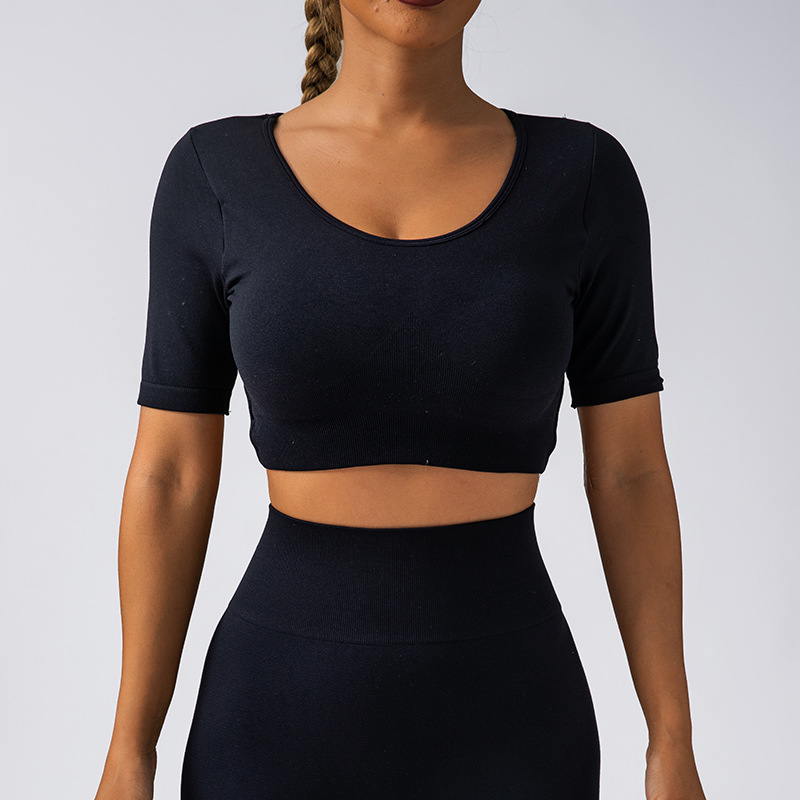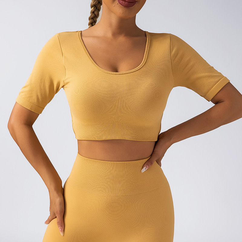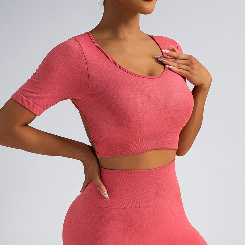 跨境美背带胸垫短袖瑜伽服提臀长裤V腰美臀瑜伽套装瑜伽运动套装