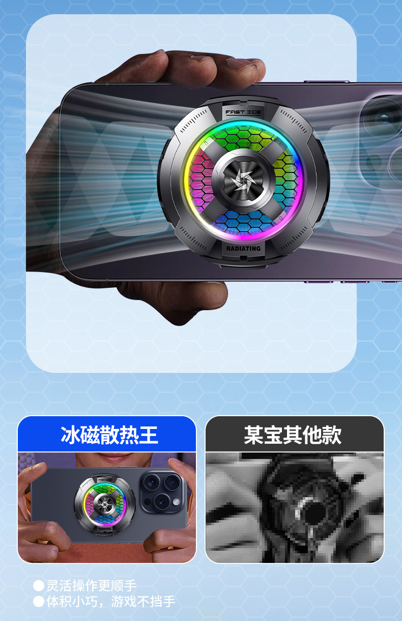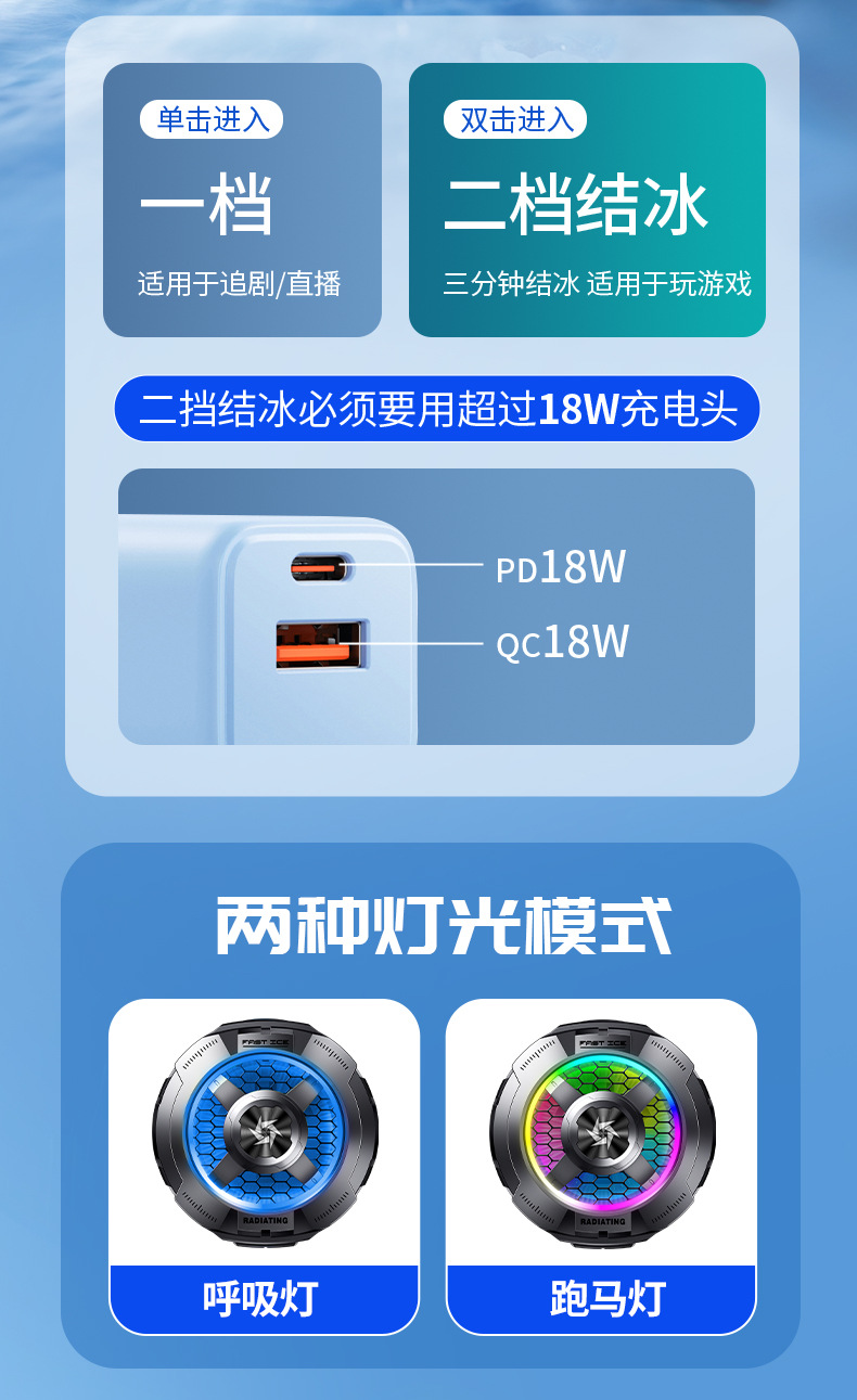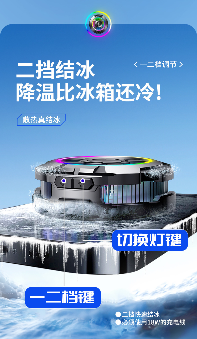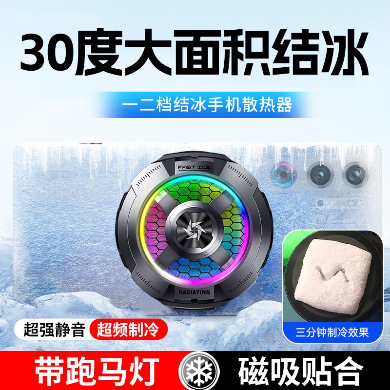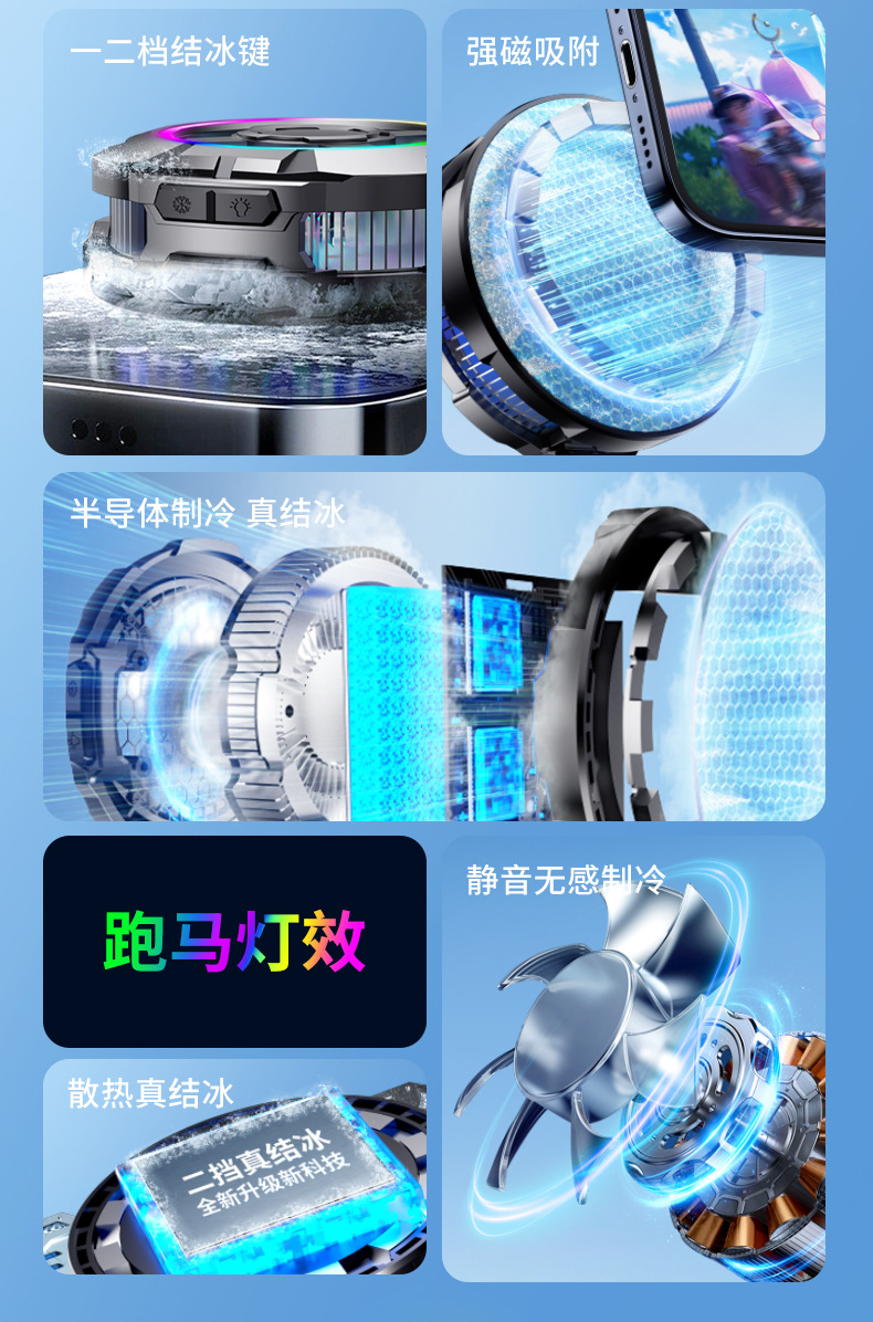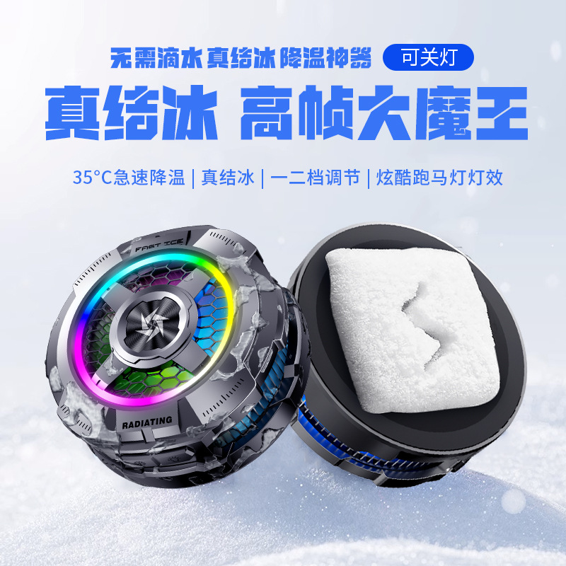 新款SL20手机散热器 2档可关灯光结冰磁吸半导体冰封制冷降温散热