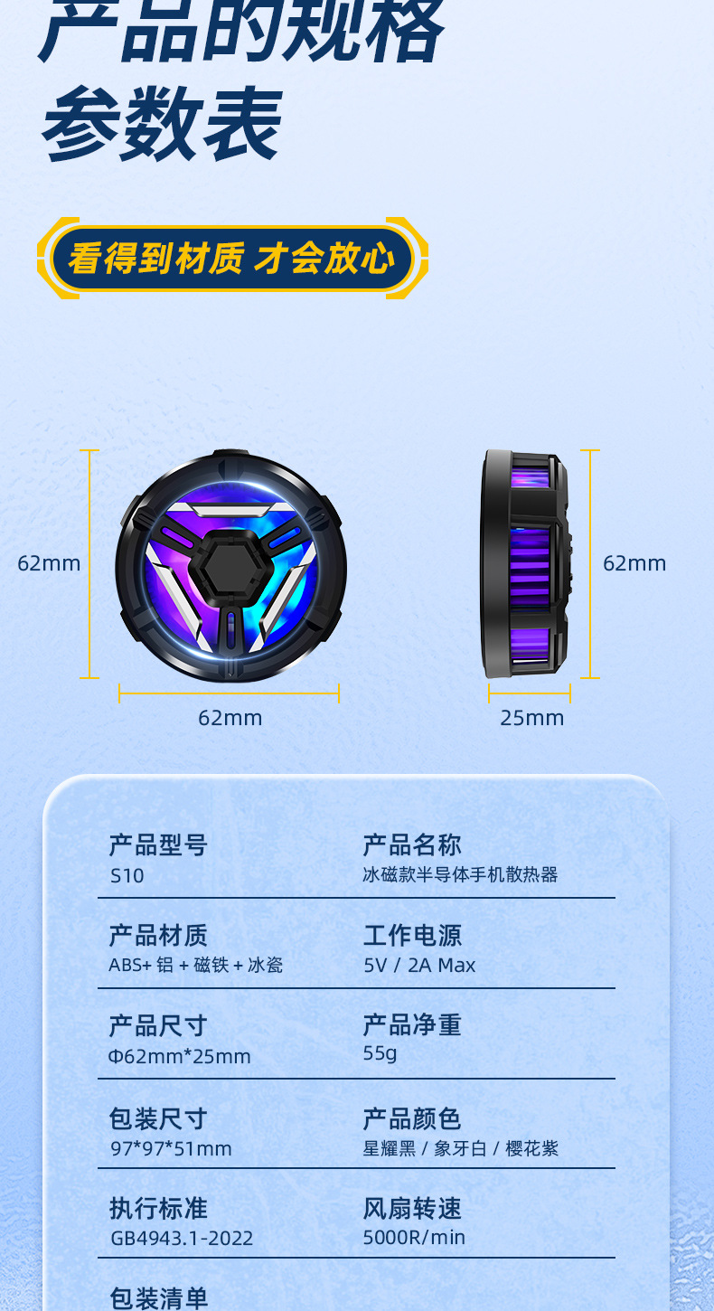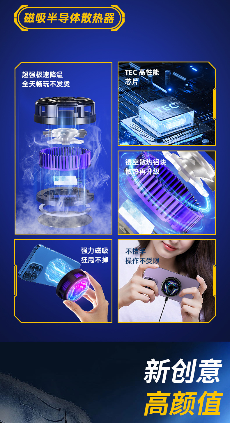 新款磁吸半导体手机散热器S10小巧机身底座支架降温散热神器