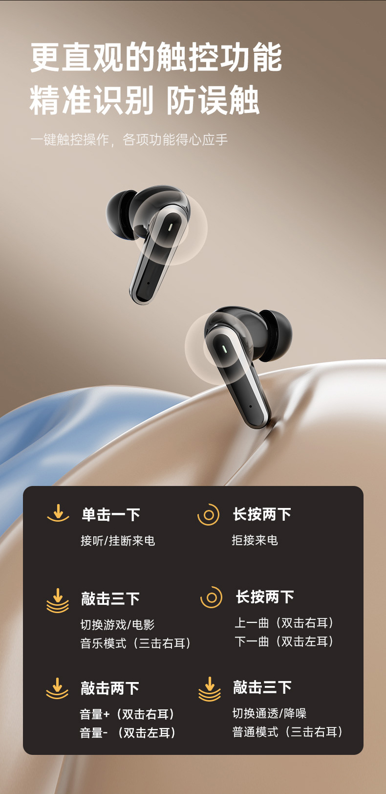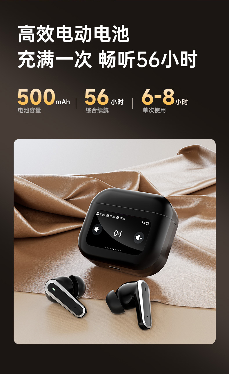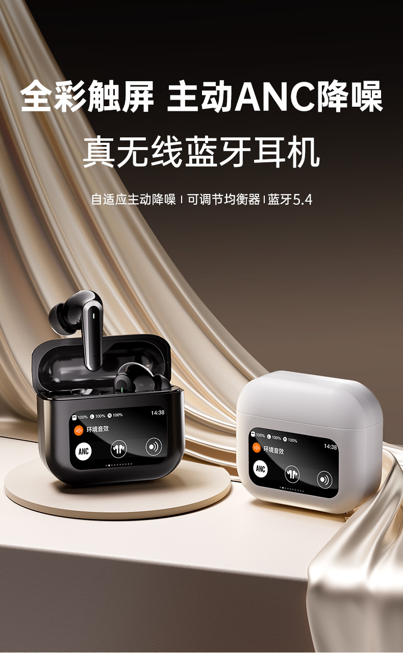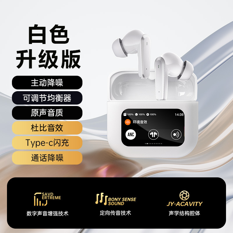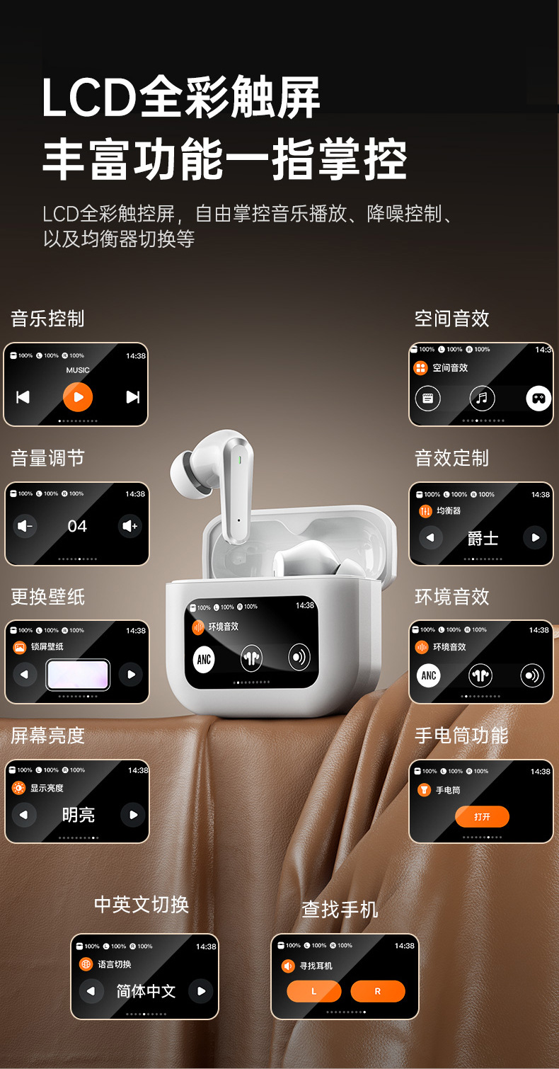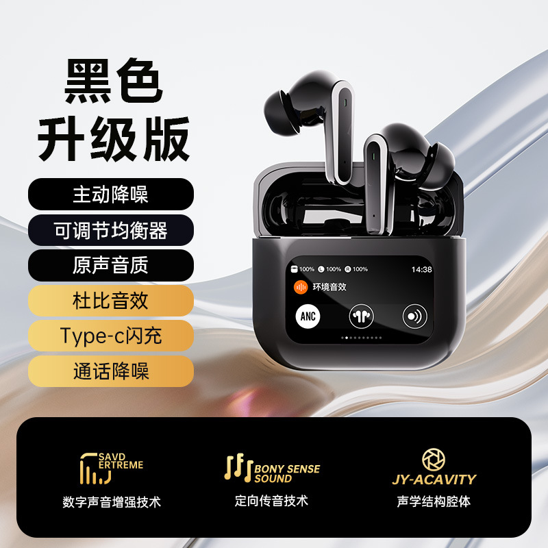 入耳式无线耳机ANC主动降噪蓝牙耳机高音质LCD触控数显屏游戏耳机