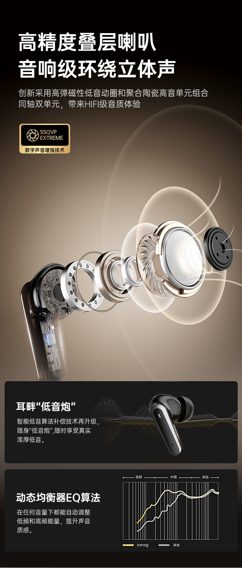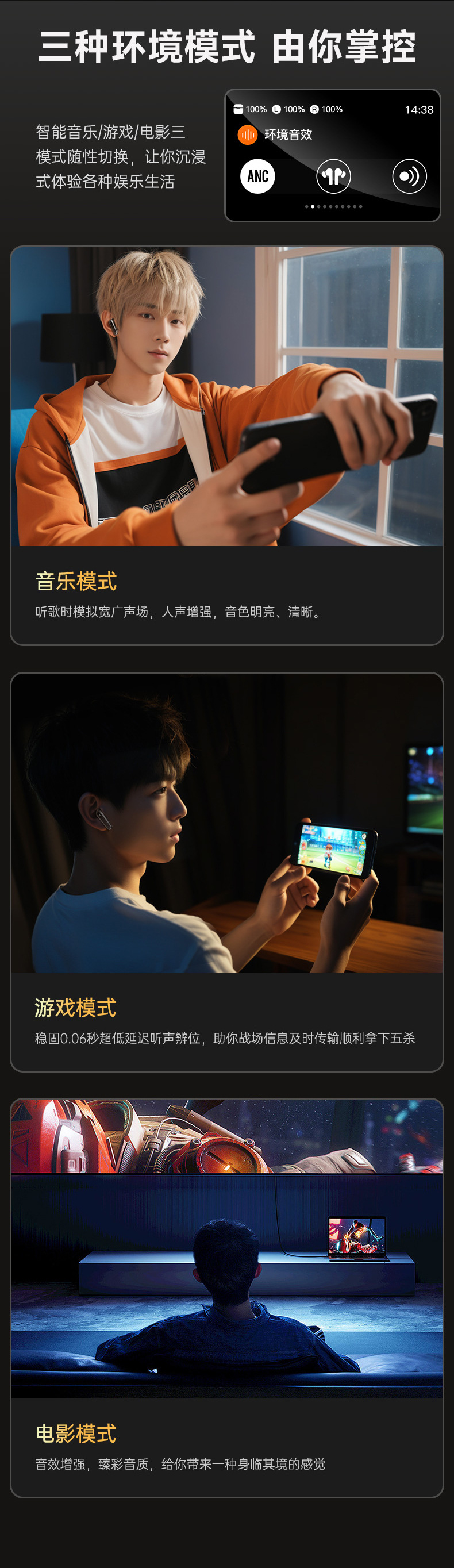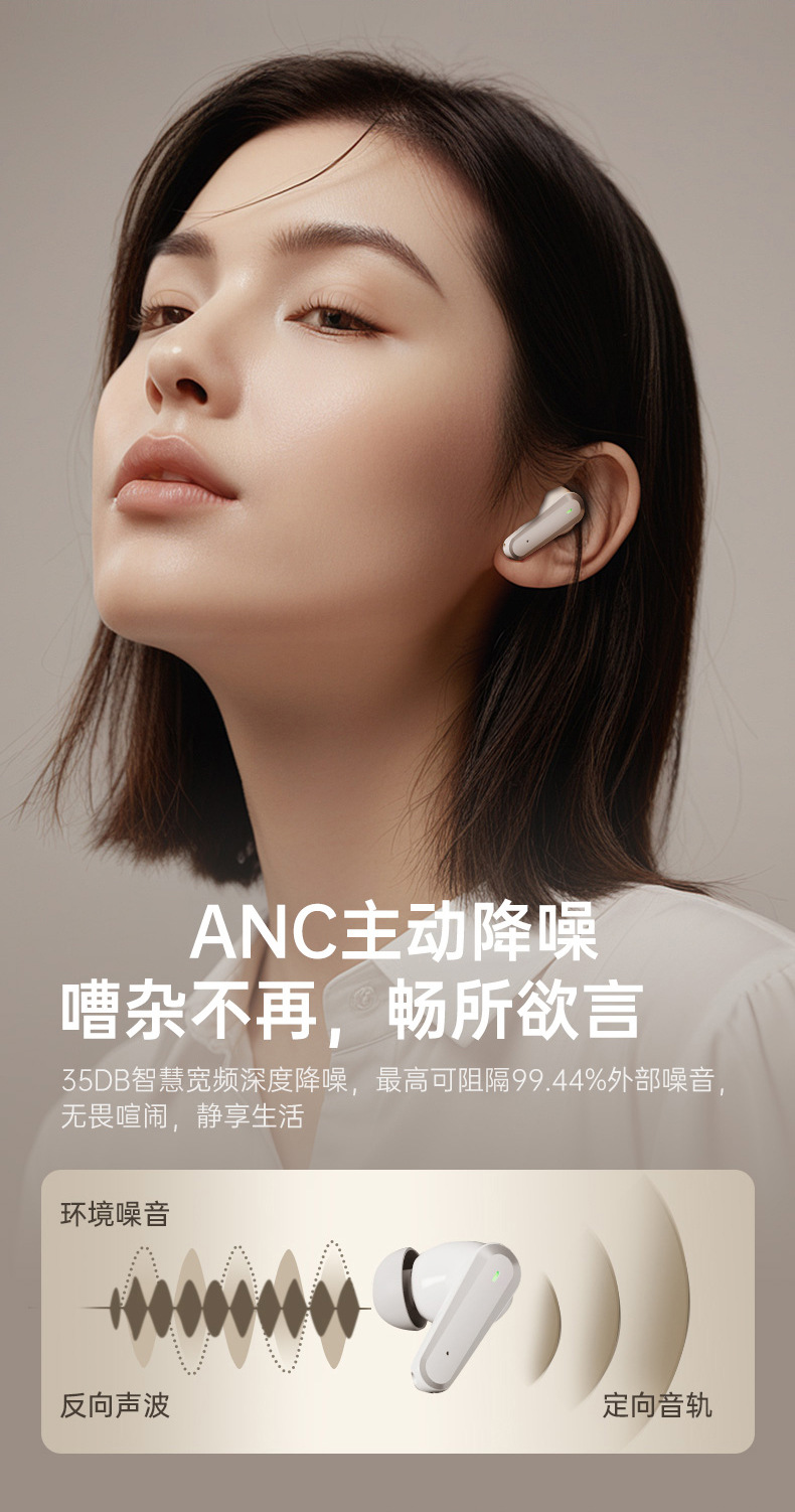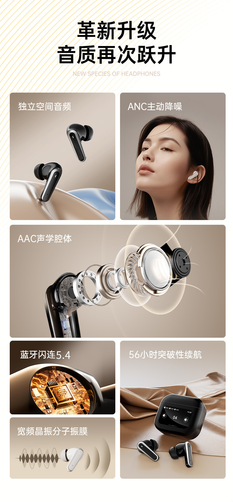 入耳式无线耳机ANC主动降噪蓝牙耳机高音质LCD触控数显屏游戏耳机
