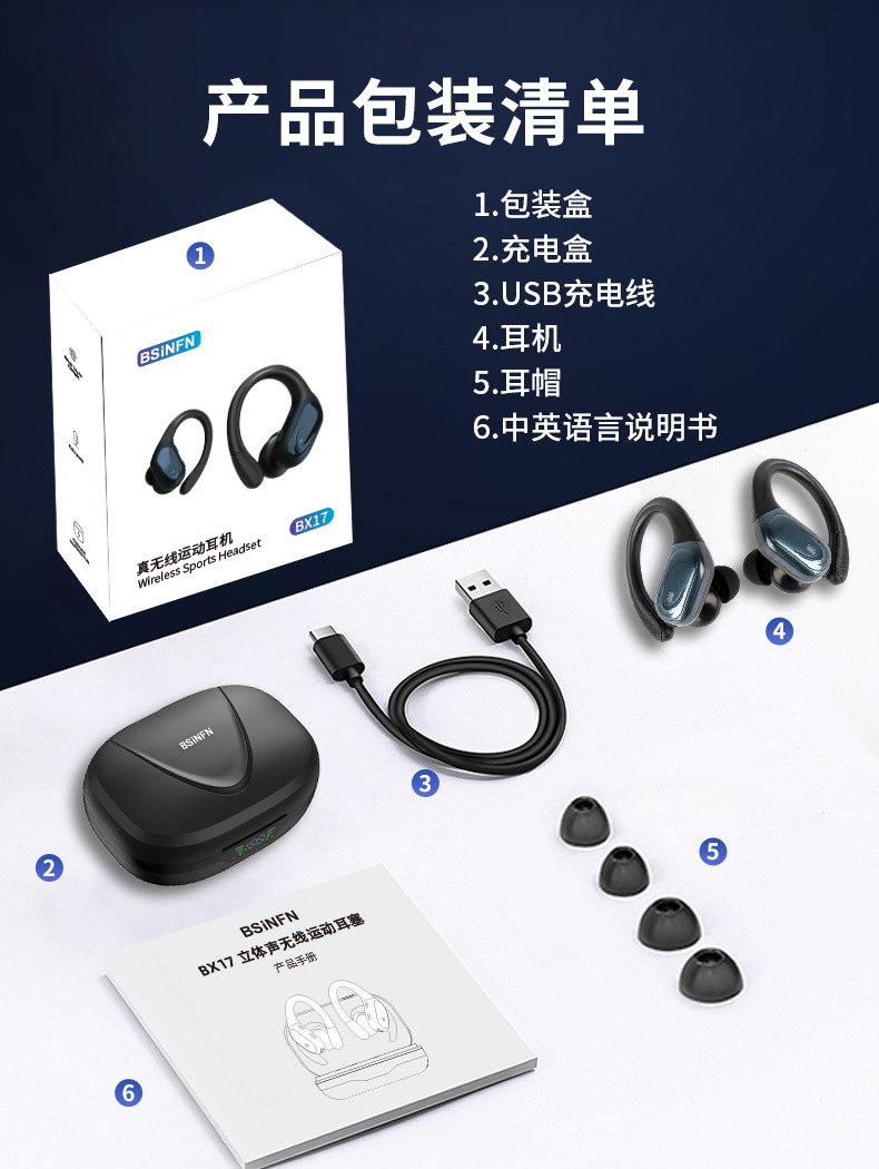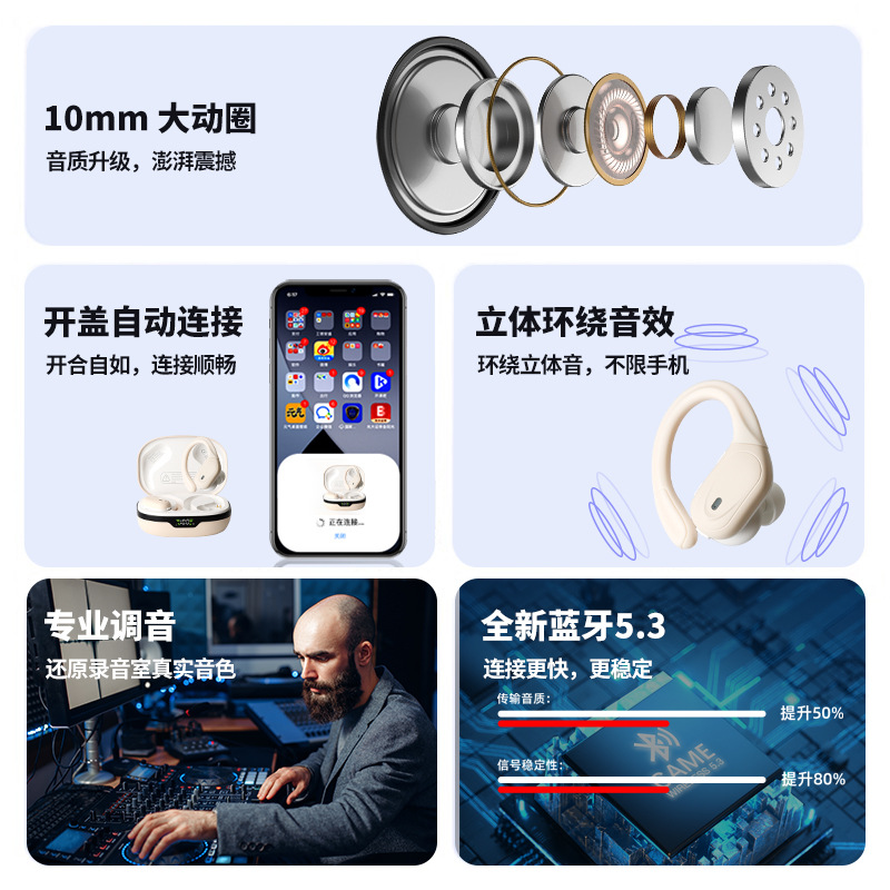 新款原装私模智能数码降噪运动防水挂耳式无线耳机双唛蓝牙耳机